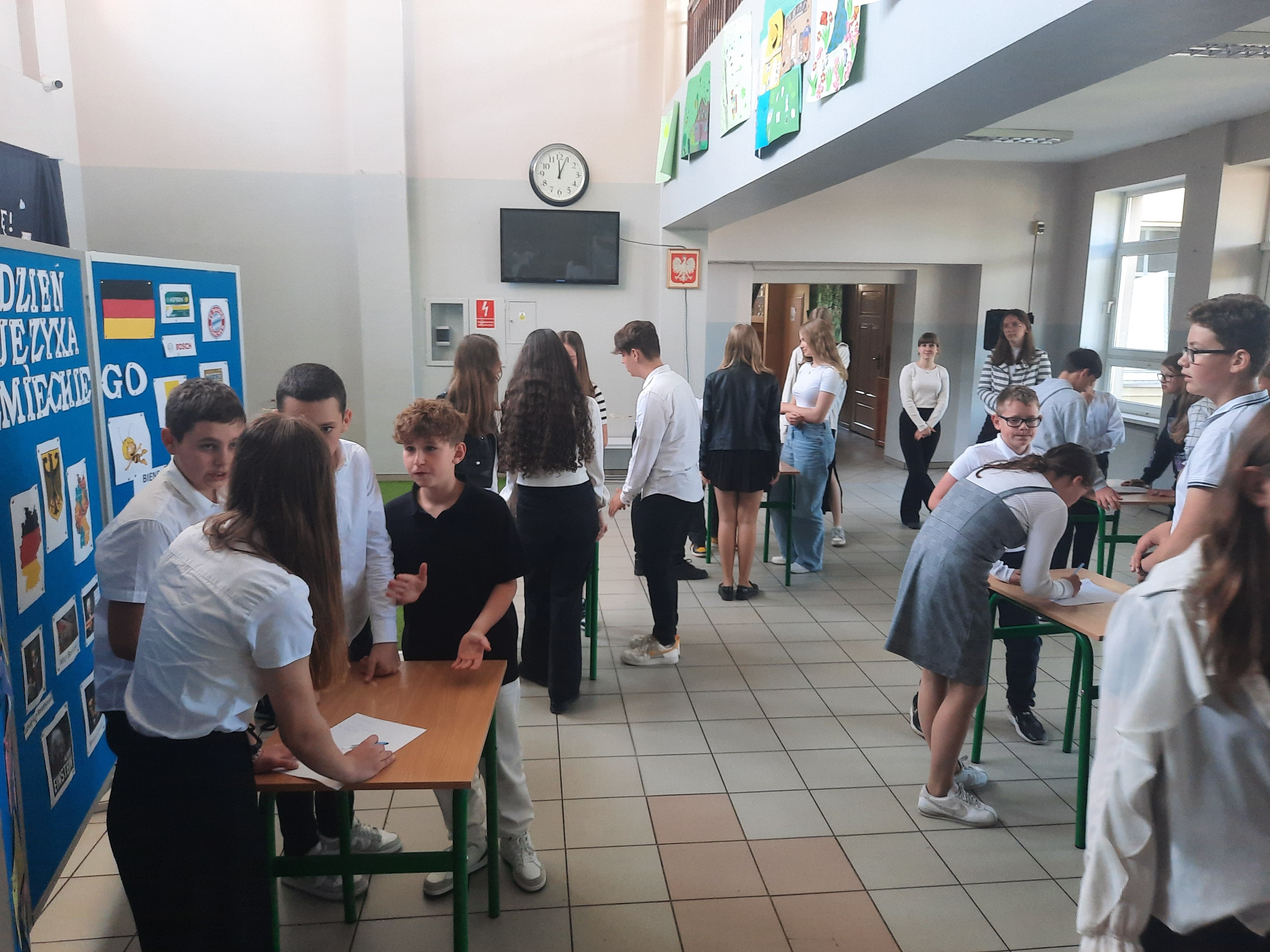 W środę 30 kwietnia Szkolny Klub Europejski z opiekunem panią Martyną Barteczką zorganizował Dzień Języka Niemieckiego i Kultury Niemieckiej. Dla uczniów klas 1-4 zostały przeprowadzone zajęcia związane z niemiecką bajką Pszczółka Maja oraz szkolny konkurs plastyczny. Uczniowie klas 5-8 obejrzeli ciekawą prezentację "Z czego słyną Niemcy?" - dotyczącą języka niemieckiego i Niemiec , a następnie rywalizowali w Szkolnym Turnieju wiedzy o Niemczech.