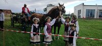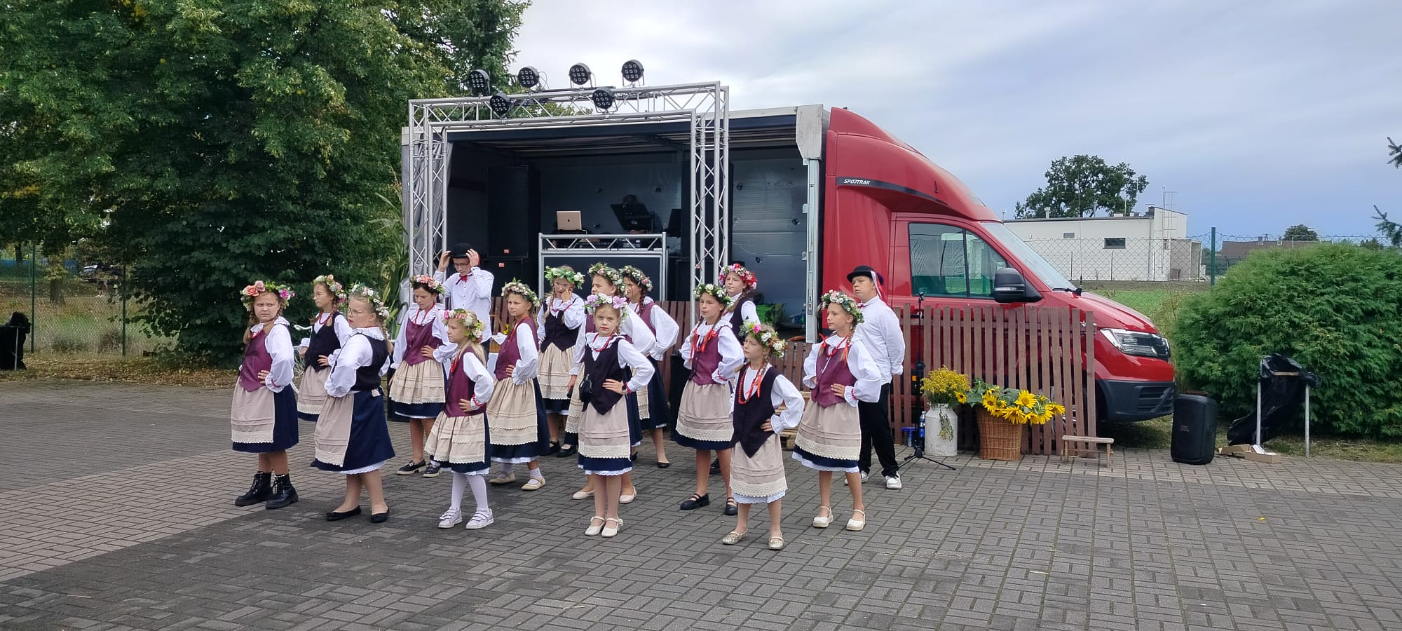 Młodzi artyści zaprezentowali tradycyjny program obrzędowy, nawiązujący do dawnych zwyczajów dożynkowych i folkloru naszego regionu. W barwnych strojach ludowych, z zaangażowaniem i autentycznością przedstawili przyśpiewki i piosenki, które spotkały się z ciepłym przyjęciem i gromkimi brawami od zgromadzonej publiczności. Występ „Szakietów” był nie tylko piękną formą uczczenia pracy rolników, ale też znakomitą okazją do kultywowania tradycji i integracji ze środowiskiem lokalnym. Dziękujemy organizatorom za zaproszenie, a dzieciom za włożone serce i zaangażowanie.