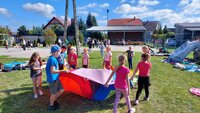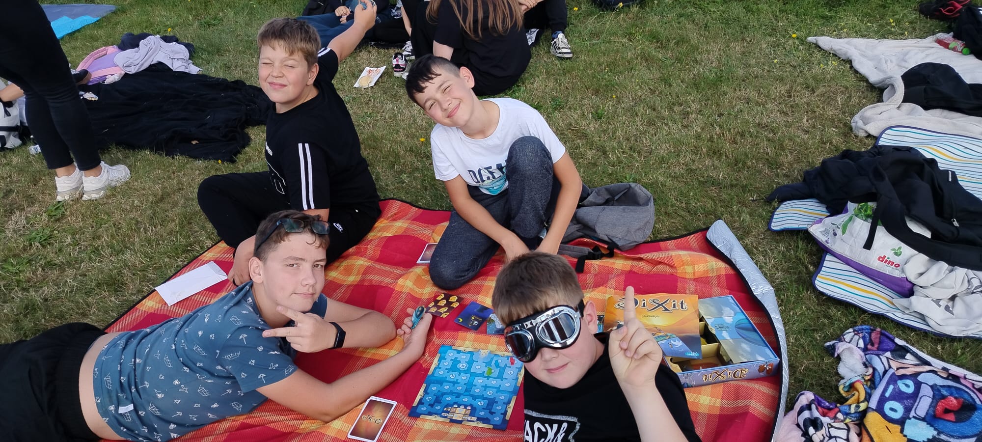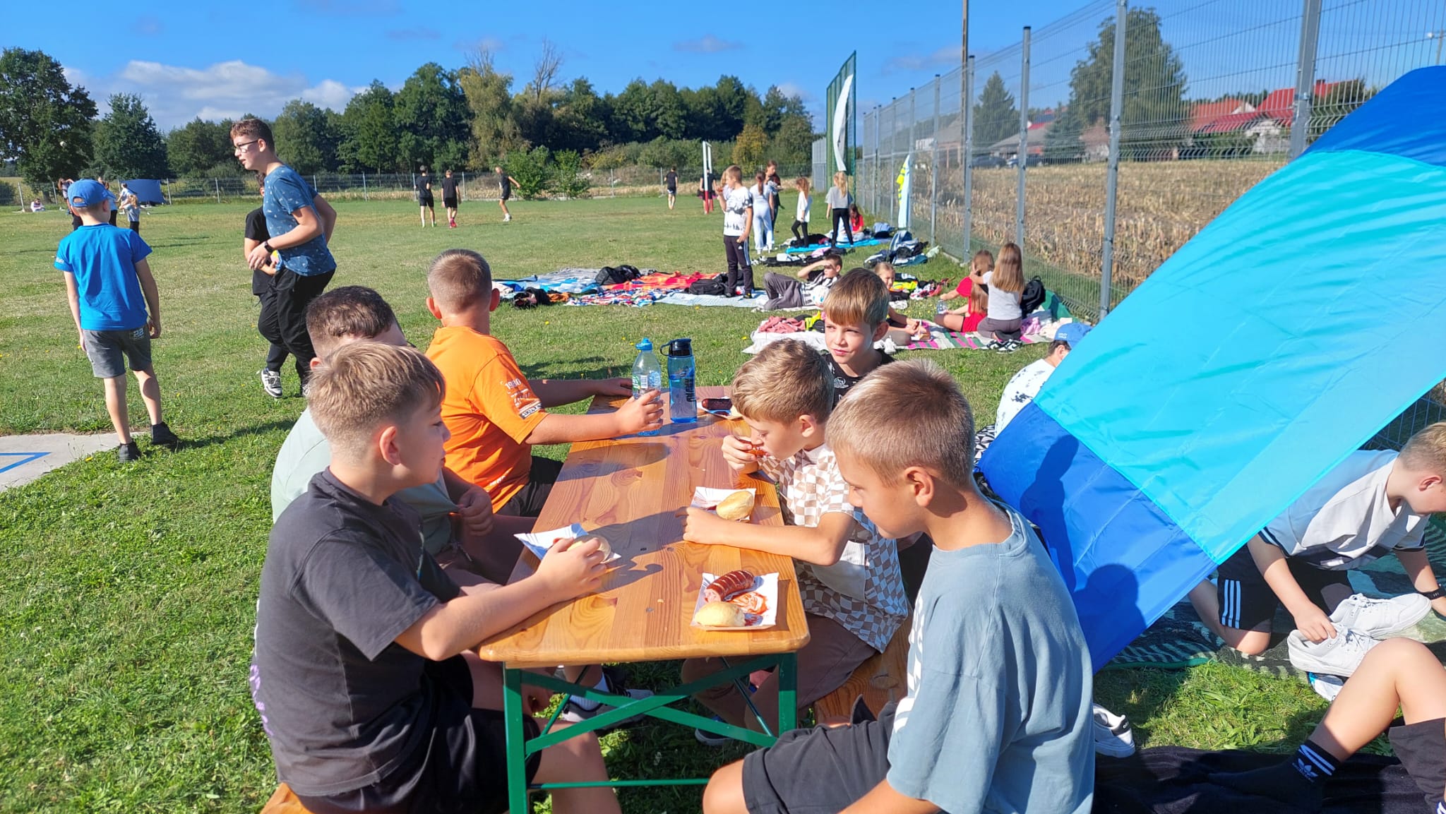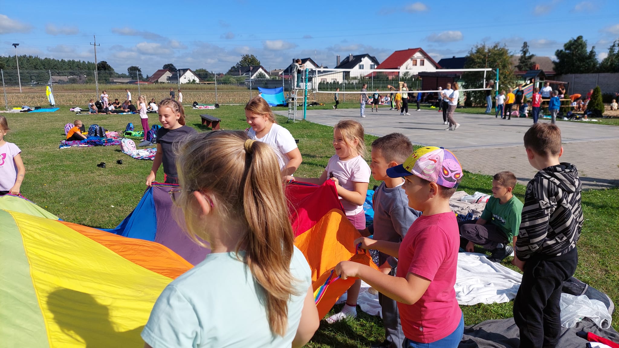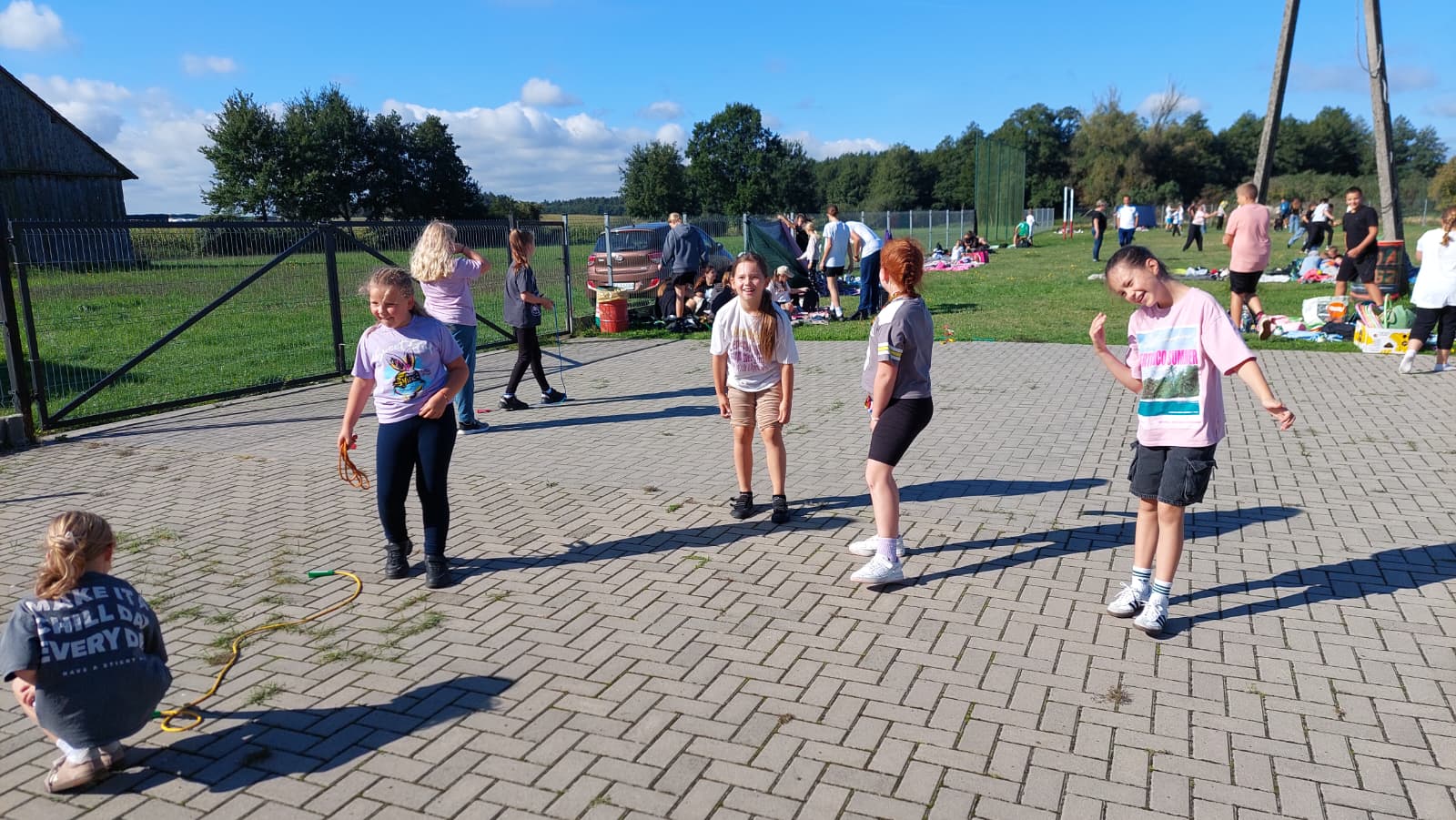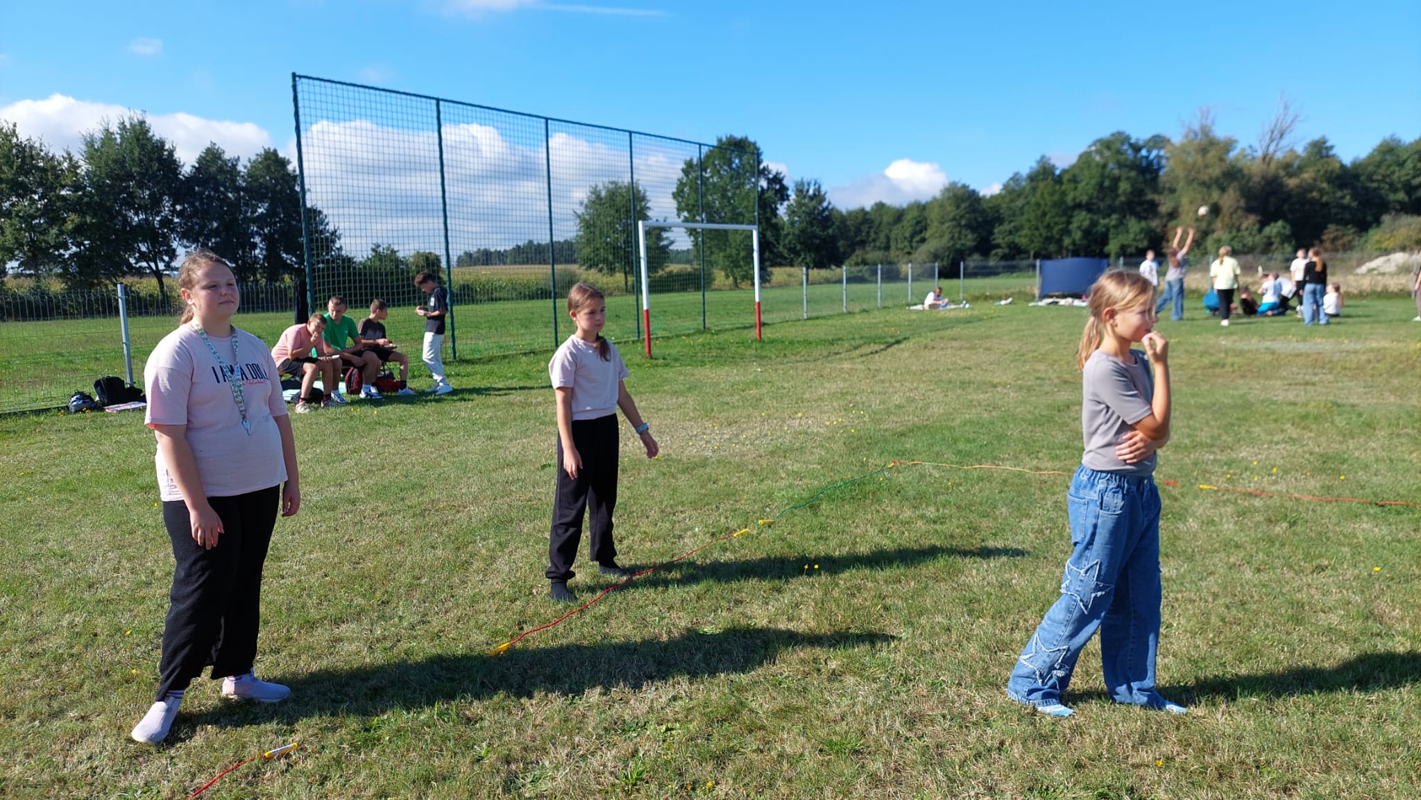 19 września 2025 roku odbył się w naszej szkole wyjątkowy „Dzień Pieczonego Ziemniaka”. Wszyscy uczniowie wraz z nauczycielami udali się do Jezior, aby miło i aktywnie spędzić czas na świeżym powietrzu. Pogoda była wymarzona, cały dzień towarzyszyło nam piękne, słoneczne niebo, co dodatkowo umiliło wspólną zabawę. Na uczestników czekało wiele atrakcji i niespodzianek. Odbywały się emocjonujące rozgrywki sportowe, zabawy z chustą animacyjną, a dziewczynki z zapałem skakały na skakance, bijąc własne rekordy i świetnie się przy tym bawiąc. Dla tych, którzy preferują spokojniejsze formy wypoczynku, był też czas na leniuchowanie i przyjacielskie rozmowy. Po wspólnej zabawie wszyscy mogli posilić się pyszną, chrupiącą kiełbaską i pachnącymi pieczonymi ziemniakami, przygotowanymi na grillu przez naszych niezawodnych pracowników obsługi.