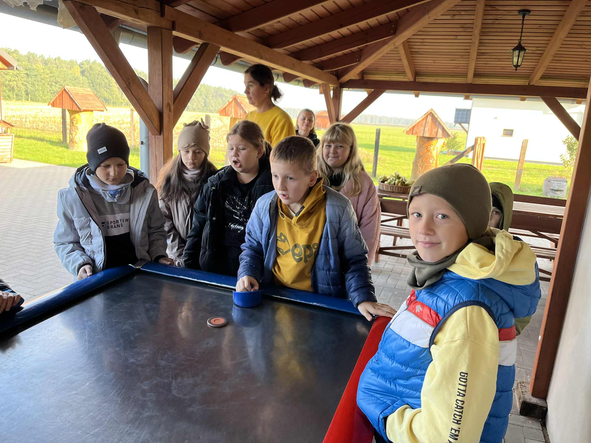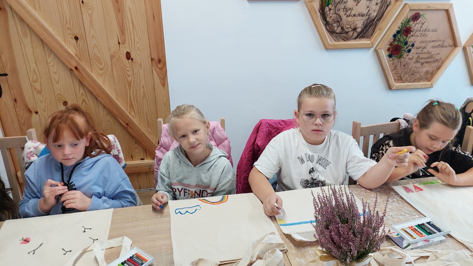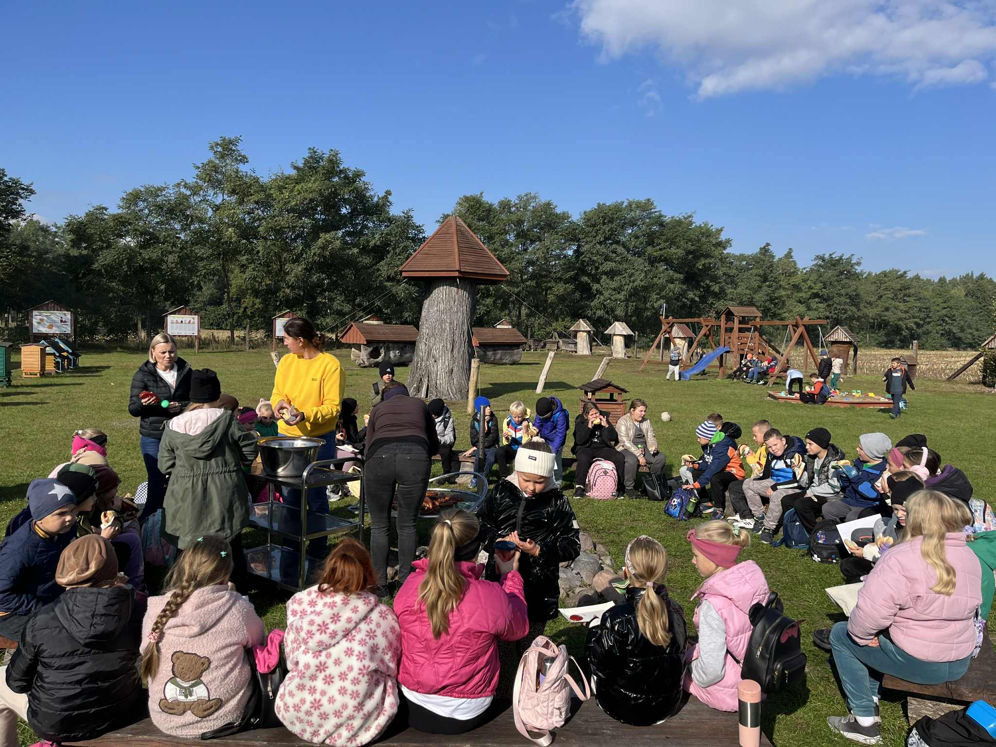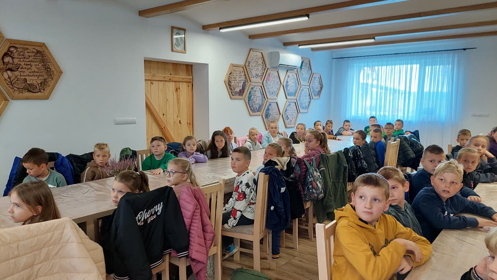 W piątek 3 października uczniowie klas 1-3 wzięli udział w warsztatach ekologicznych w Zagrodzie Pszczółki Przyjaciółki w Katarzynowie. Wszyscy wysłuchali ciekawej prelekcji na temat hodowli pszczół, ozdobili torby według własnych pomysłów i wykonali rysunki o tematyce ekologicznej. Była to również wspaniała okazja do integracji i zabawy na świeżym powietrzu. Pani Justynie Bednarek dziękujemy serdecznie za zaproszenie nas do Zagrody Pszczółki, za pyszne owoce, słodycze i kiełbaskę.