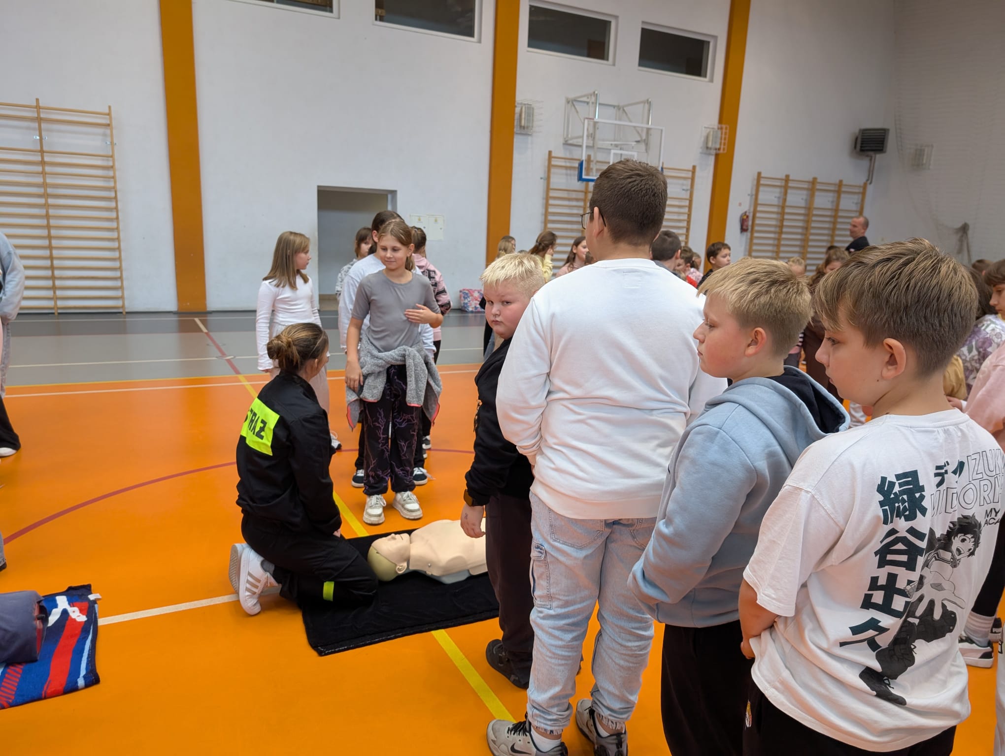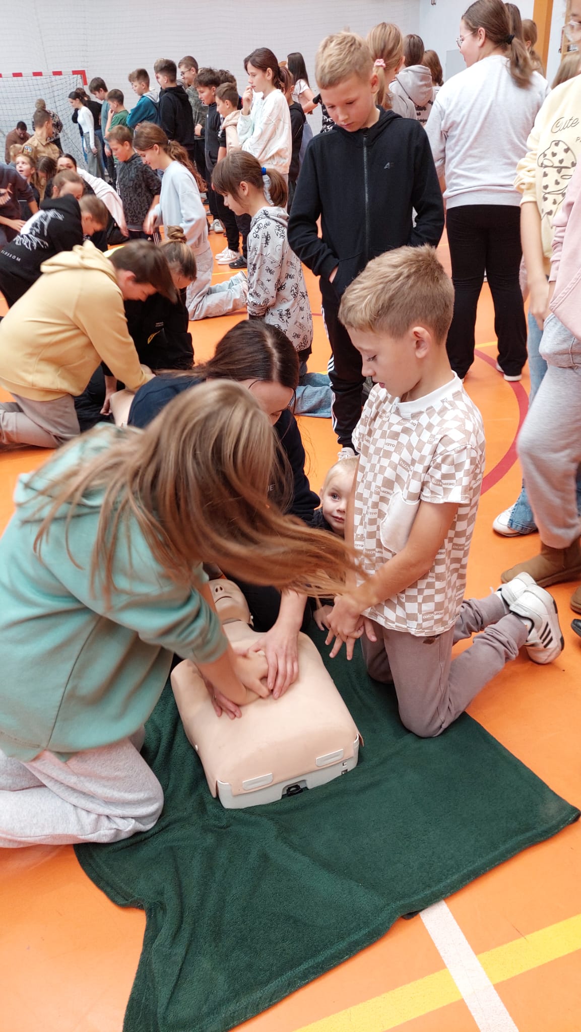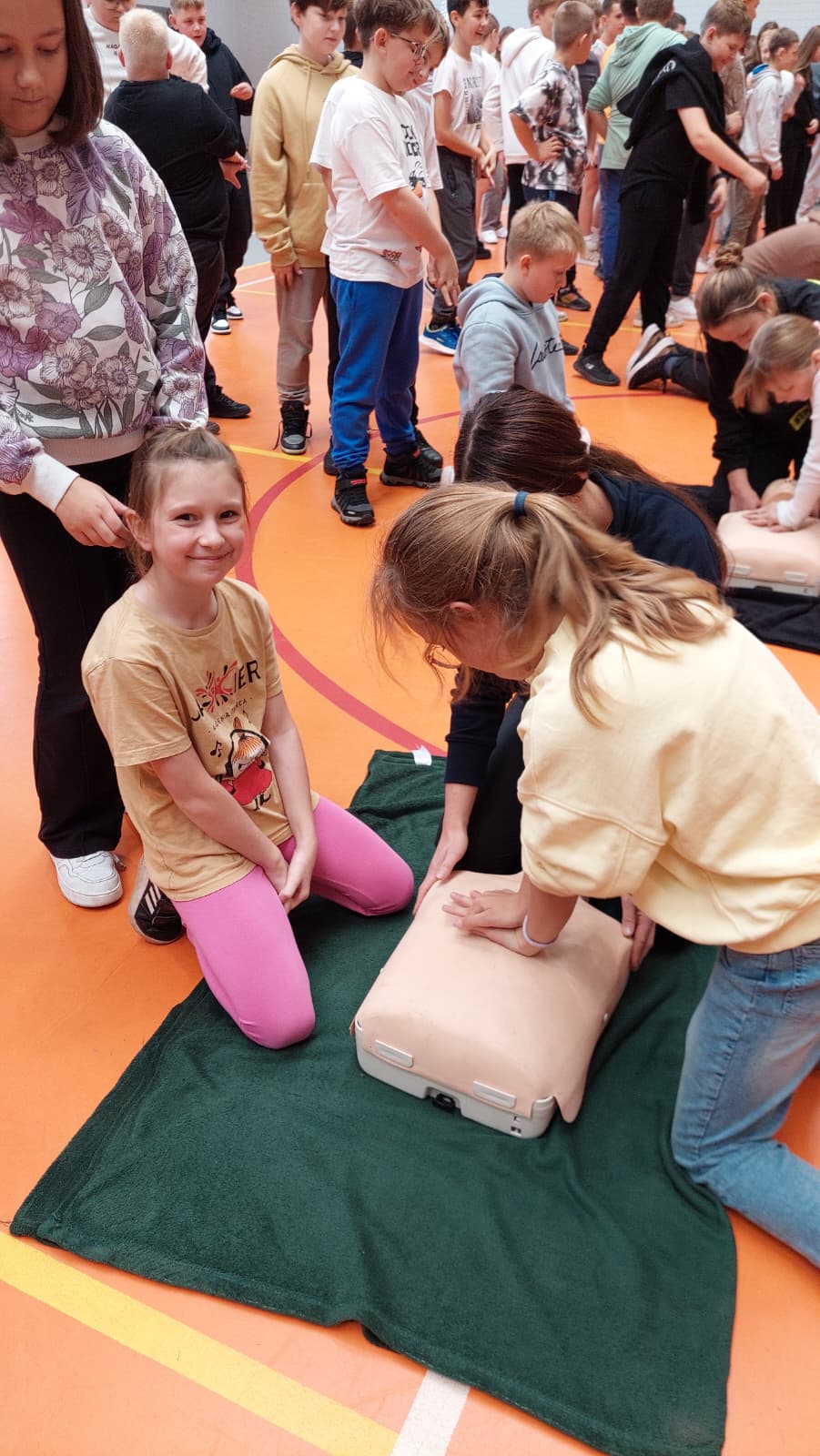 16 października , Społeczność Szkoły Podstawowej im. Stanisława Ratajczaka w Szkaradowie z ogromnym zaangażowaniem wzięła udział w kolejnej edycji ogólnopolskiej akcji Wielkiej Orkiestry Świątecznej Pomocy, polegającej na biciu rekordu w jednoczesnym prowadzeniu resuscytacji krążeniowo-oddechowej (RKO). W wydarzeniu uczestniczyło ponad 200 osób – uczniów, nauczycieli, pracowników oraz zaproszonych gości. Cennym wsparciem byli druhowie z OSP Ostoje z panem Jakubem Plewką na czele, którzy służyli pomocą i dzielili się swoją wiedzą. W wydarzeniu wziął udział pan Mateusz Janicki – Przewodniczący Rady Miejskiej w Jutrosinie, który podkreślił wagę edukacji w zakresie udzielania pierwszej pomocy. Wspólne działanie całej społeczności pokazało, jak ważna jest współpraca i solidarność w służbie ratowania życia.Dziękujemy wszystkim za obecność, energię i serce włożone w to wyjątkowe przedsięwzięcie.