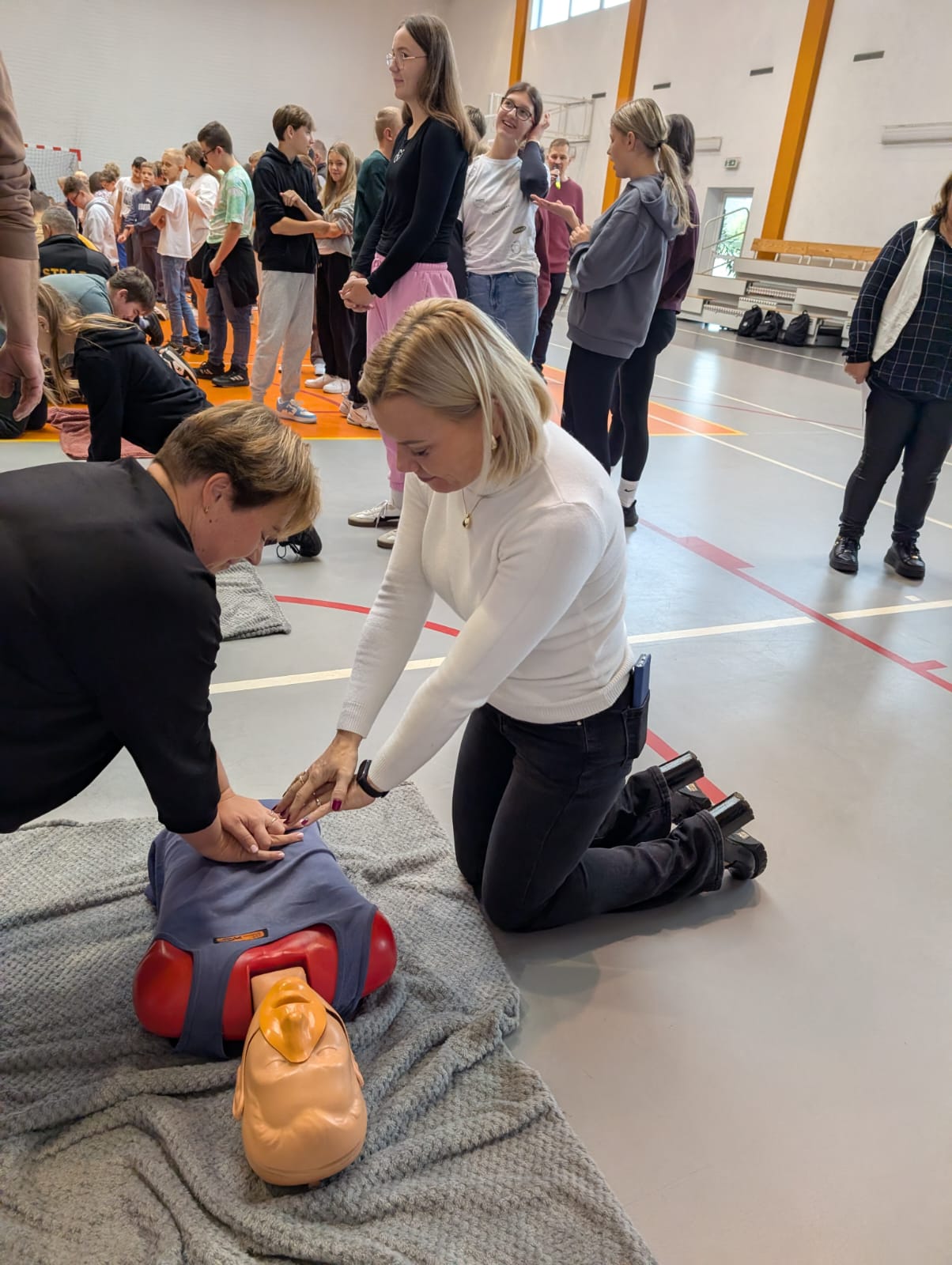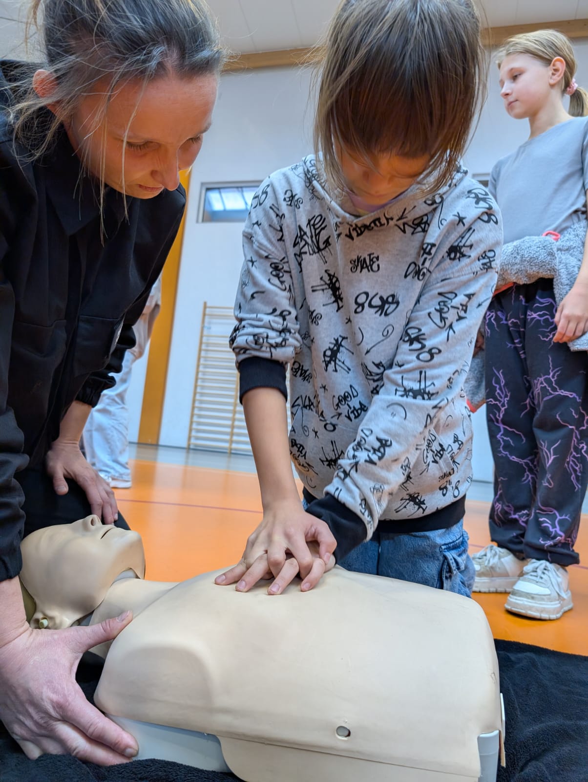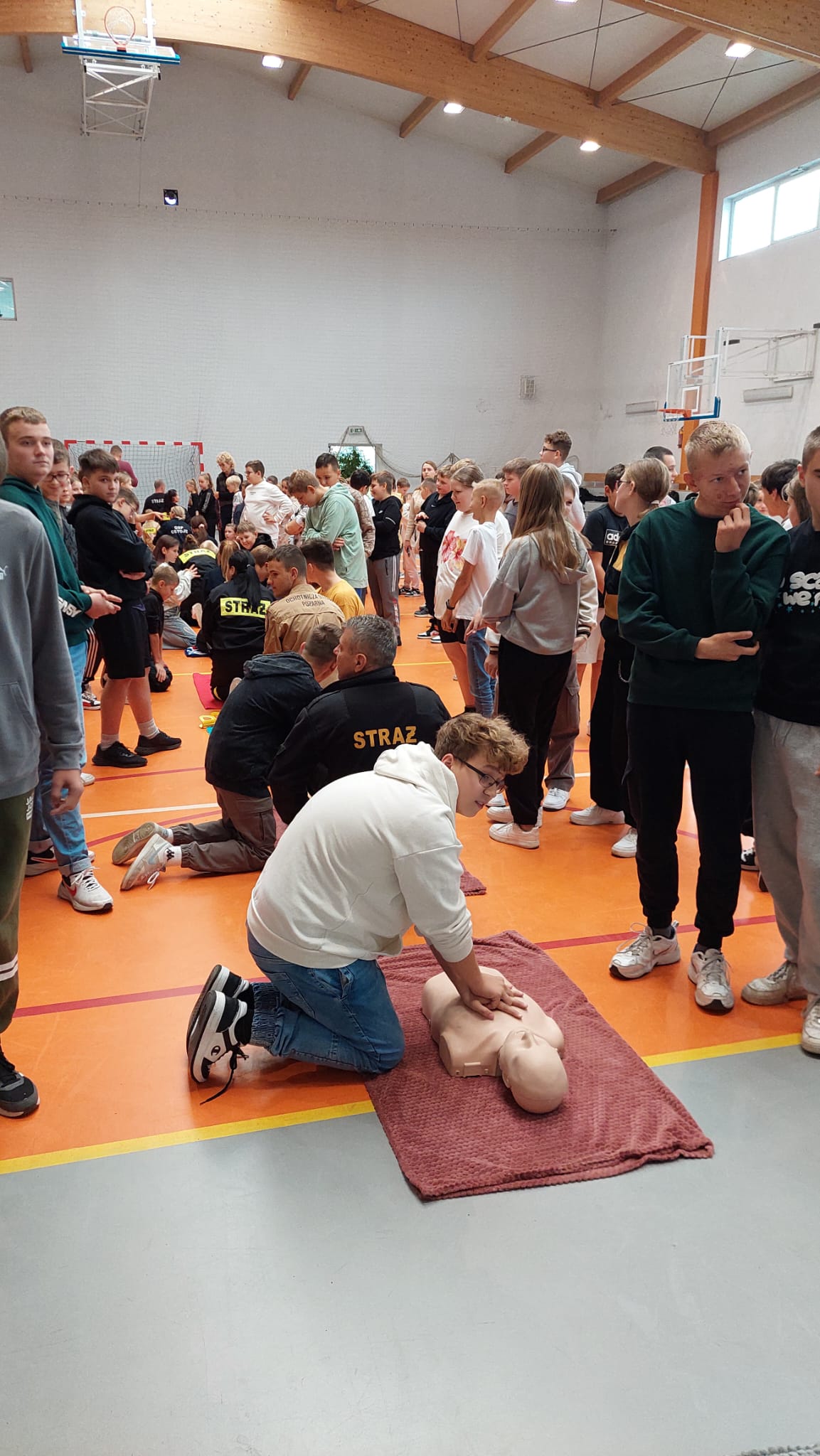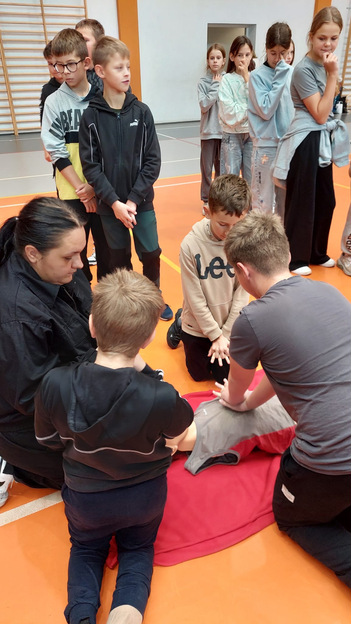 16 października , Społeczność Szkoły Podstawowej im. Stanisława Ratajczaka w Szkaradowie z ogromnym zaangażowaniem wzięła udział w kolejnej edycji ogólnopolskiej akcji Wielkiej Orkiestry Świątecznej Pomocy, polegającej na biciu rekordu w jednoczesnym prowadzeniu resuscytacji krążeniowo-oddechowej (RKO). W wydarzeniu uczestniczyło ponad 200 osób – uczniów, nauczycieli, pracowników oraz zaproszonych gości. Cennym wsparciem byli druhowie z OSP Ostoje z panem Jakubem Plewką na czele, którzy służyli pomocą i dzielili się swoją wiedzą. W wydarzeniu wziął udział pan Mateusz Janicki – Przewodniczący Rady Miejskiej w Jutrosinie, który podkreślił wagę edukacji w zakresie udzielania pierwszej pomocy. Wspólne działanie całej społeczności pokazało, jak ważna jest współpraca i solidarność w służbie ratowania życia.Dziękujemy wszystkim za obecność, energię i serce włożone w to wyjątkowe przedsięwzięcie.