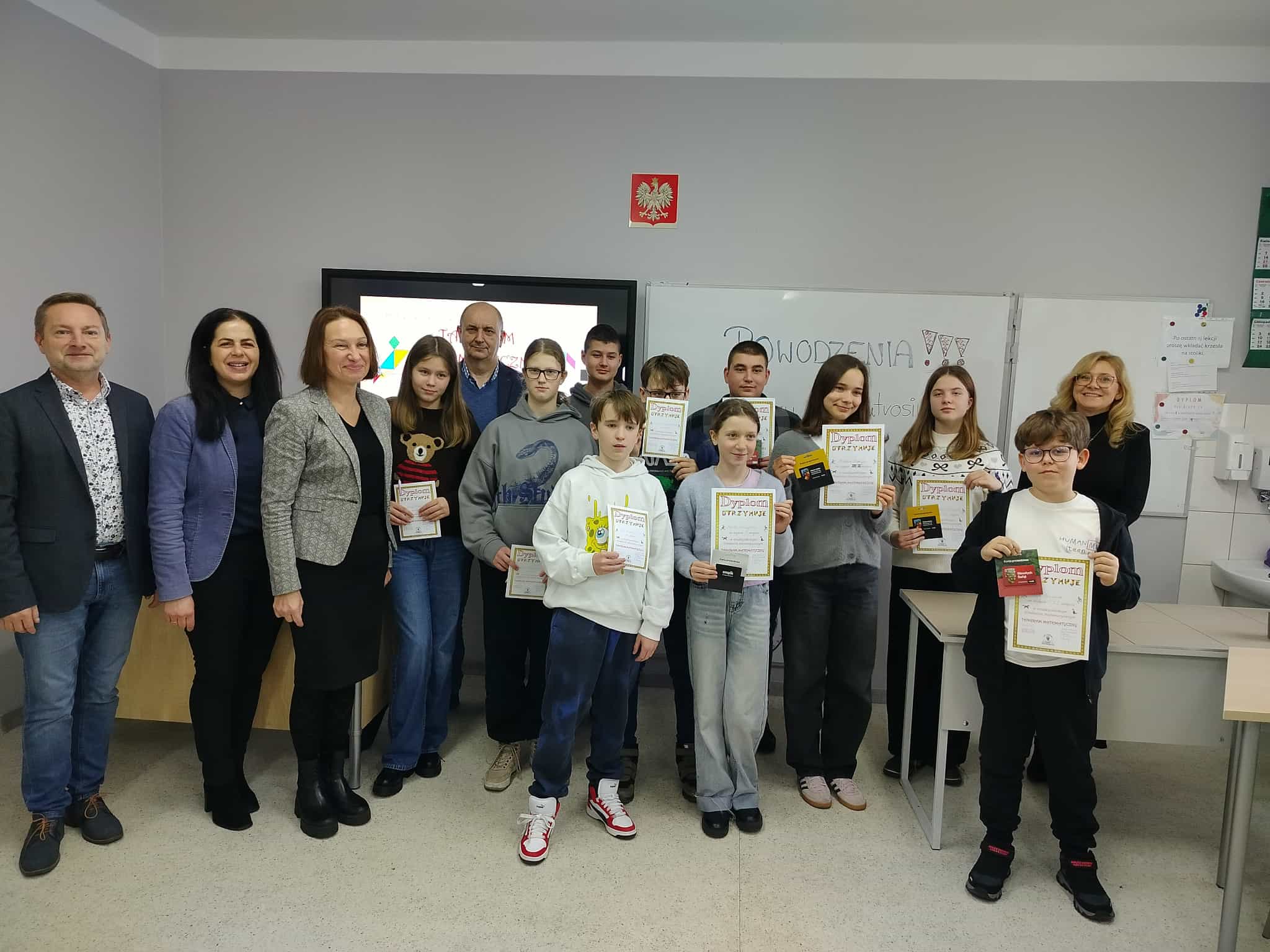 Dnia 1 grudnia 2025r. w Szkole Podstawowej w Jutrosinie odbył się międzyszkolny konkurs TANGRAM MATEMATYCZNY. Udział w nim wzięli uczniowie z pięciu szkół podstawowych. Naszą szkołę reprezentowali : Igor Kasprzak w kategorii klas IV-V oraz Anita Sierpowska w kategorii klas VI – VIII. Zadanie polegało na ułożeniu 3 figur w czasie 20 minut. Igor zajął III miejsce. Serdecznie gratulujemy i życzymy dalszych sukcesów.