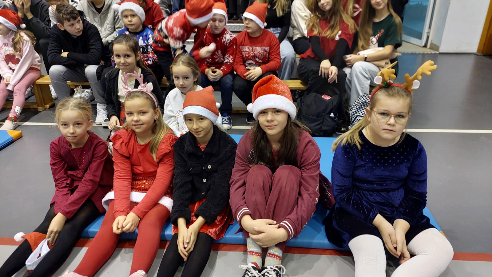 Właśnie dziś, 5 grudnia, odbyło się w naszej szkole radosne spotkanie ze Świętym Mikołajem. Uczniowie klas I-III oraz uczennice z klas IV i VI zaprezentowali przygotowane przez siebie tańce, wprowadzając wszystkich w świąteczny nastrój. Po występach każdy uczeń obdarowany został przez Mikołaja prezentem. Upominki ufundowane zostały przez Radę Rodziców. Spotkanie zakończyła wspólna, pełna energii, świąteczna zumba prowadzona przez uczennice klasy VI, w której wzięli udział wszyscy uczniowie. Atmosfera była wyjątkowo ciepła i radosna.