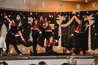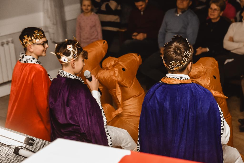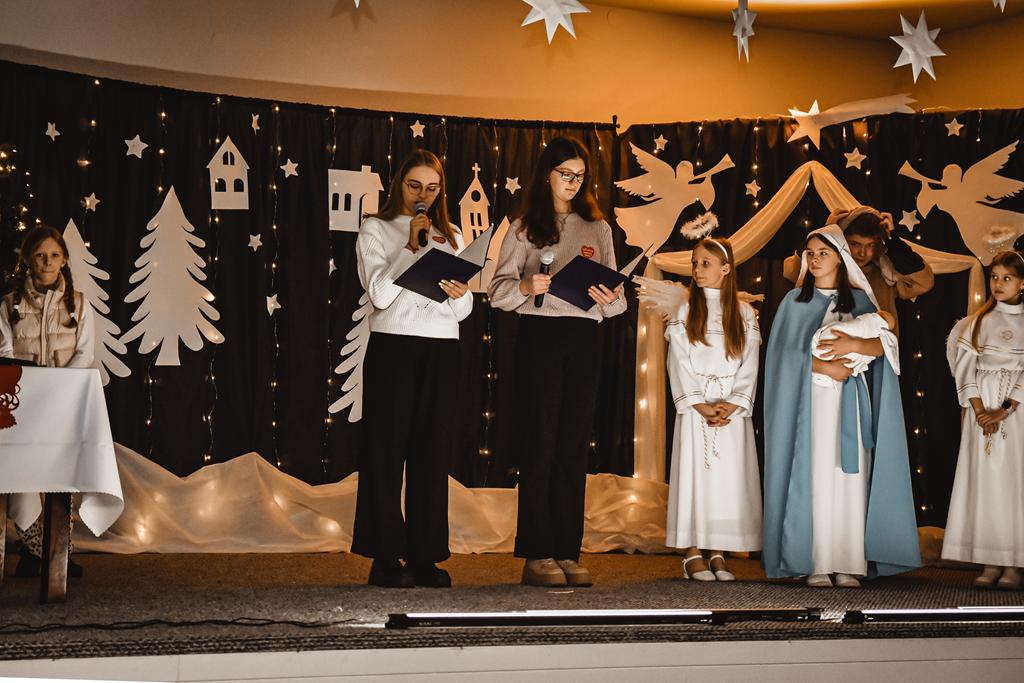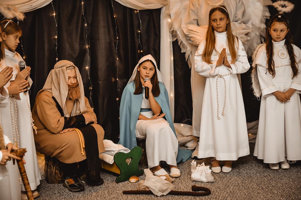 W niedzielne popołudnie, 25 stycznia, na sali w Szkaradowie odbyło się wyjątkowe przedstawienie jasełkowe przygotowane przez uczniów i nauczycieli naszej szkoły. W wydarzeniu wzięło udział blisko 100 uczniów, którzy z ogromnym zaangażowaniem zaprezentowali historię narodzin Jezusa. Barwne stroje, piękne dekoracje oraz wzruszające występy młodych aktorów stworzyły niezwykłą i podniosłą atmosferę. Przedstawienie zgromadziło liczną publiczność – mieszkańców Szkaradowa i okolic, dla których wydarzenie było okazją do wspólnego przeżywania bożonarodzeniowej tradycji. Po zakończeniu jasełek wszyscy zebrani wspólnie śpiewali kolędy, co jeszcze bardziej zintegrowało lokalną społeczność i podkreśliło rodzinny charakter spotkania. Fotorelacja wykonana została przez Panią Jowitę Maryniak. Rodzice przygotowali pyszne ciasta, które z apetytem zostały zjedzone przez przybyłych widzów. Serdecznie dziękujemy Wszystkim za zaangażowanie.