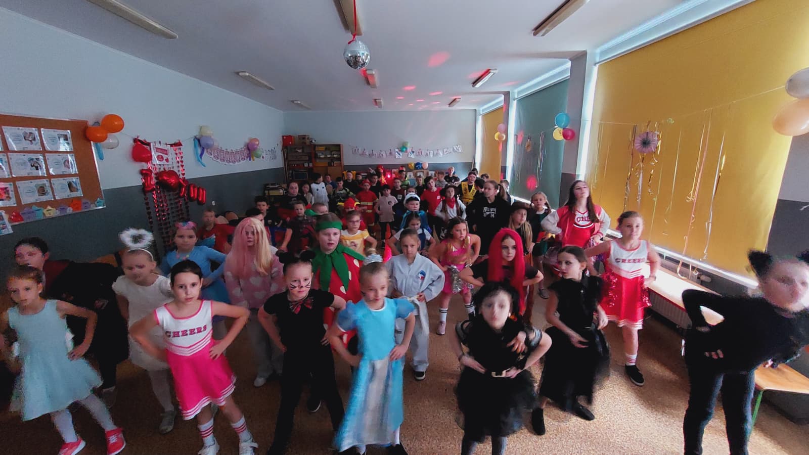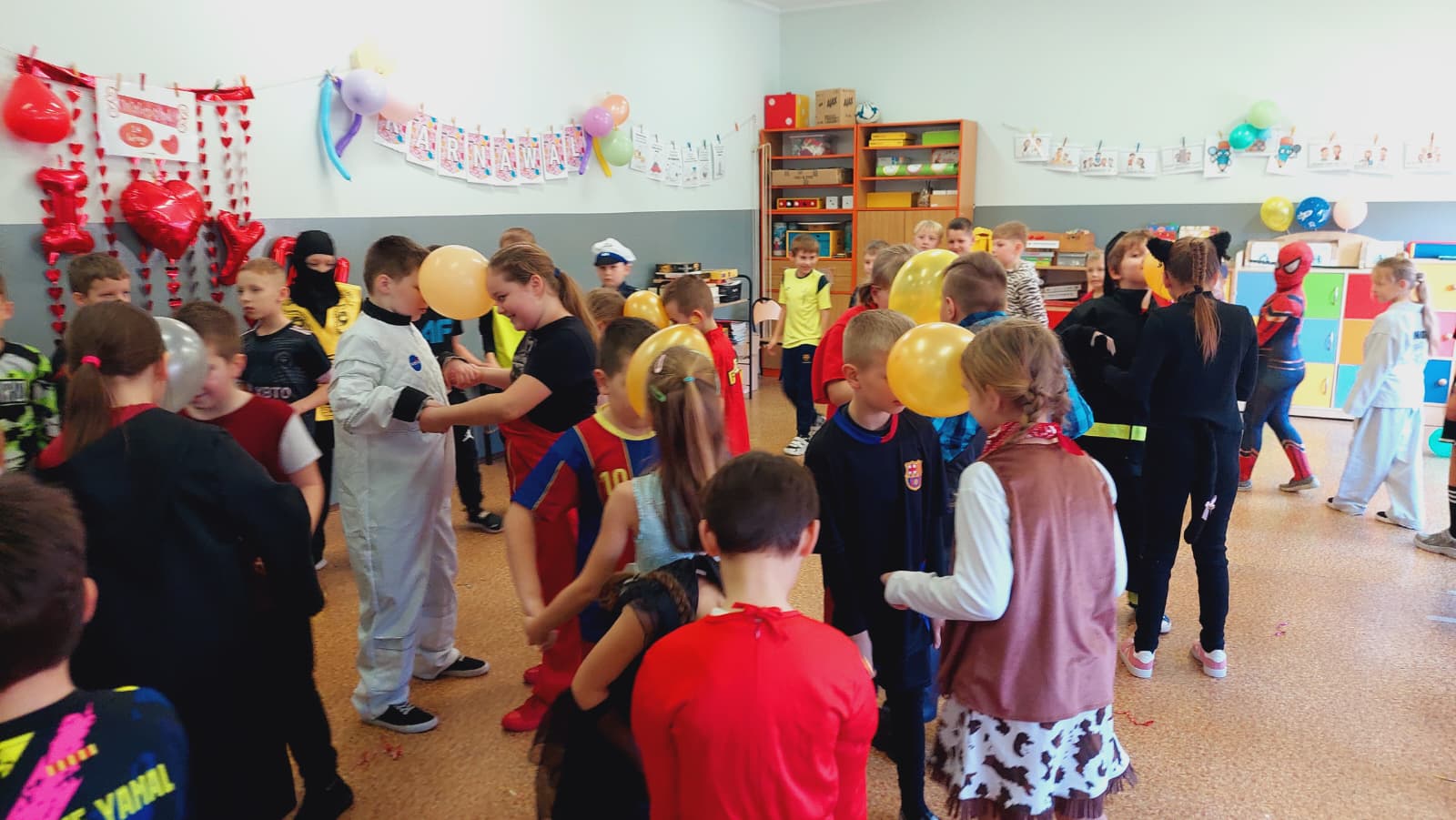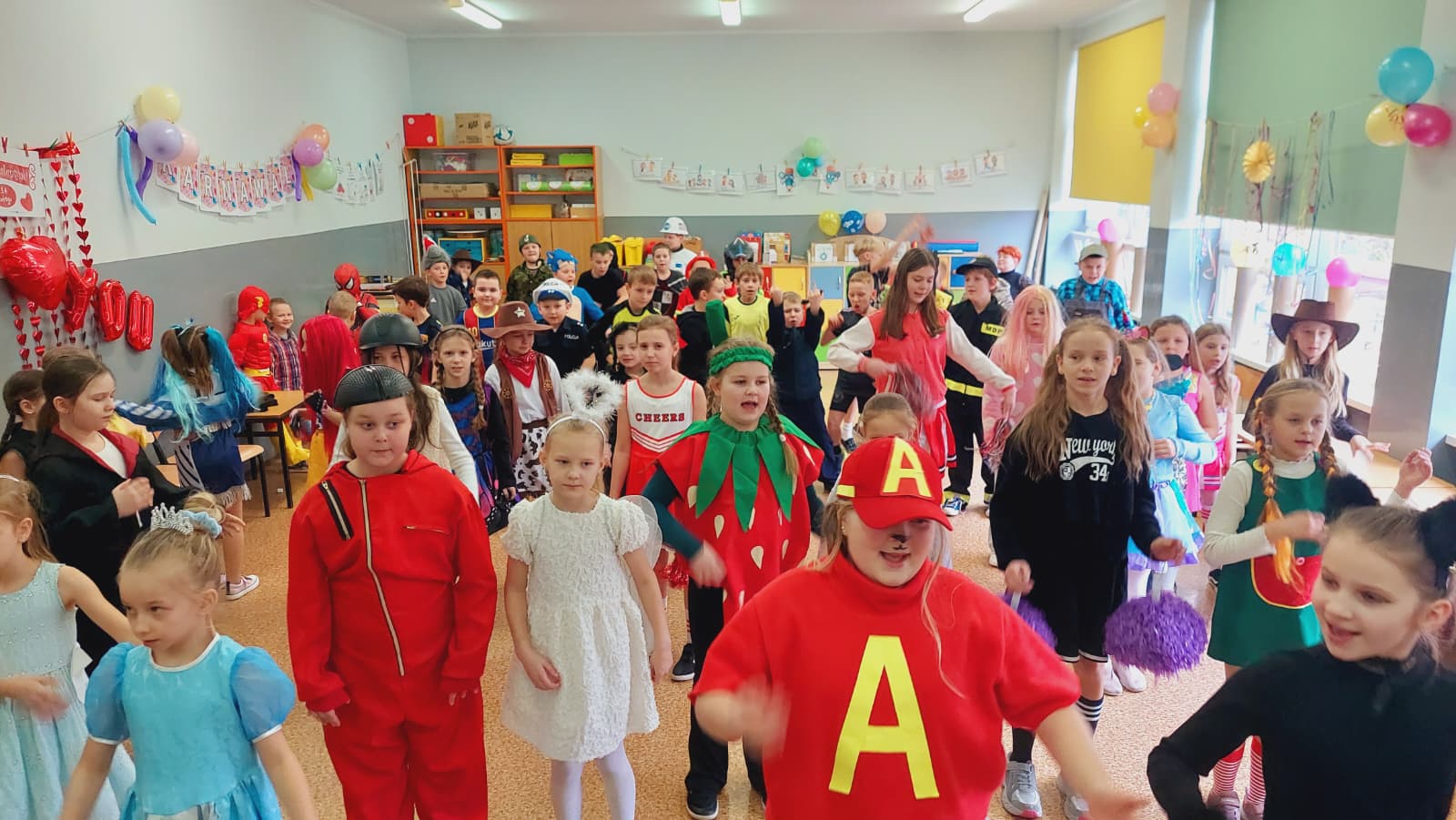 Dnia 12 lutego w klasach 1–3 odbył się bal przebierańców. Uczniowie przyszli w pięknych i pomysłowych strojach, a sala była pełna muzyki, tańca i radosnej atmosfery. Dzieci chętnie brały udział w zabawach i konkursach, a wspólne świętowanie sprawiło wszystkim wiele radości. To był wyjątkowy dzień pełen uśmiechu i dobrej zabawy.