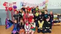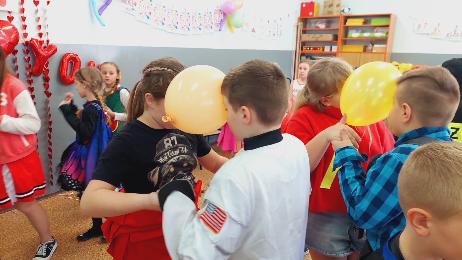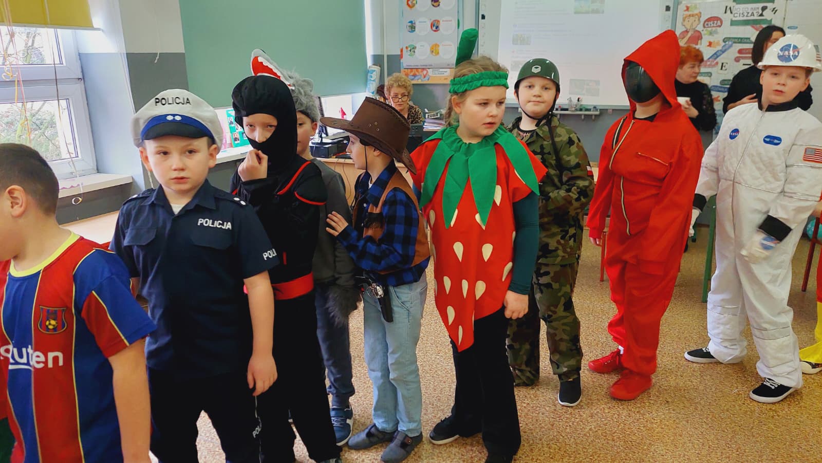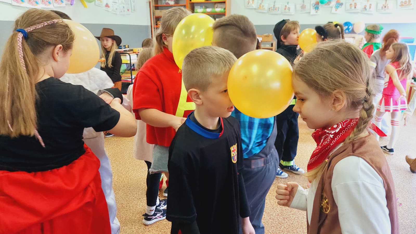 Dnia 12 lutego w klasach 1–3 odbył się bal przebierańców. Uczniowie przyszli w pięknych i pomysłowych strojach, a sala była pełna muzyki, tańca i radosnej atmosfery. Dzieci chętnie brały udział w zabawach i konkursach, a wspólne świętowanie sprawiło wszystkim wiele radości. To był wyjątkowy dzień pełen uśmiechu i dobrej zabawy.