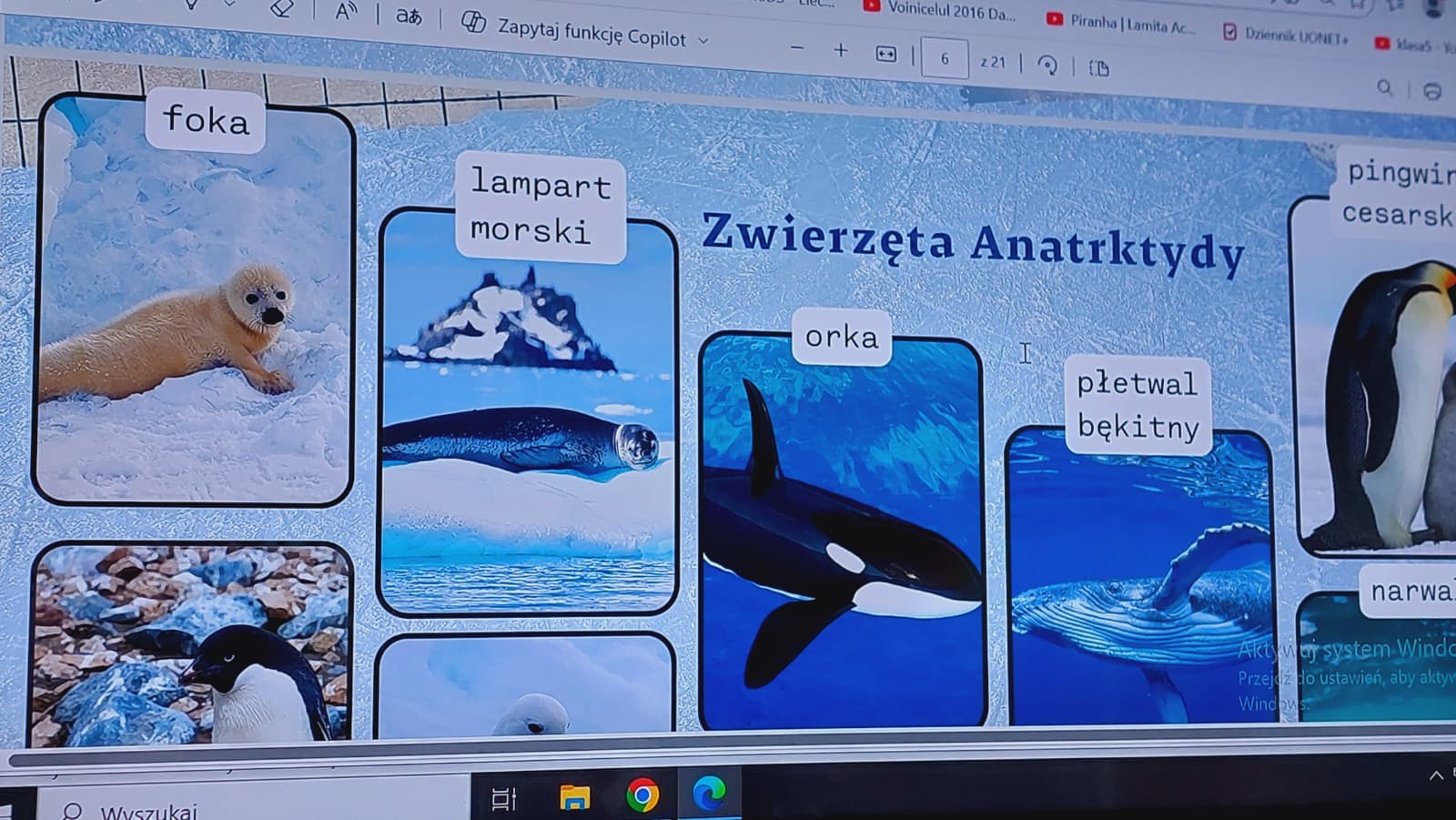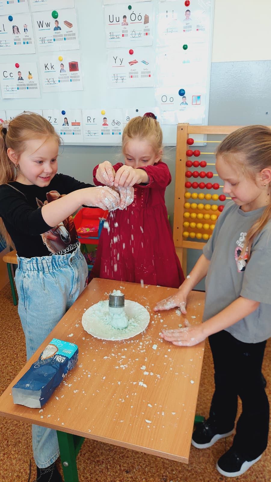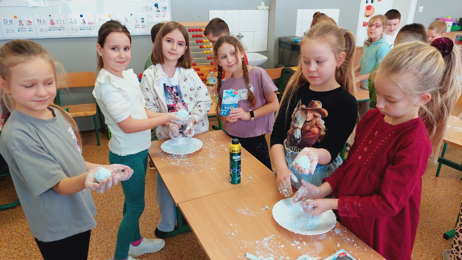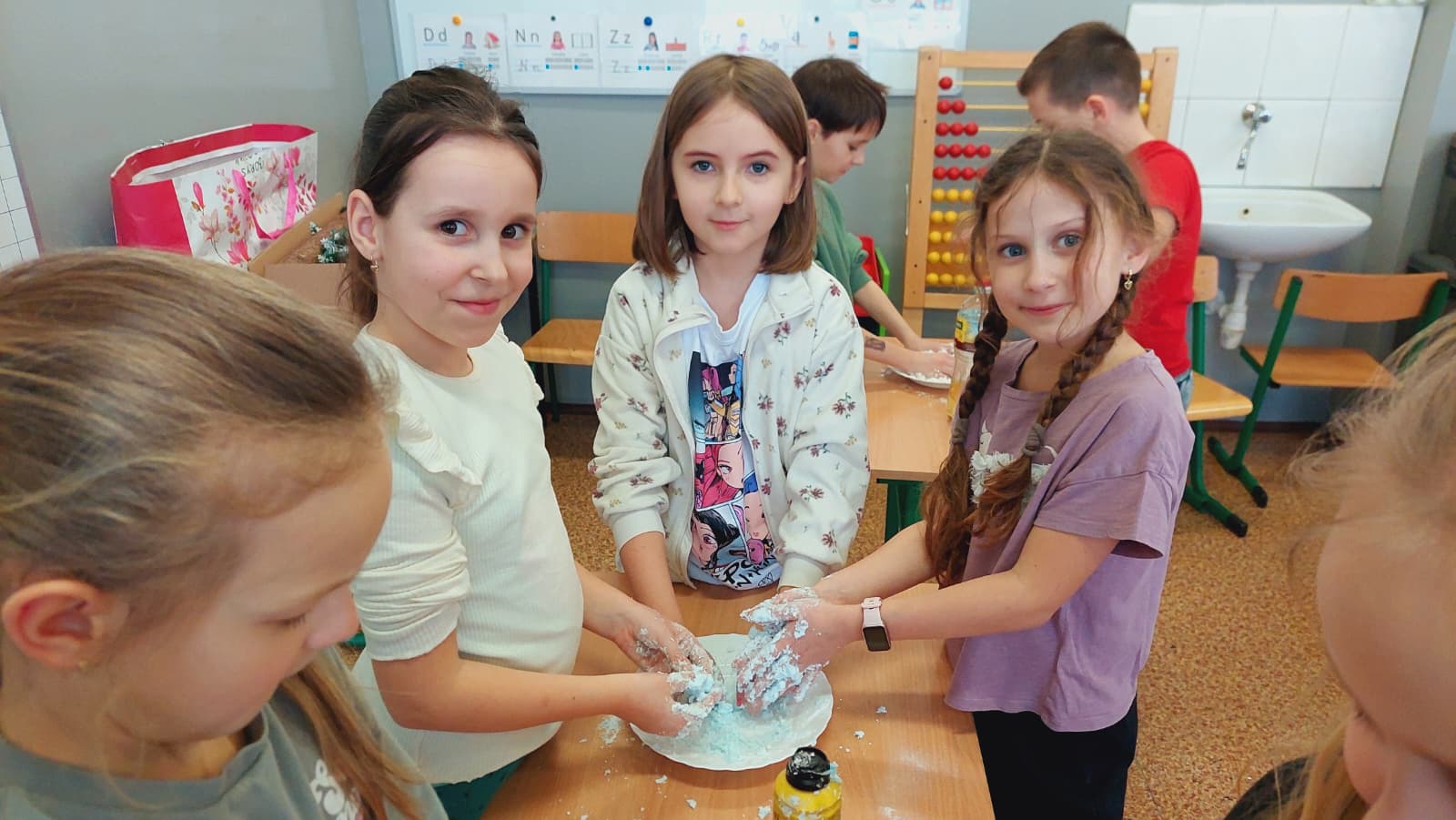 Klasa 1 wraz z wychowawczynią panią Martyną Barteczką przystąpiła do ogólnopolskiego projektu edukacyjnego "Z mapą przez świat ". W ramach projektu uczniowie poznali dzisiaj Antarktydę. Obejrzeli prezentację multimedialną, film edukacyjny, poznali ciekawostki o Antarktydzie, a największą frajdą było robienie sztucznego śniegu.