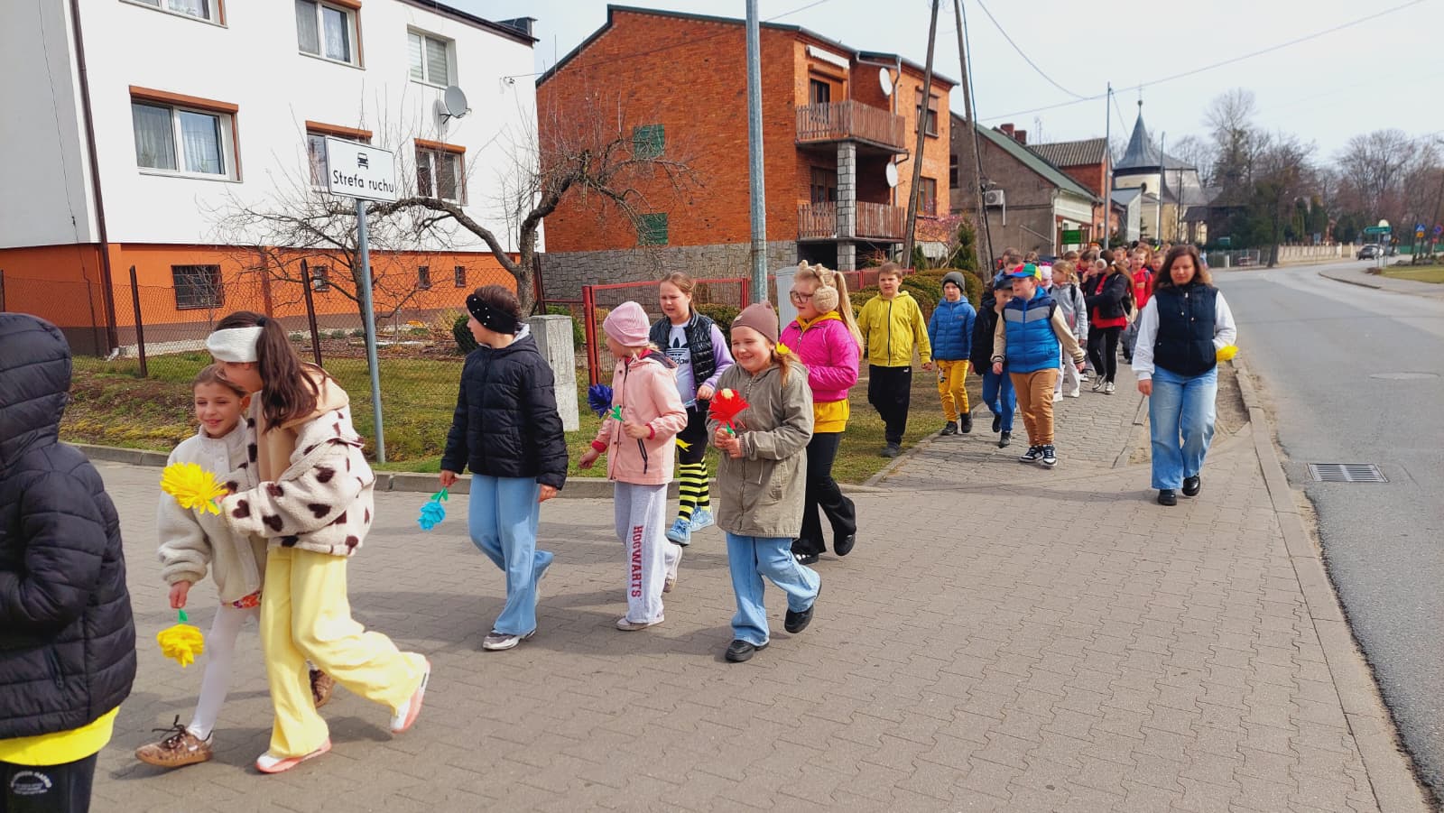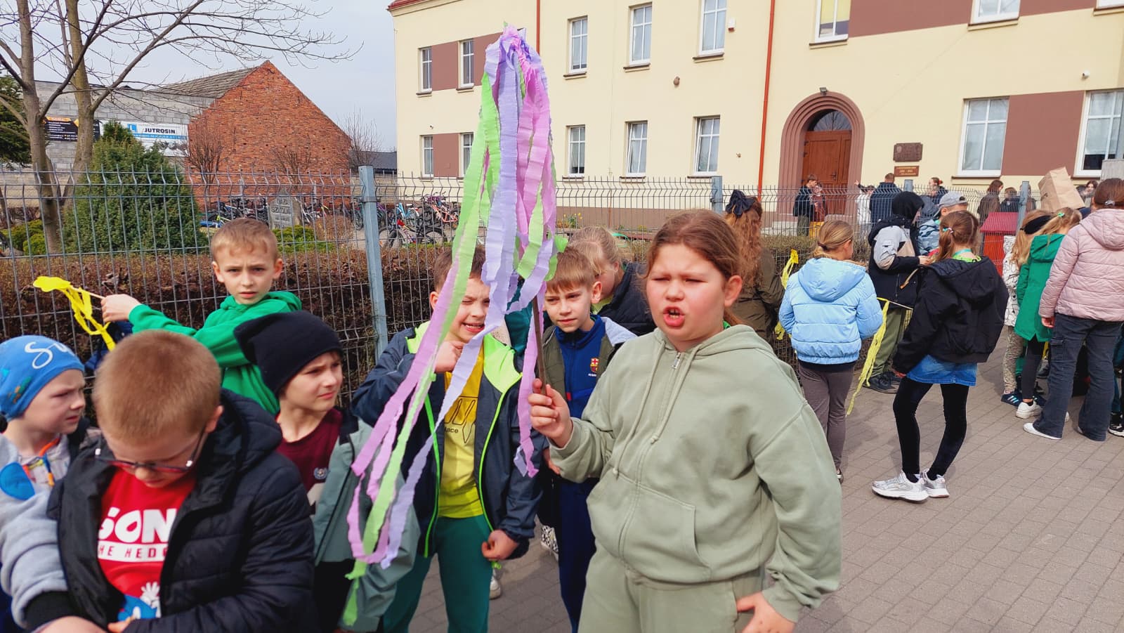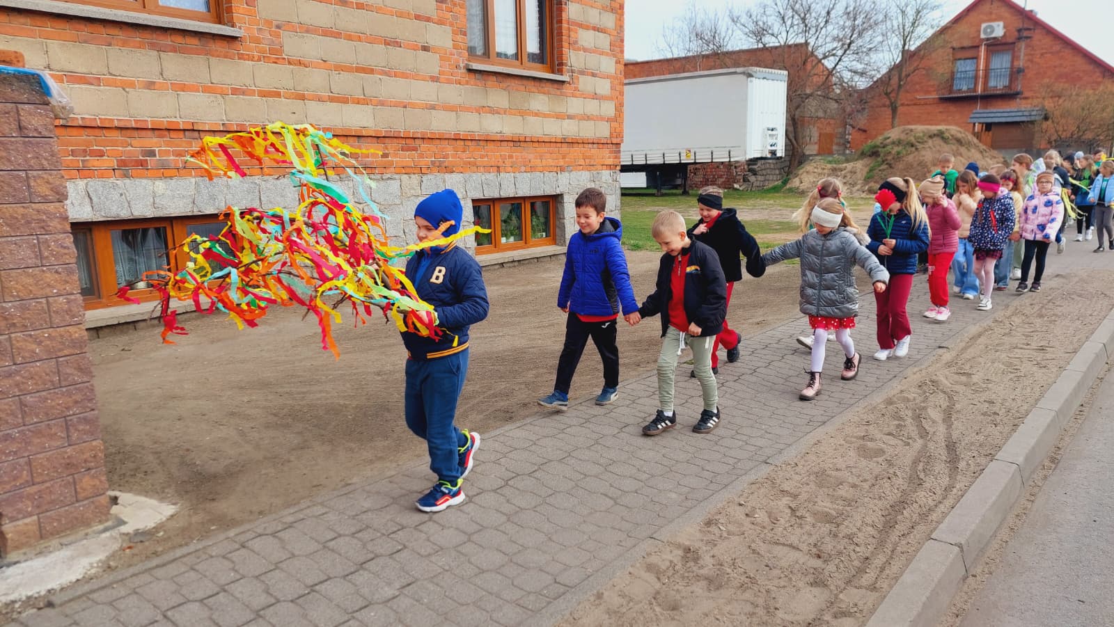 Najważniejszym punktem dnia był barwny pochód ulicami Szkaradowa. Uczniowie, wyposażeni w kolorowe gałązki, z uśmiechami na twarzach wyruszyli na spacer, symbolicznie żegnając zimę i witając wiosnę. Kolorowe dekoracje powiewały na wietrze, a radosna atmosfera udzielała się wszystkim napotkanym mieszkańcom.