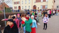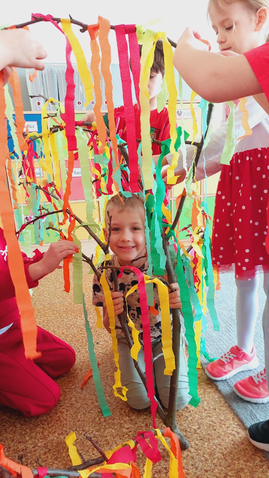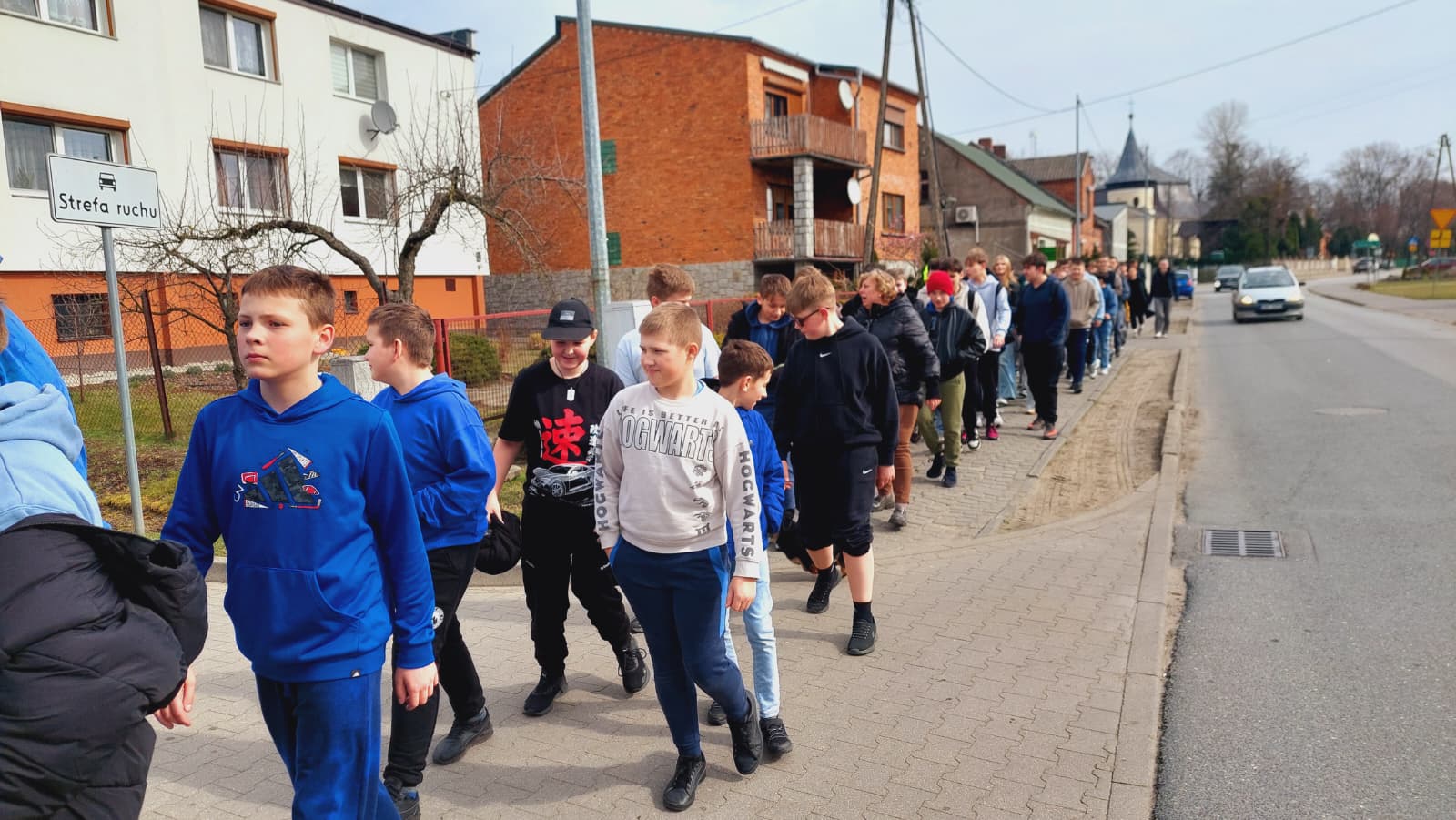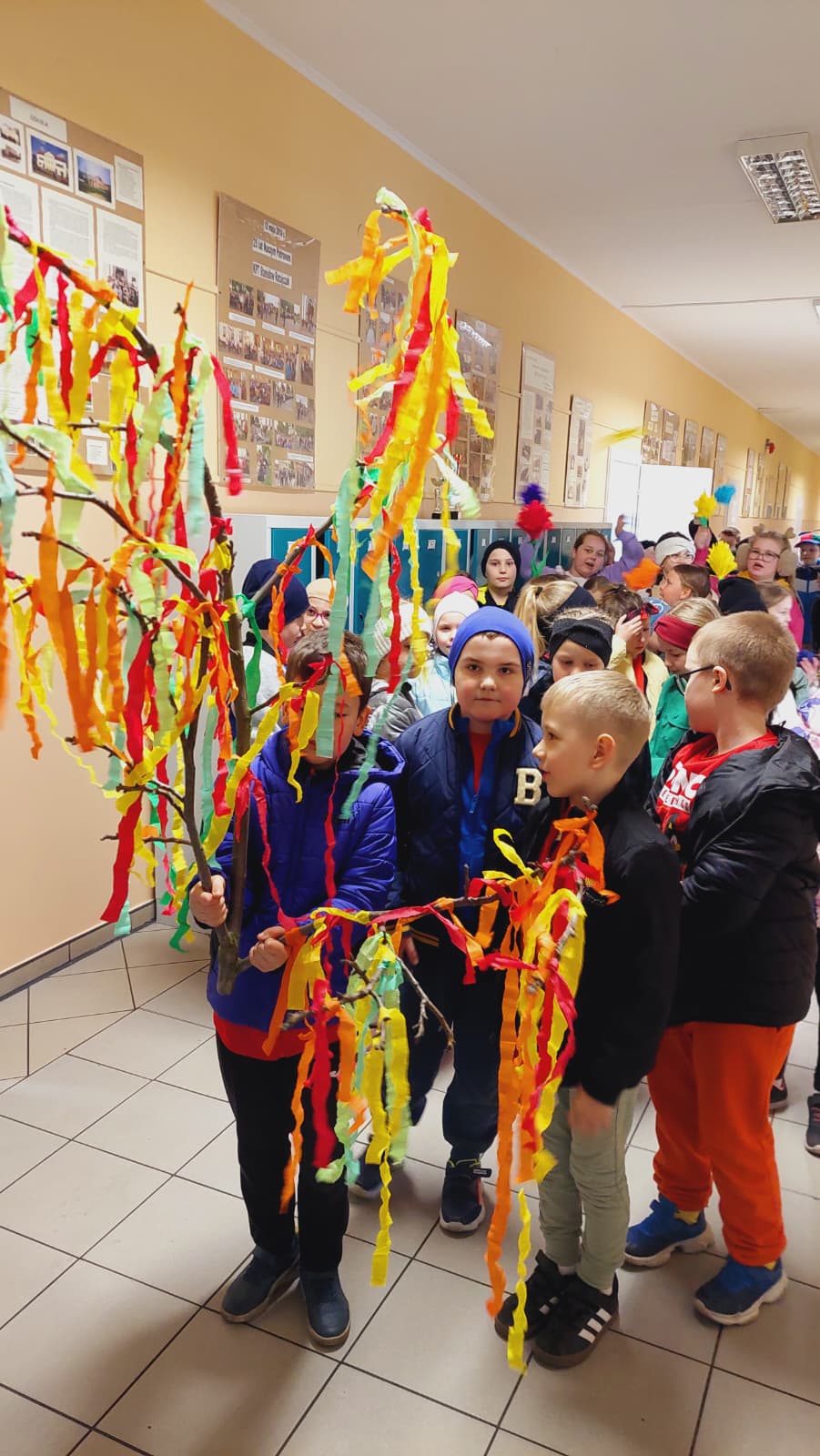 Najważniejszym punktem dnia był barwny pochód ulicami Szkaradowa. Uczniowie, wyposażeni w kolorowe gałązki, z uśmiechami na twarzach wyruszyli na spacer, symbolicznie żegnając zimę i witając wiosnę. Kolorowe dekoracje powiewały na wietrze, a radosna atmosfera udzielała się wszystkim napotkanym mieszkańcom.