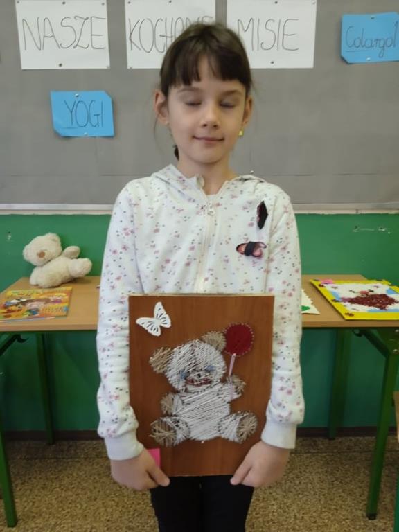 Dziękujemy wszystkim dzieciom za piękne misiowe portrety. Spośród 28 prac, uczniowie klas IV – VIII w głosowaniu wyłonili 4 obrazki, które zdobyły największą liczbę punktów: