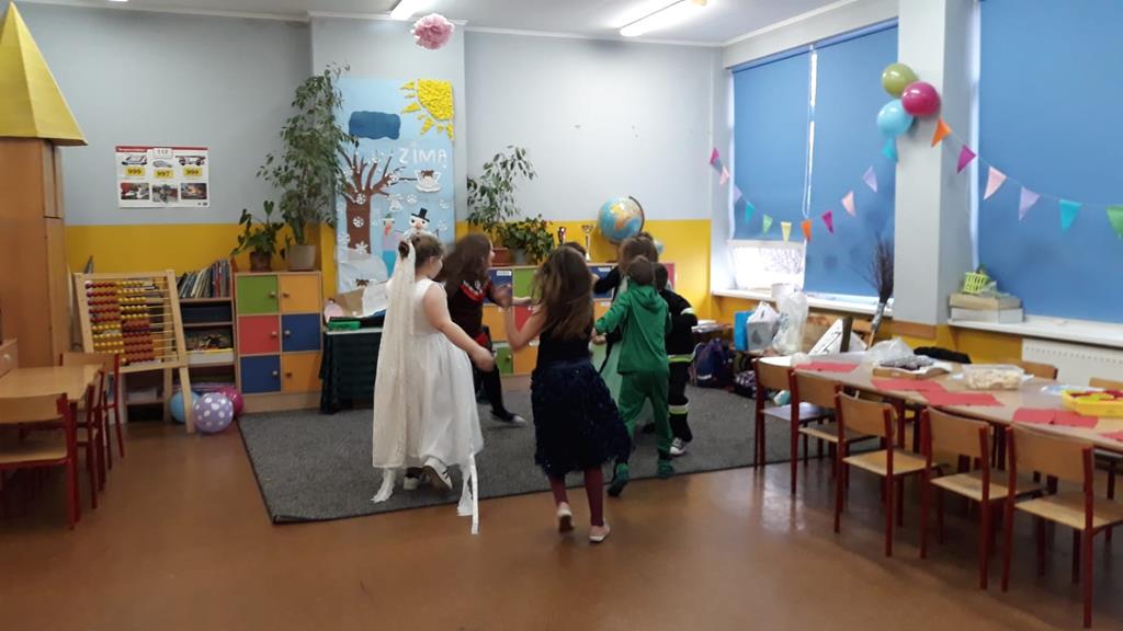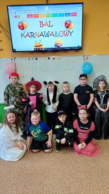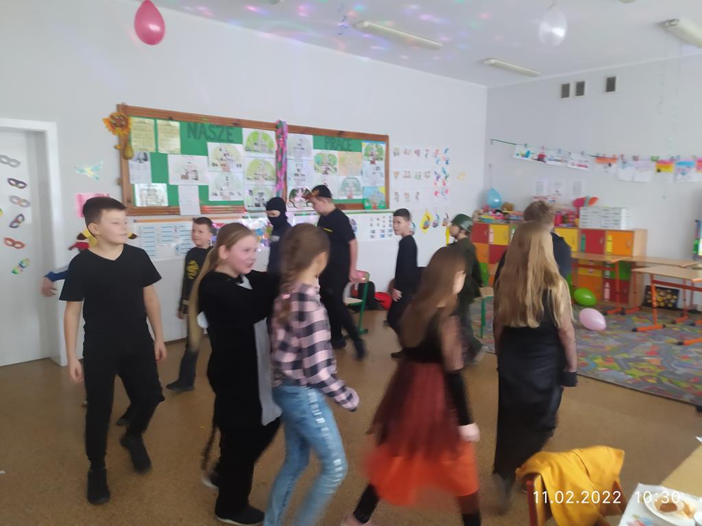 W piątek 11 lutego 2022 roku, w najmłodszych klasach odbył się bal karnawałowy. Można było spotkać wróżki, księżniczki, czarownice, rycerzy, policjantów, strażaków i wiele innych postaci. Wszystkie dzieci ,przebrane w kolorowe stroje, wspaniale bawiły się w rytm ulubionej muzyki. Podczas balu odbywały się różnorodne zabawy taneczne, które przysporzyły wiele radości najmłodszym. Na dzieci czekała również słodka niespodzianka.
