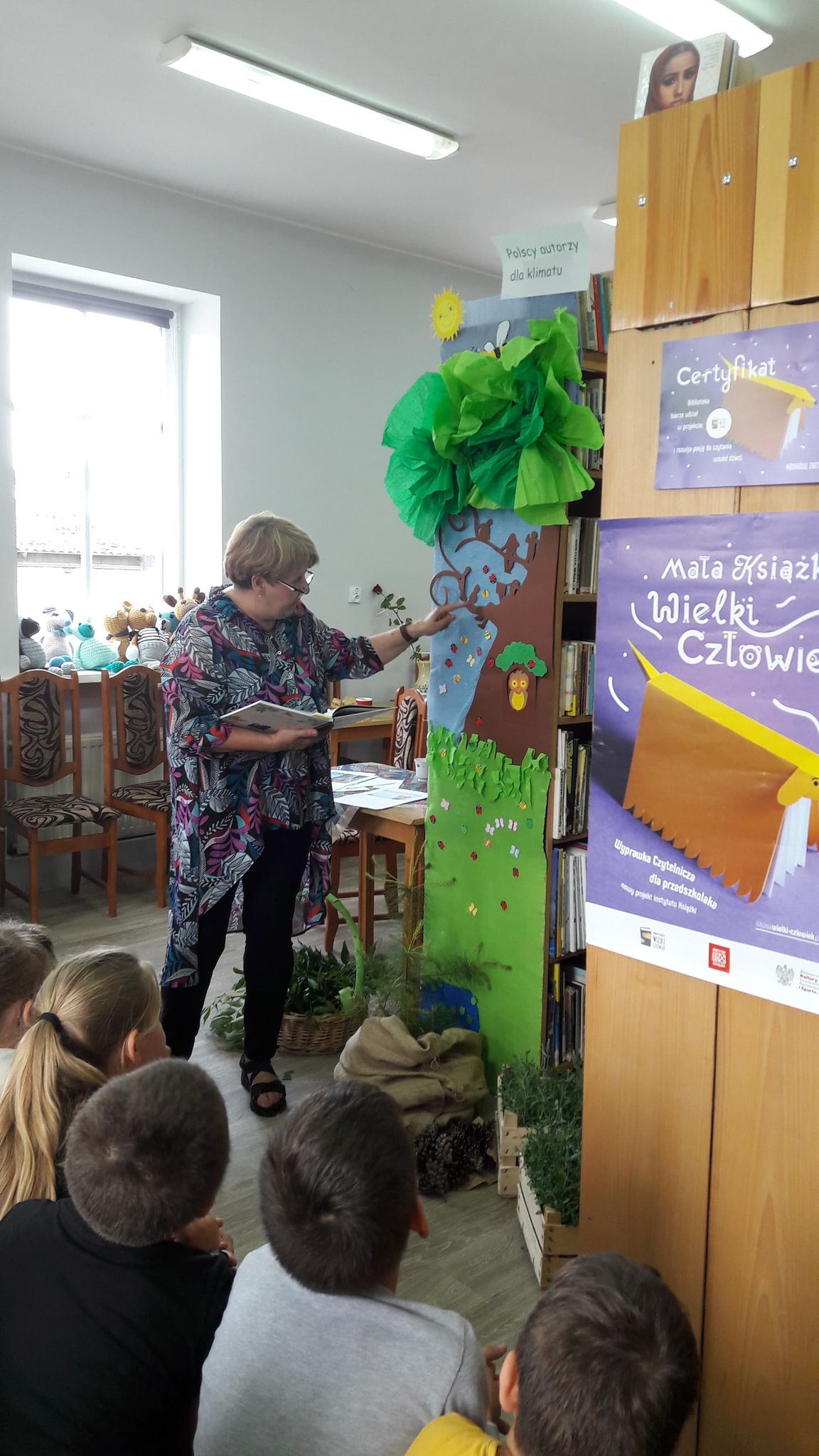 "Polscy autorzy dla klimatu" to hasło XXI Ogólnopolskiego Tygodnia Czytania Dzieciom, kampanii “Cała Polska czyta dzieciom” . Z okazji tej akcji uczniowie klas I-III Szkoły Podstawowej w Szkaradowie odwiedzili Bibliotekę w Szkaradowie (filię Biblioteki Publicznej Miasta i Gminy w Jutrosinie) i uczestniczyli w wydarzeniu czytelniczym popularyzującym ideę codziennego czytania dzieciom, które rozbudza pasje czytelnicze wśród młodego pokolenia. Dzieci z zaciekawieniem wsłuchiwały się w fragmenty książki Cecylii Malik pt. „ Drzewołazki ”, czytane przez Panią Irminę Gilicką-Zalas Dyrektor Szkoły Podstawowej w Szkaradowie . Wiedza edukacyjne wpisana w wątek przygodowy, ilustracje, scenografia, dodatkowe materiały, opowieści i pytania zachęciły uczniów do włączania się w dyskusję na temat otaczającej i niestety zagrożonej naszymi działaniami przyrody. Nakłoniły młodych słuchaczy do refleksji ekologicznej oraz działań na rzecz ochrony klimatu i planety. Zwieńczeniem akcji XXI Ogólnopolskiego Tygodnia Czytania Dzieciom było symboliczne posadzenie drzewka przekazanego na ręce Pani Dyrektor Szkoły Podstawowej w Szkaradowie przez Bibliotekę Publiczną Miasta i Gminy w Jutrosinie – filia w Szkaradowie. Drzewko zostało podarowane bibliotece przez Leśnictwo Halinów– kompleks leśny Osiek.