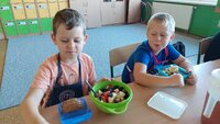 Zdrowe i wesołe śniadanko drugoklasistów.