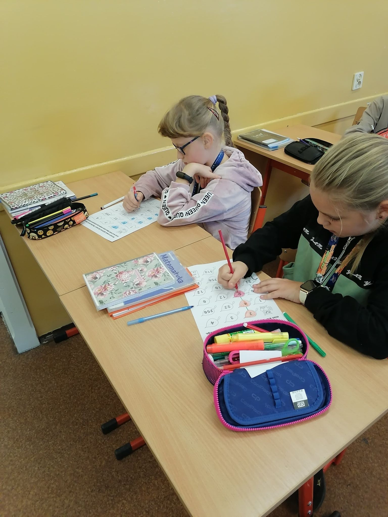 Dwa trzyosobowe uczniowskie zespoły egzaminatorów w składzie: Wiktoria Lebica, Patrycja Bilińska, Milena Kryłowska oraz Julia Juskowska, Kinga Kozioł, Zosia Dyba przeprowadziły wśród uczniów egzamin pisemny a wśród pracowników szkoły egzamin ustny. Zarówno dzieci jak i dorośli wykazali się bardzo dobrą znajomością tabliczki mnożenia, zdobywając odznakę EKSPERTA TABLICZKI MNOŻENIA. Nie zabrakło też gier i zabaw z wykorzystaniem kart Grabowskiego, ,, Bójka na mnożenie”, łamigłówek i kolorowanek. Obchody te wzbudziły wiele pozytywnych emocji. Dziękujemy serdecznie za udział w tym wydarzeniu i zapraszamy za rok!