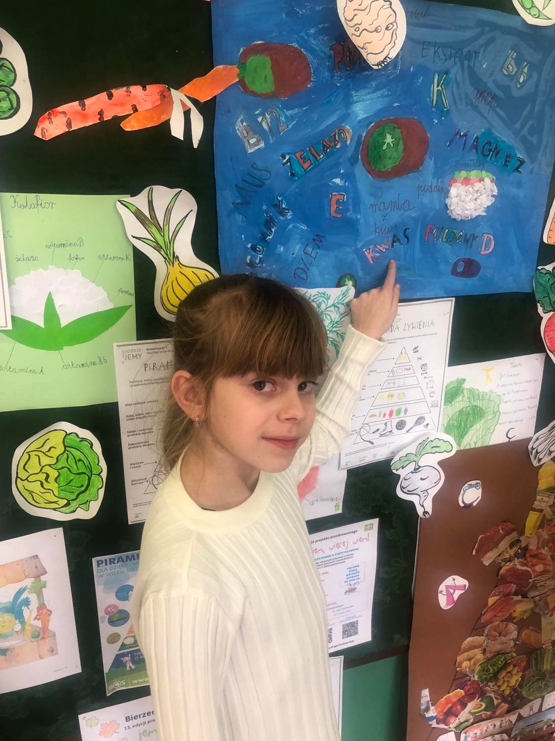 Dzieci bardzo aktywnie angażowały się w realizację proponowanych zadań, ucząc się i bawiąc jednocześnie. Wspólnie omawialiśmy jakie witaminy i minerały zawierają poszczególne kolory owoców i warzyw i jaki jest ich wpływ na organizm człowieka. Dzieci obejrzały film edukacyjny „Owoce i warzywa”, przeglądały książki, encyklopedie, broszury przedstawiające wartości odżywcze i witaminy które w nich znajdujemy oraz poznały ich znaczenie w zbilansowanej diecie. Miały też możliwość degustacji oraz wyboru ich zdaniem najsmaczniejszego owocu lub warzywa. W zabawach rozpoznawały je różnymi zmysłami. Potem w parach lub samodzielnie przygotowały reklamy w formie plakatu zachęcające do jedzenia wybranego warzywa lub owocu. Dzieci chętnie też opowiadały o ulubionych warzywach i owocach i z pomocą mam przygotowały ciekawe przepisy na zdrowe, bogate w witaminy i minerały potrawy.„Bomba witaminowa”, tj. sałatka z różnych owoców, przygotowana przez dzieci w klasie, została zjedzona z wielkim apetytem. Dużym powodzeniem cieszyły się warsztaty piernikowe, które miały zachęcić do pieczenia zdrowych słodkości bez których niestety czasem trudno się obejść. Zrobione samodzielnie w domu z dobrych produktów są alternatywą do gotowych, bardzo słodkich batoników i ciasteczek.
