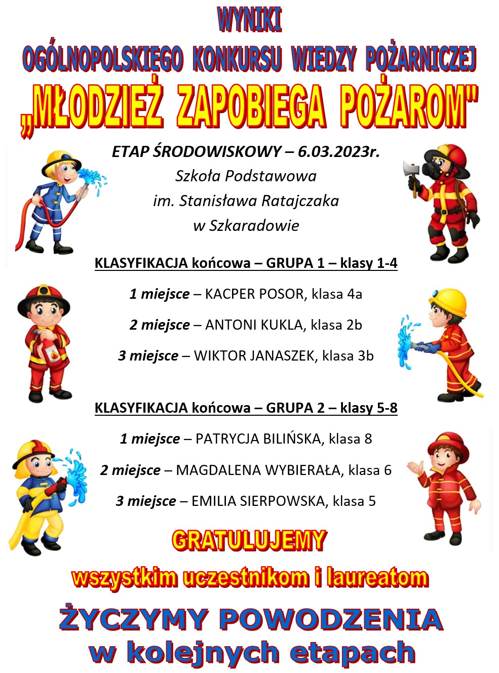 Wyniki etapu szkolnego OTWP "Młodzież zapobiega pożarom"