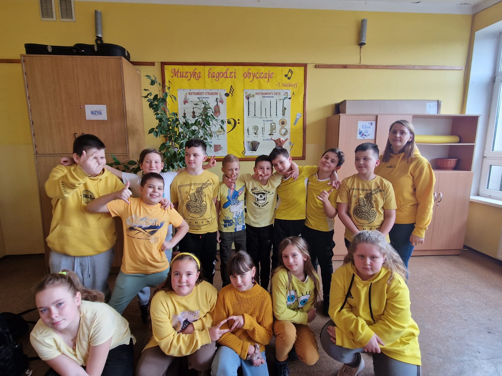Dziś uczniowie naszej szkoły przyszli ubrani w kolorach wiosennych. Kążda klasa przydzielona miała inny kolor. Dodatkowo wszyscy wzięli też udział w Dniu Kolorowej Skarpetki, na znak solidarności w związku ze Światowym Dniem Zespołu Downa.