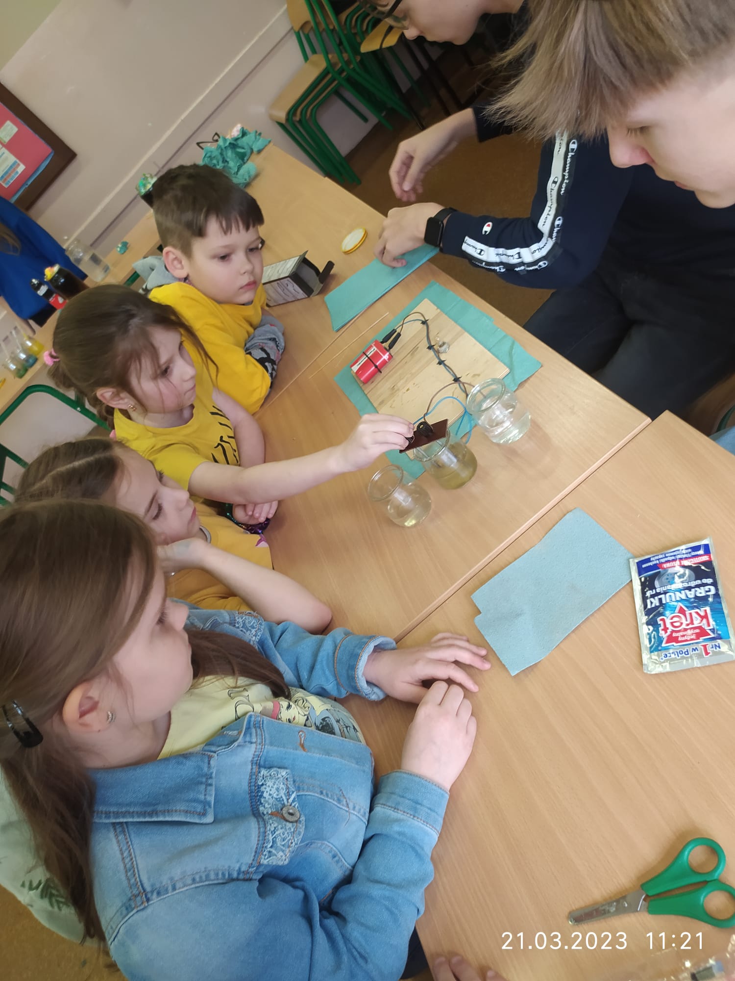 W ramach akcji uczniowie brali udział w warsztatach, na których poprzez zabawę i różnorodne działania pogłębiali swoją wiedzę o wodzie, jej znaczeniu dla ludzi i środowiska oraz właściwościach. Postanowiliśmy połączyć edukację ze świetną zabawą. W czasie zajęć badawczych uczniowie sprawdzali rozpuszczalność substancji w wodzie, a następnie sprawdzali, które roztwory przewodzą prąd, Pogłębili swoją wiedzę na temat napięcia powierzchniowego, czy dyfuzji. Obejrzeli prezentację, z której mogli się dowiedzieć wiele ciekawostek na temat wody, a także poznali sposoby codziennego oszczędzania wody.