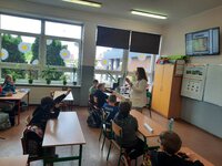Klasa III a wraz z wychowawczynią Panią Aleksandrą Zaradną w ramach projektu "Europa- mój dom" zakończyła swoje "podróże" po Europie. Jako ostatnie Państwo "odwiedziliśmy" Francję. Bardzo dziękujemy naszej Pani Dyrektor- wieloletniej nauczycielce języka francuskiego, za wspaniałą lekcję, podczas której mogliśmy nauczyć się podstawowych zwrotów, liczb oraz poznaliśmy tradycje i zwyczaje francuskie.