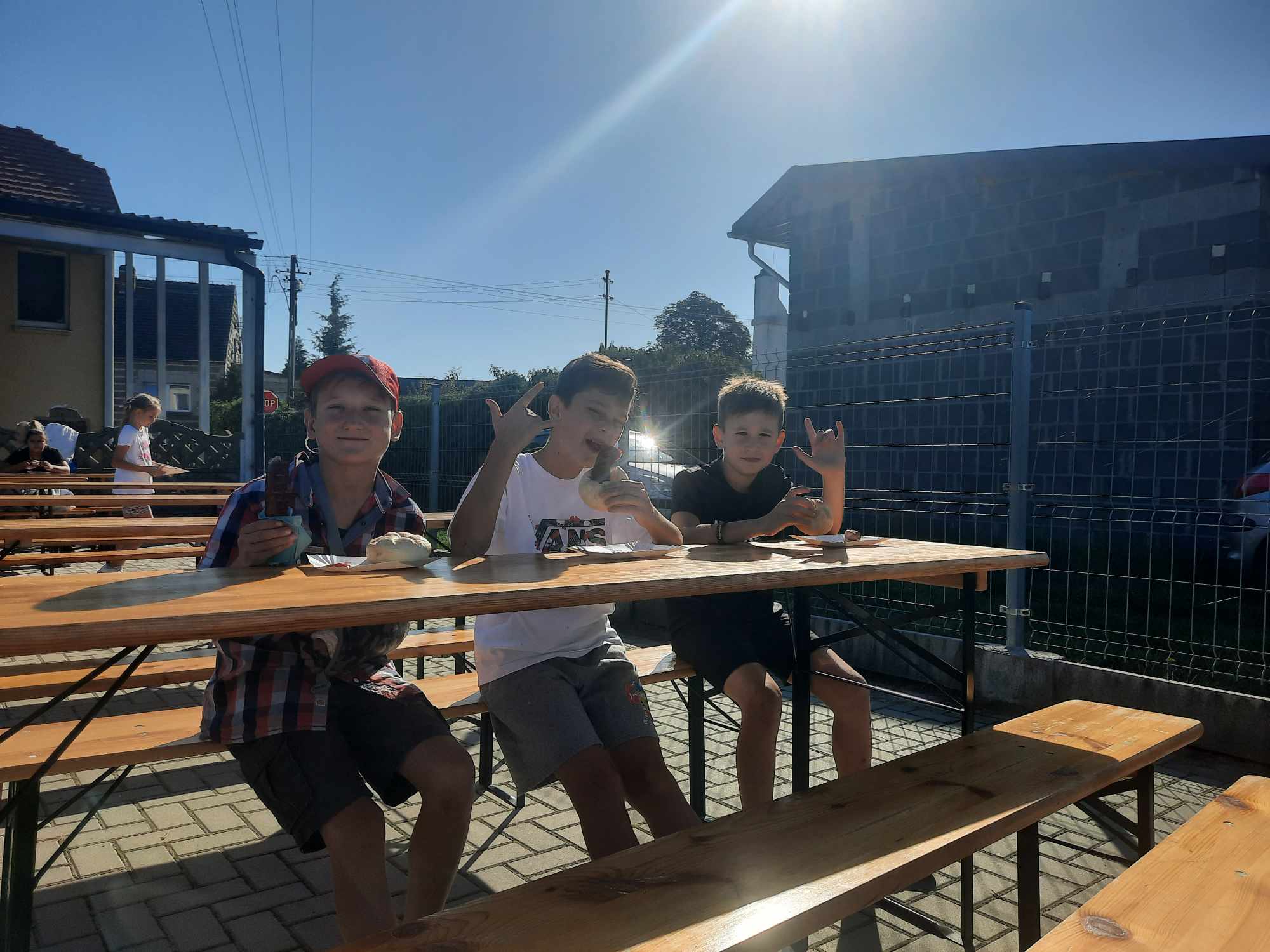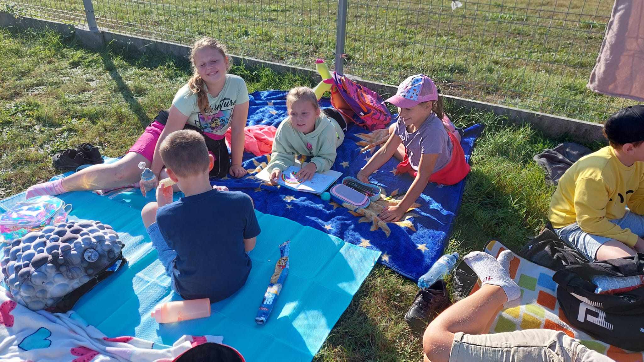 Dziś, 28 września 2023roku, w naszej szkole odbyło się „Święto Ziemniaka i Dzień Chłopaka”. Wszyscy uczniowie naszej szkoły wraz z nauczycielami udali się do Jezior, aby korzystając z uroków pięknej jesieni, miło i sympatycznie spędzić czas. Uczniowie z klas 1-3 na miejsce przyjechali autobusem szkolnym, starsi zaś pod opieką nauczycieli pomaszerowali do Jezior pieszo. Tam czekało na wszystkich wiele niespodzianek. Każdy, kto chciał odpocząć, mógł posiedzieć, porozmawiać z kolegami, pobyć w towarzystwie przyjaciół. Inni grali w piłkę nożną, siatkówkę, brali udział w zawodach oraz tańcach. Po aktywnie spędzonym czasie na wszystkich czekała kiełbaska przygotowana przez pracowników obsługi. Kiełbaska zakupiona została przez naszą Radę Rodziców. Nie zabrakło też tradycyjnych pieczonych ziemniaków, które po raz kolejny ufundowała pani Asia Eliasz. Dziękujemy też sołtysowi Jezior Panu Krzysztofowi Dzieciuchowiczowi za udostępnienie nam miejsca na wspólne spotkanie. Dodatkowo w związku ze zbliżającym się Dniem Chłopca, żeńska część samorządu uczniowskiego przygotowała dla kolegów kolorową fotobudkę oraz zabawę w formie quizu. Naszym Panom, zarówno tym małym, jak i dużym życzymy WSZYSTKIEGO NAJLEPSZEGO!!!
