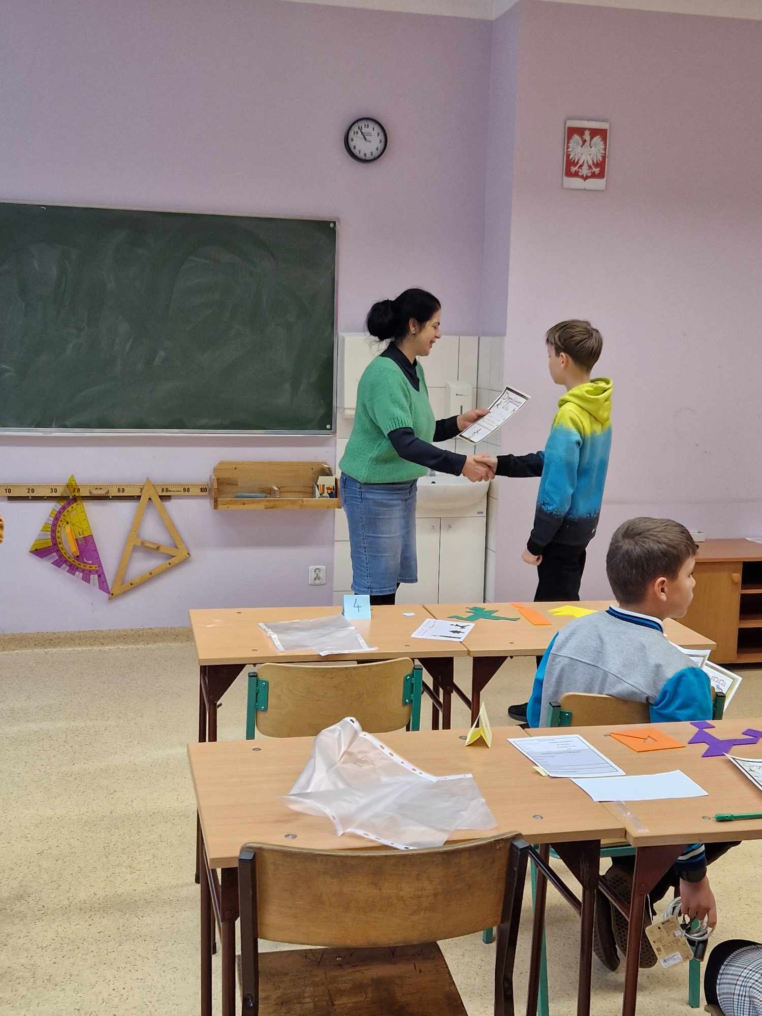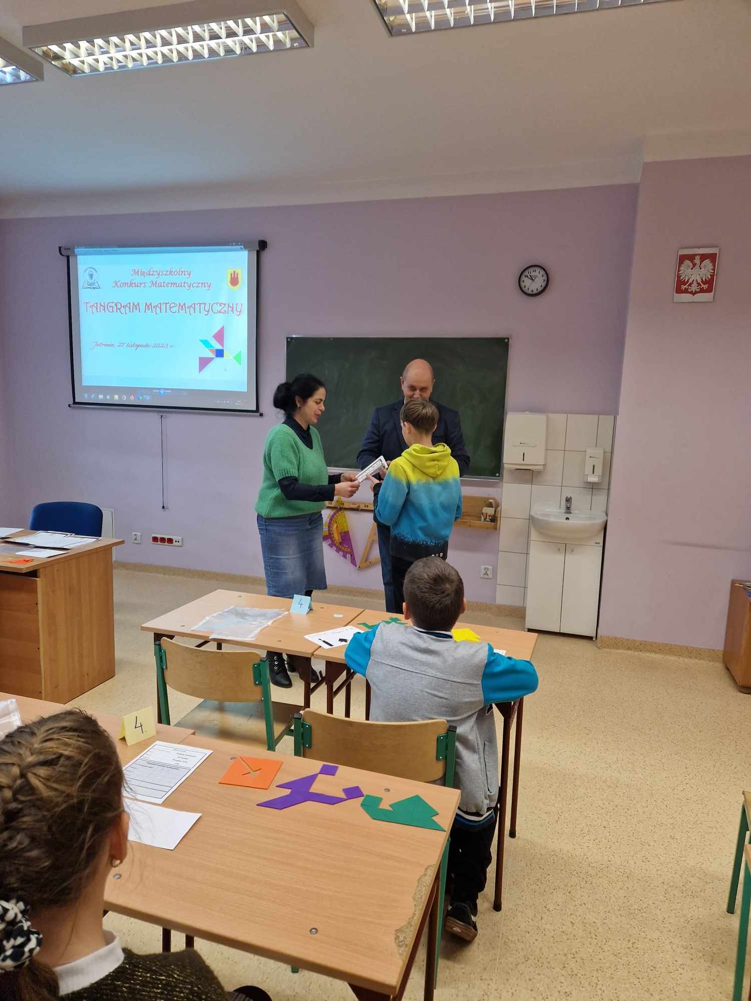 27 listopada uczeń klasy VII, Patryk Sierpowski brał udział w konkursie Tangramy Matematyczne, który odbył się po raz piąty w Szkole Podstawowej w Jutrosinie. Konkurs polegał na ułożeniu w ciągu 20 minut trzech tangramowych figur. Patryk wykonał to zadanie bezbłędnie. Jednak w klasyfikacji końcowej liczył się też czas, dlatego ostatecznie zajął III miejsce. Patryk bardzo lubi różnego rodzaju łamigłówki wymagające logicznego myślenia I spostrzegawczości, m.in.: kostki Rubika, tangramy i wiele innych. Zawsze ma je pod ręką i w wolnych chwilach, nawet w szkole, chętnie je układa. Dlatego konkurs ten był dla niego wielką przyjemnością. Gratulujemy i życzymy dalszych sukcesów.