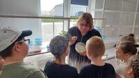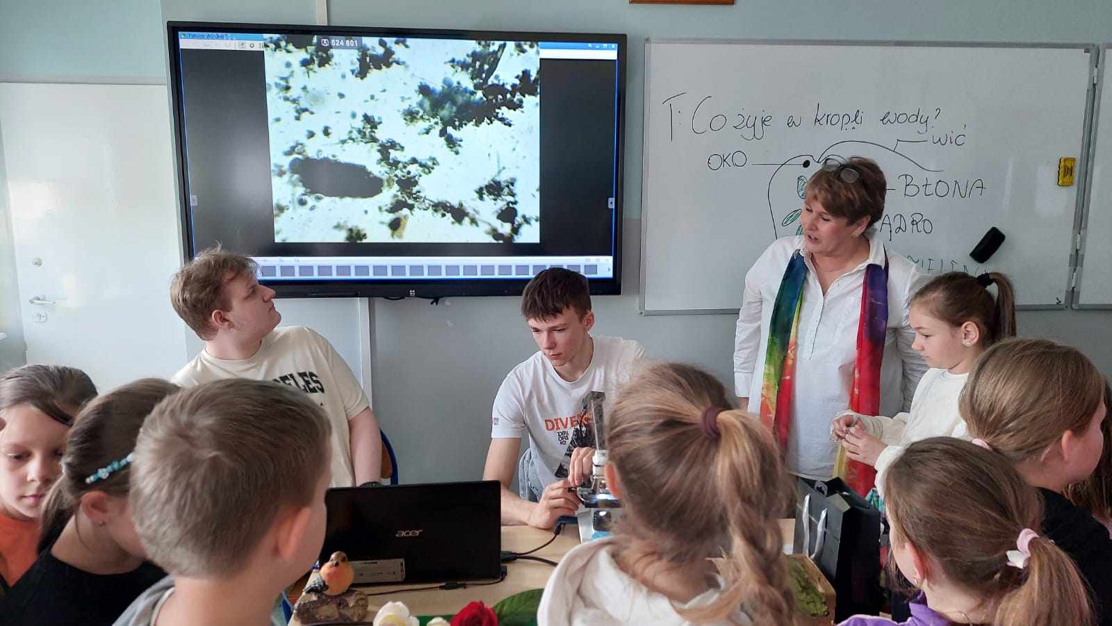 W poniedziałek 29 kwietnia klasa 2 i 3b z opiekunkami panią Martyną Barteczką, Magdaleną Świerzewską oraz Joanną Kapałą udały się na wycieczkę do Jutrosina. Najpierw pojechaliśmy do Zespołu Szkół im. Jana Pawła II gdzie na zaproszenie naszej byłej pani z Dyrektor Pani Irminy Gilickiej -Zalas uczniowie wzięli udział w warsztatach pt."Co żyje w kropli wody"? Przekonali się, że żyje w niej sporo organizmów oglądając preparaty pod mikroskopem. Później udaliśmy się do Przedsiębiorstwa Hodowlano-Nasiennego W. Legutko, gdzie Pani Anna Ćwiklinska oprowadziła nas po przedsiębiorstwie i opowiedziała o specyfice jego działania. Na koniec wycieczki były przepyszne lody gałkowe na jutrosińskim rynku. Jeszcze raz serdecznie dziękujemy Pani Irminie i Pani Ani za poświęcony czas i przekazaną wiedzę.