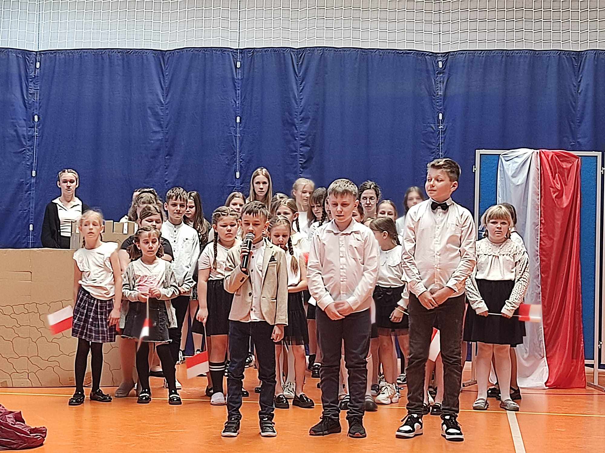 Dnia 30 kwietnia w naszej szkole odbyła się uroczysta akademia z okazji 233 rocznicy uchwalenia Konstytucji 3 Maja.Konstytucję uchwalono w 1791 roku i była ona pierwszą w Europie i drugą na świecie po konstytucji amerykańskiej. Określiła ona ustrój państwa oraz prawa i obowiązki człowieka i obywatela. Z tej okazji uczniowie klas IV, Va i Vb pod kierunkiem swoich pań wychowawczyń i pani historyk, przygotowali program artystyczny, który miał za zadanie przybliżyć wszystkim to doniosłe wydarzenie historyczne, a także uświadomić, jak ważną rolę pełni dokument, jakim jest konstytucja.