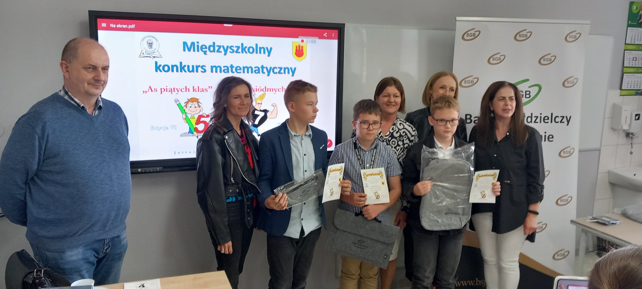 W ciągu 60 minut rozwiązywali zadania zamknięte i otwarte. Nasi uczniowie spisali się rewelacyjnie. W kategorii ,,As piątych klas” wysokie, II miejsce zajął Ruben Sobkowiak , a w kategorii ,,As siódmych klas” -Wiktoria Kasprzak – również II miejsce. Cieszymy się ogromnie z ich osiągnięć, gratulujemy i życzymy całej czwórce kolejnych sukcesów.
