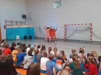 20 maja 2024r. uczniowie mieli okazję zobaczyć występ grupy artystycznej ART VOYAGE - człowieka sprężyny, uczestnika programu Mam Talent. Chętni mogli brać aktywny udział w pokazach artysty. Wszyscy bardzo miło spędzili ten czas.