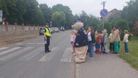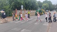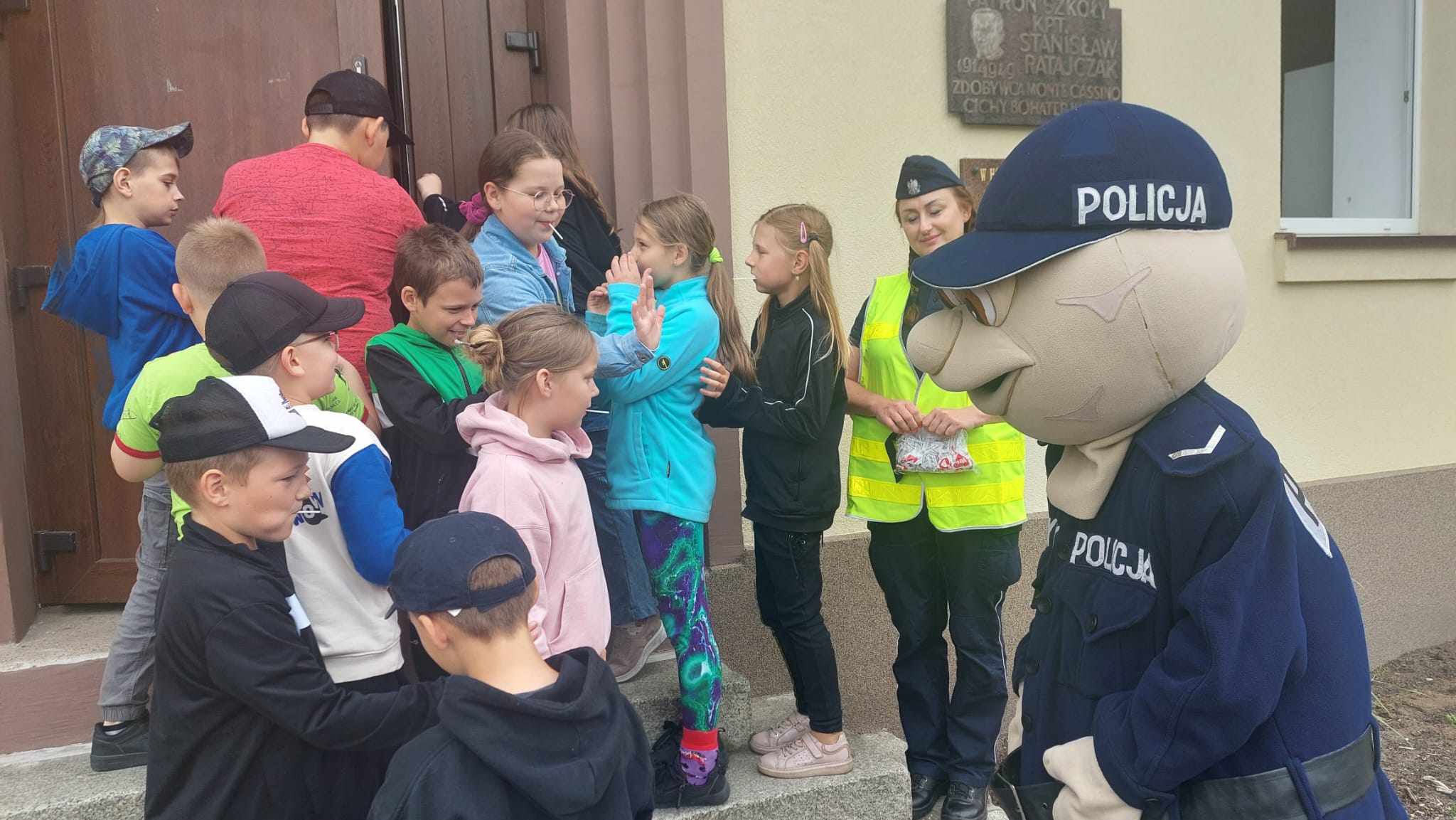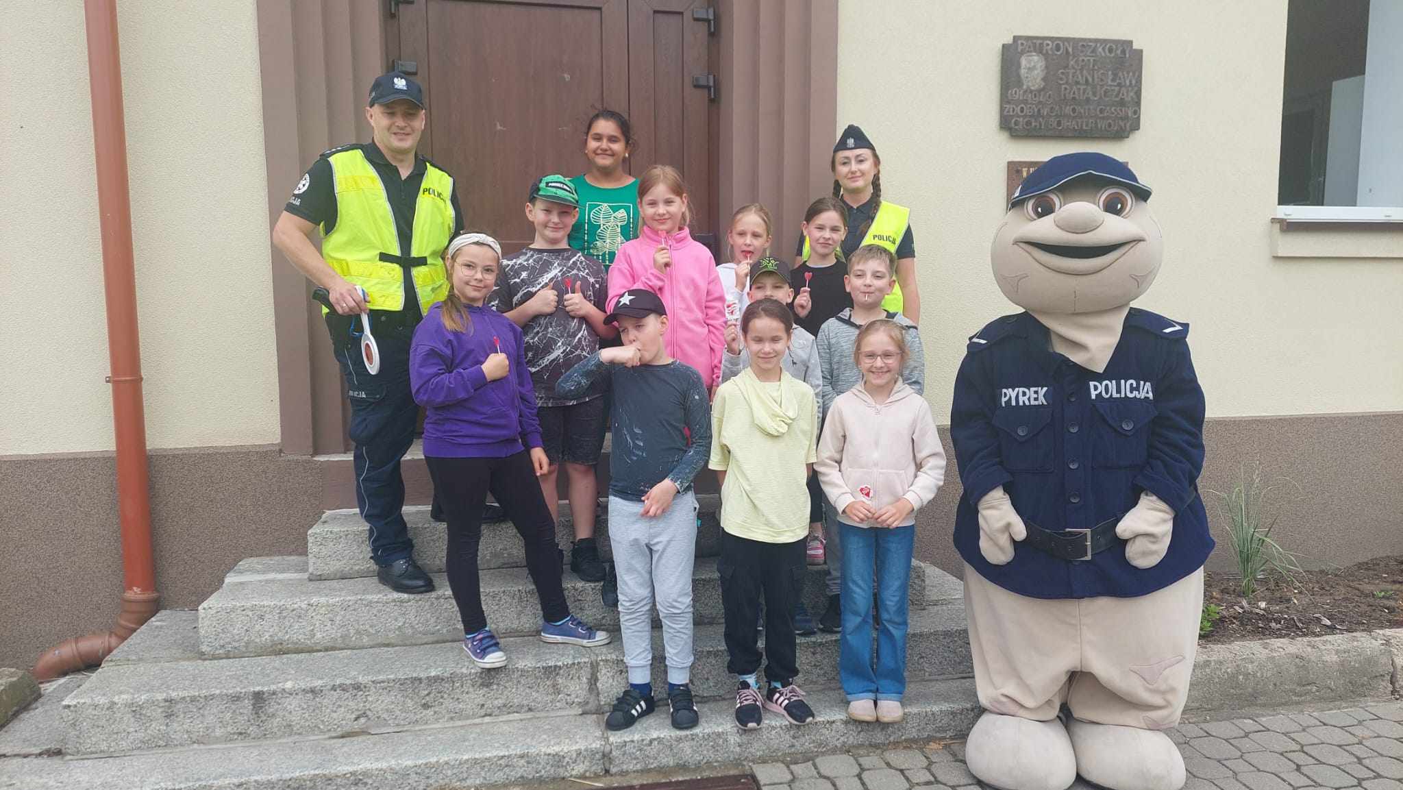W czwartek 23 maja w związku z realizacją projektu "Akademia Bezpiecznego Puchatka" zawitał do naszej szkoły Sierżant PYREK - maskotka Wielkopolskiej Policji. Wraz z policjantami z Rewiru Dzielnicowych z Jutrosina PYREK przypomniał dzieciom jak prawidłowo poruszać się na przejściu dla pieszych oraz przypomniał o innych zasadach ruchu drogowego.