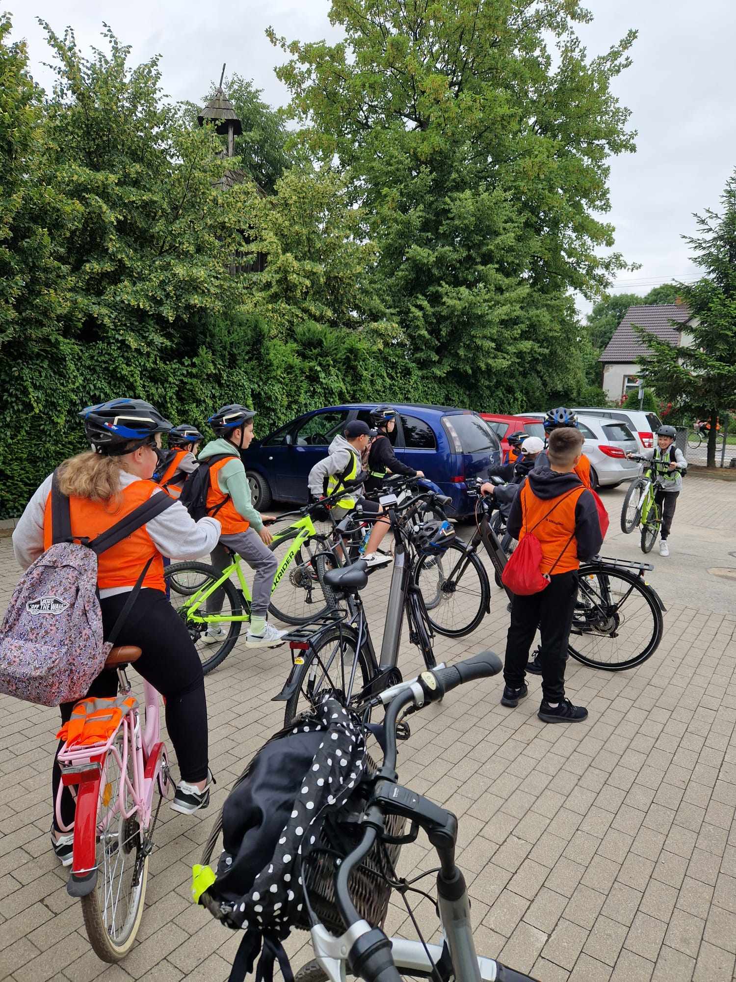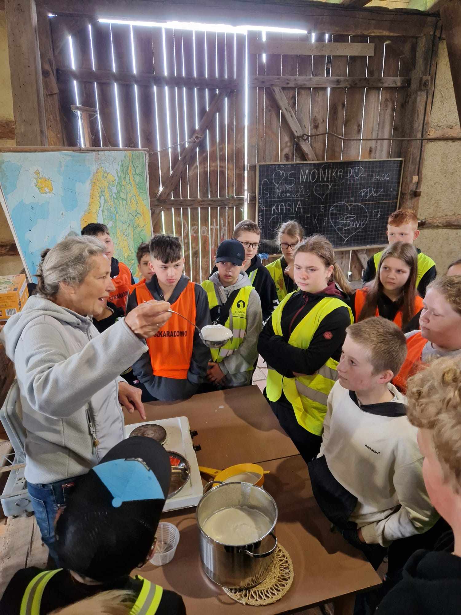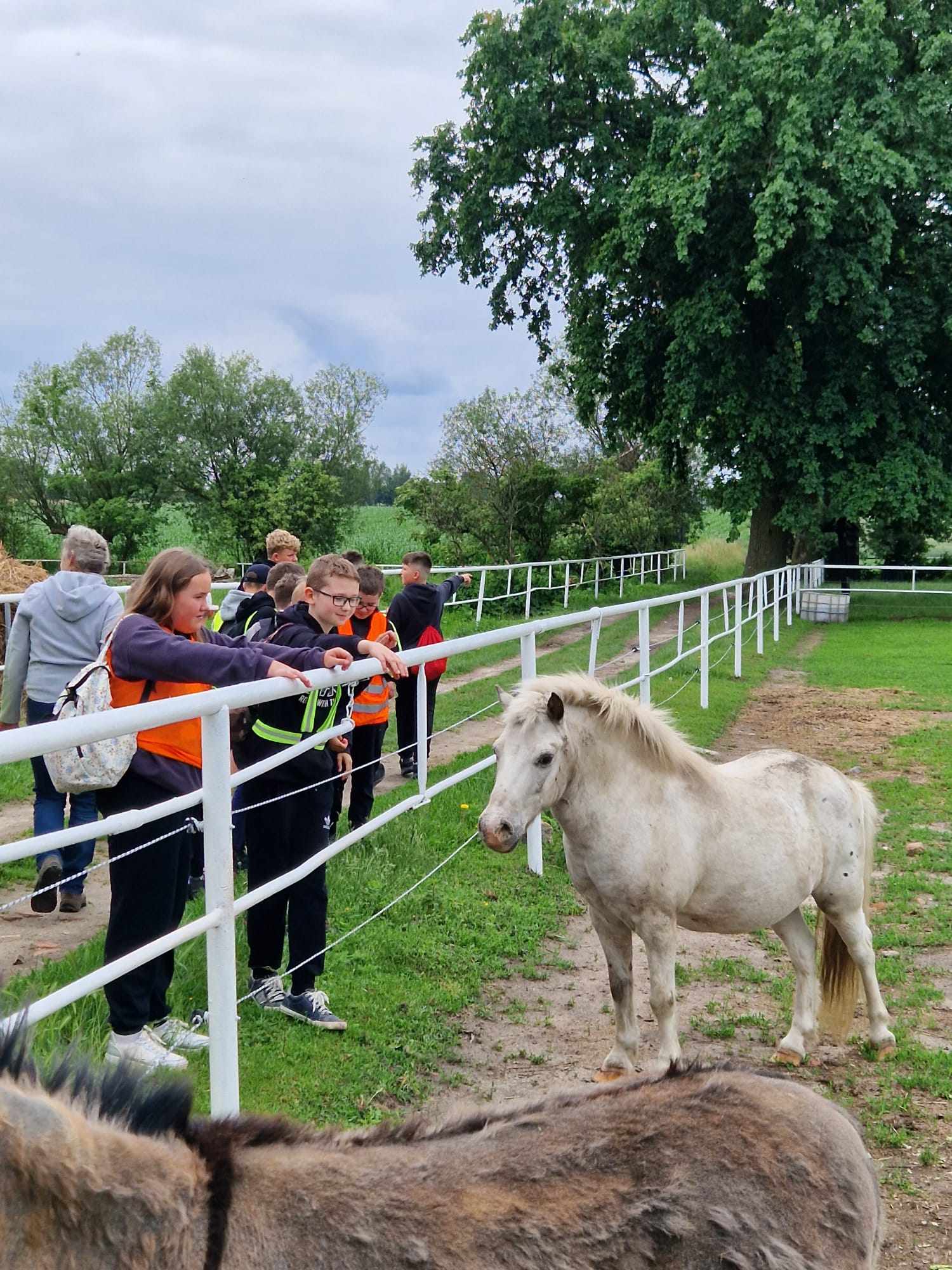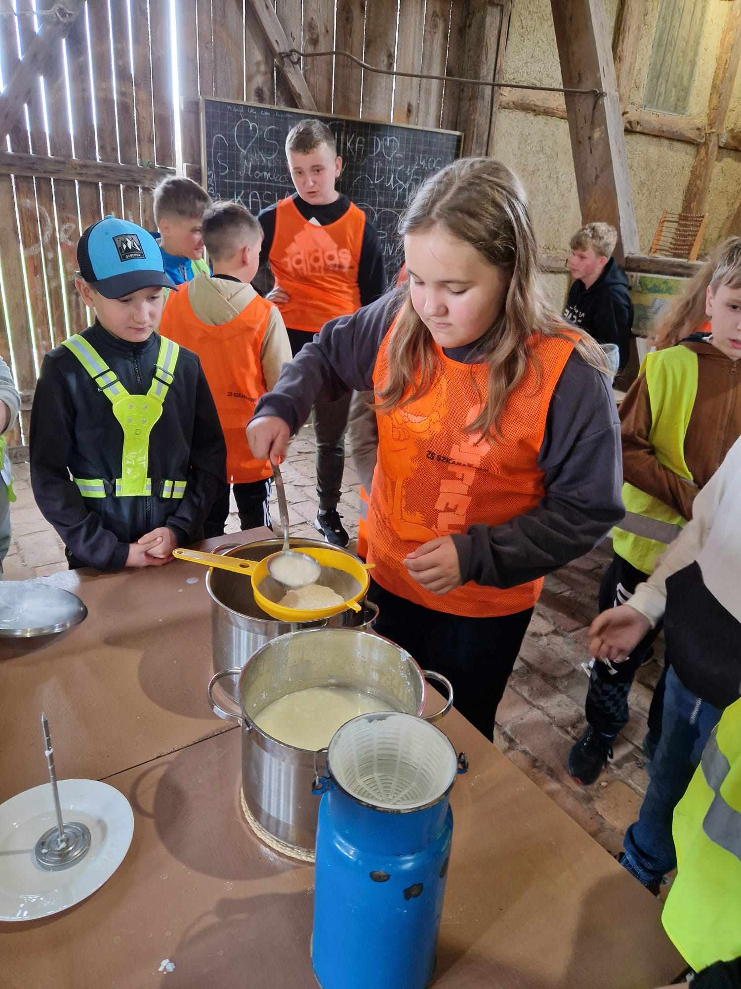 We wtorek uczniowie klas piątych integrowali się podczas wycieczki rowerowej. Dwie grupy wraz z wychowawczyniami i paniami opiekunkami udały się do Piotrkosic, gdzie odwiedziły gospodarstwo agroturystyczne "Majątek Ziemski Niwa". Uczniowie mieli okazję zobaczyć zarówno nowoczesne maszyny rolnicze jak również skansen z maszynami z dawnych lat. Pani przewodnik zapoznała nas z funkcjonowaniem gospodarstwa, a następnie zaprosiła do stodoły, która okazała się być małym muzeum. Dowiedzieliśmy się m. in jak funkcjonowała i wyglądała dawna szkoła, poznaliśmy przedmioty wykorzystywane w gospodarstwie domowym, a nawet zobaczyliśmy co znajduje się w skrzyni posagowej. Najciekawszym elementem wycieczki bez wątpienia było własnoręczne wyrabianie sera oraz masła, które następnie mogliśmy skosztować podczas wspólnego ogniska. W wyśmienitych nastrojach klasy piąte udały się w podróż powrotną, a ten wyjazd niewątpliwie zostanie w pamięci uczestników na długo.