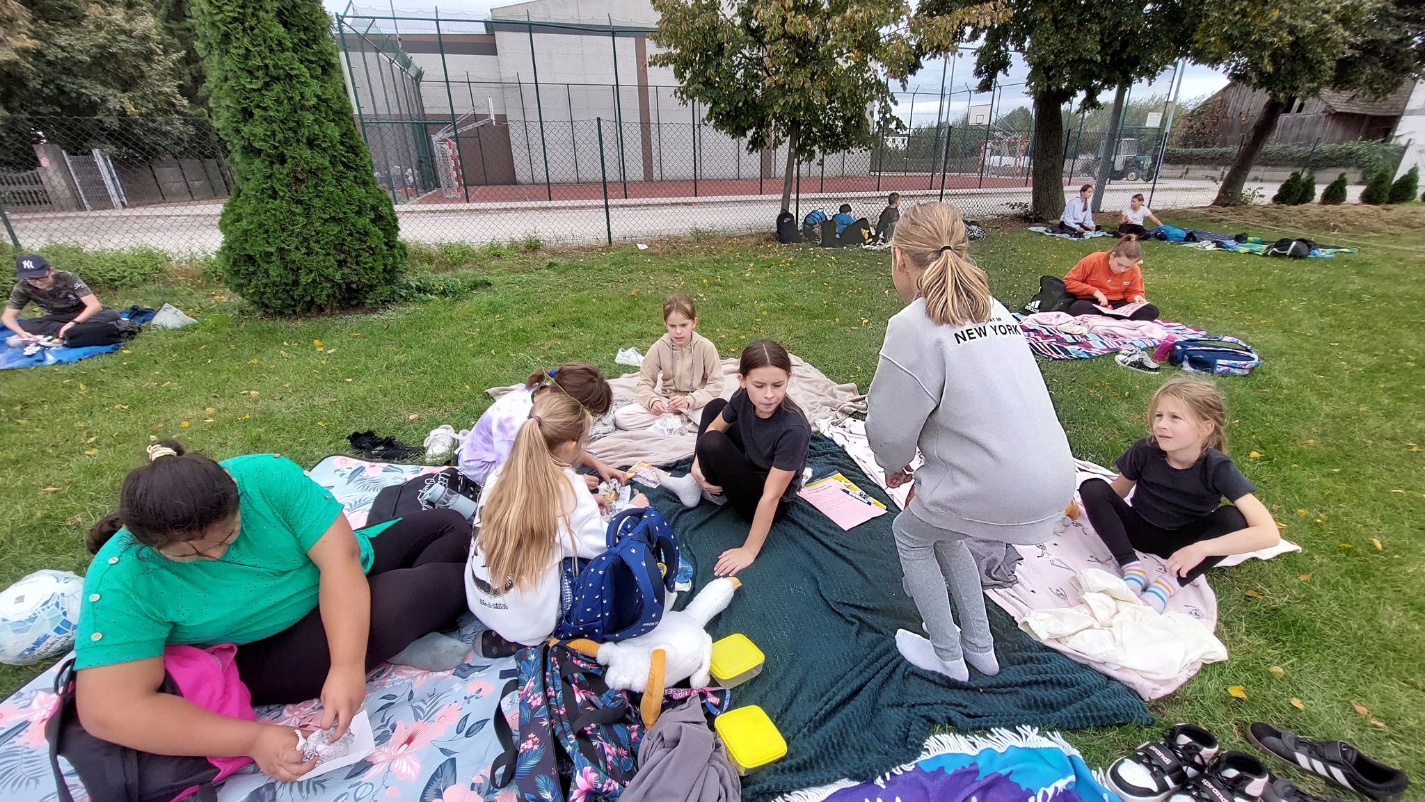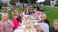 Dziś, 26 września 2024roku, w naszej szkole odbył się "V Dzień Ziemniaka". Wszyscy uczniowie naszej szkoły wraz z nauczycielami udali się na zielone boisko, aby korzystając z uroków pięknej jesieni, miło i sympatycznie spędzić czas. Na wszystkich czekało wiele niespodzianek. Były rozgrywki sportowe, wyścigi rzędów z wykorzystaniem ziemniaków, zabawy z chustą animacyjną, odbijanie ziemniaczanych pieczątek, a dla mniej aktywnych był też czas na leniuchowanie i przyjacielskie pogawędki. Po tak spędzonym czasie, na wszystkich czekała kiełbaska i pieczone ziemniaki przygotowane na grillu przez pracowników obsługi. Bardzo dziękujemy naszej Radzie Rodziców za dostarczenie dla nas pysznych kiełbasek i ziemniaczków.