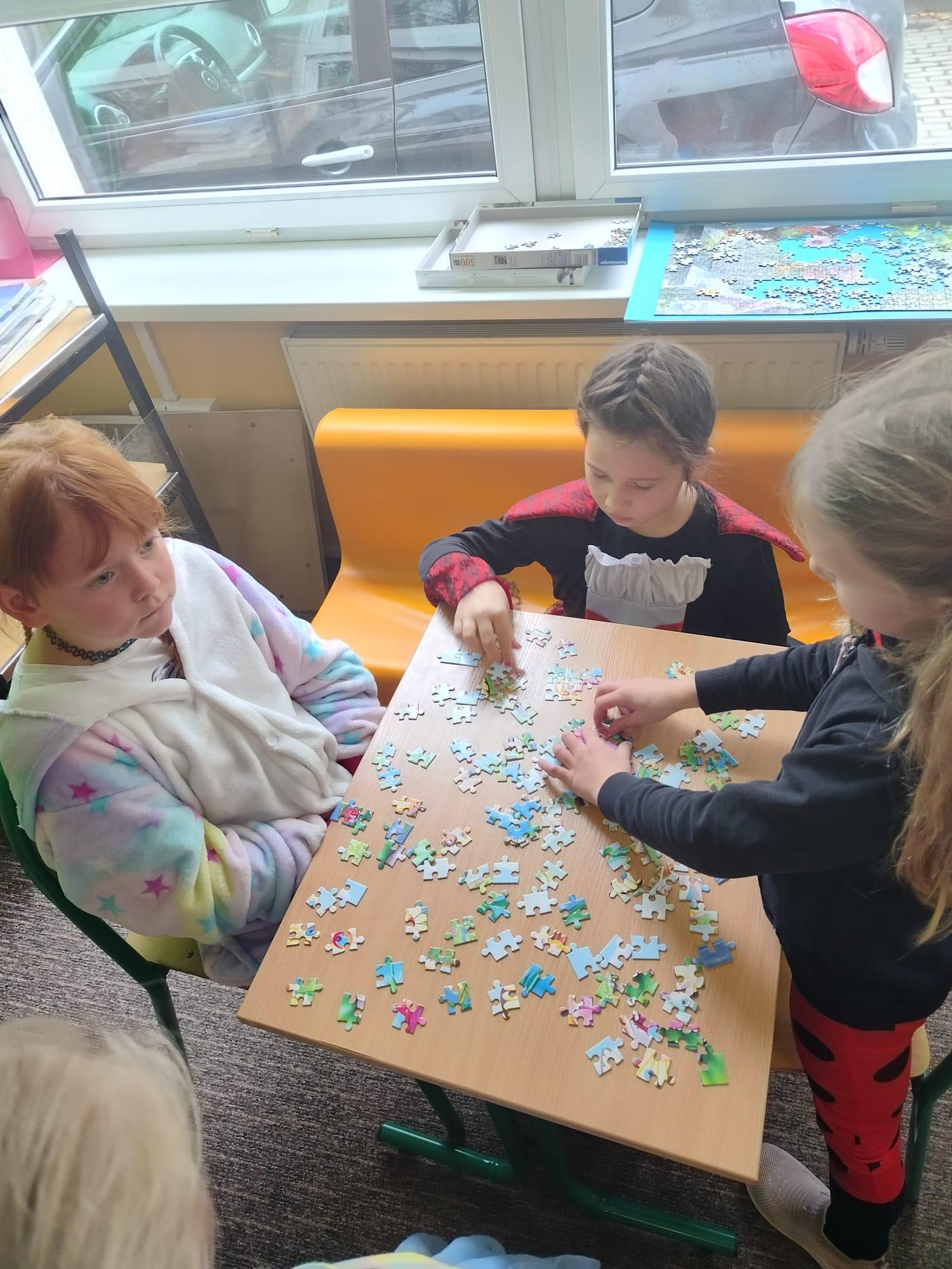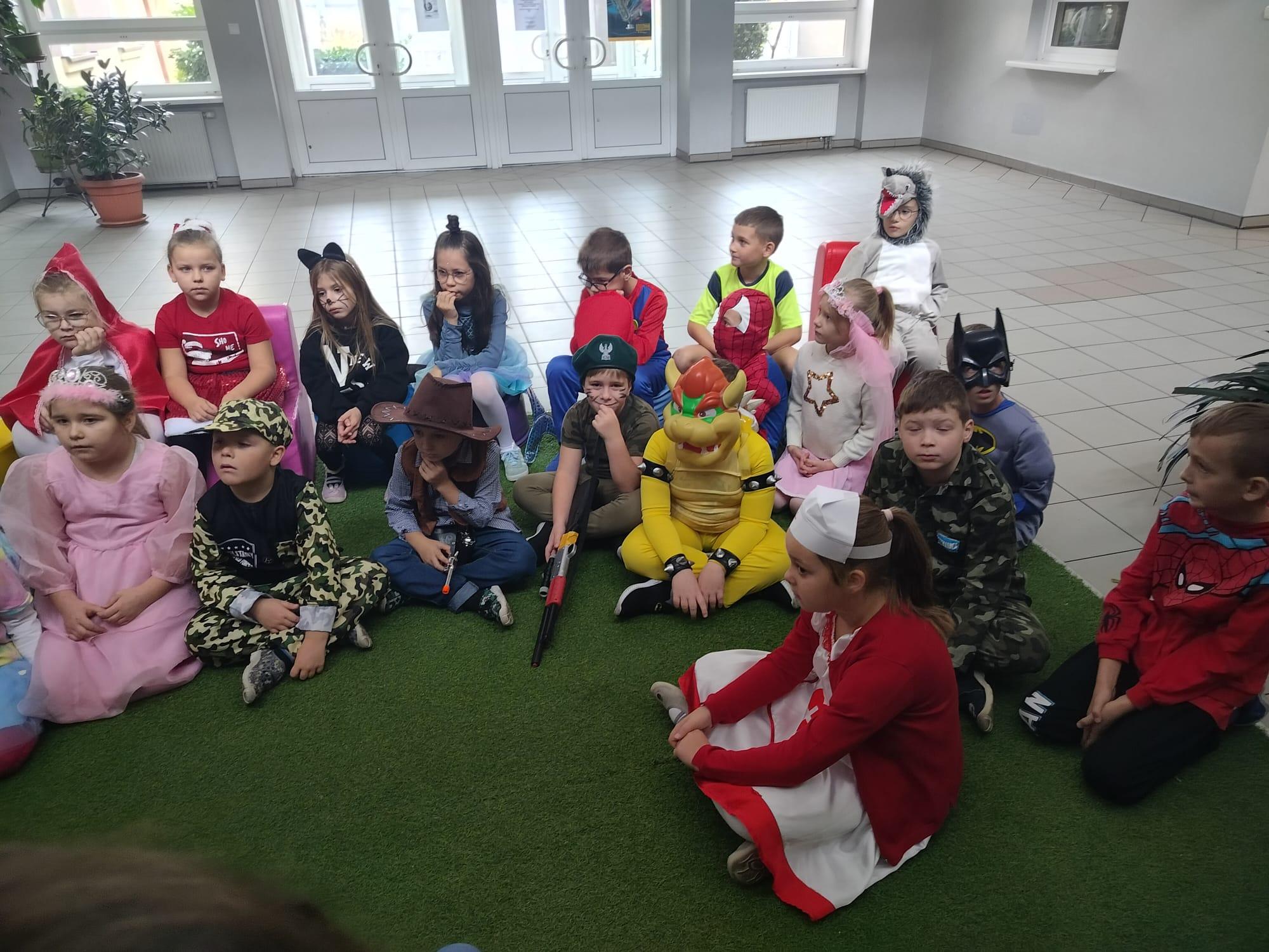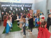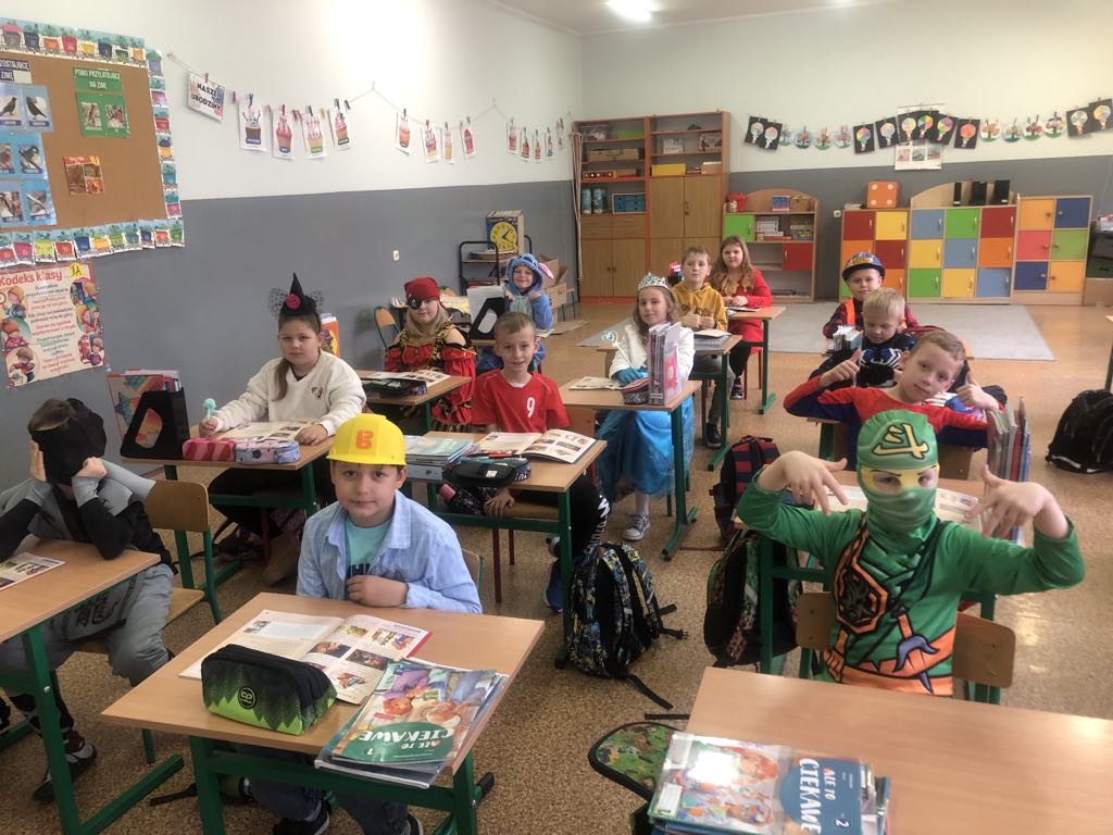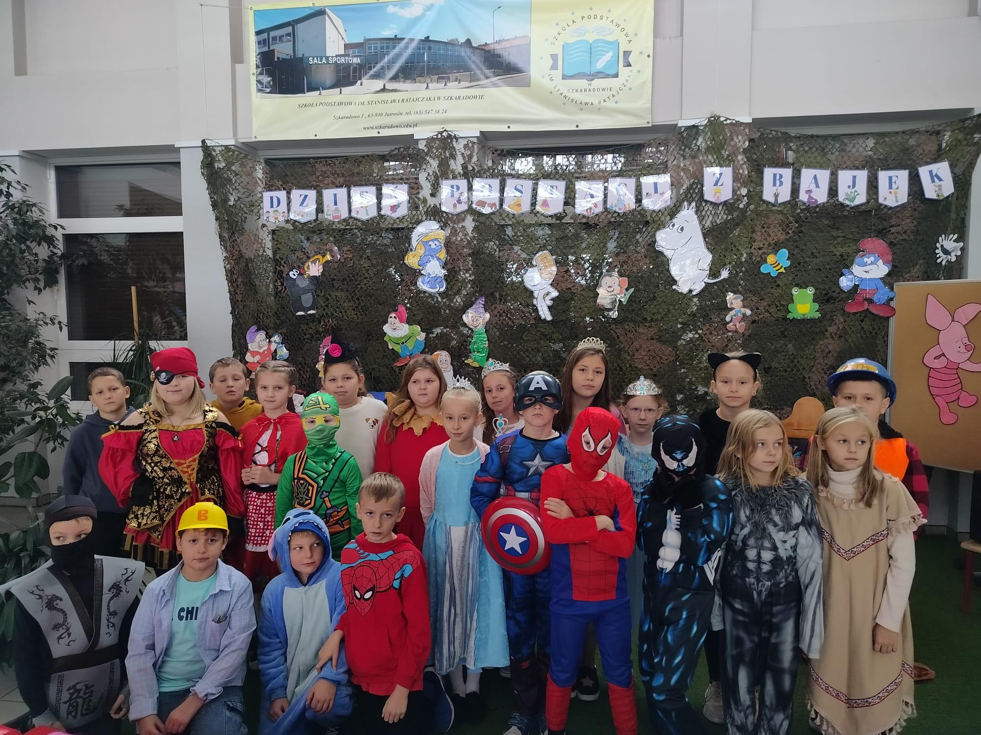 W naszej szkole dzień ten połączony z „I Dniem Nietypowego Stroju” odbył się dziś, czyli 6 listopada. Od samego rana na szkolnym korytarzu zobaczyć mogliśmy przeróżne postacie bajkowe, a wśród nich między innymi wróżki, czarownice, elfy, myszki Mini, smoki, Stich, Picachu, Shreka, Fionę, Czerwonego Kapturka, Papa Smerfa, Alvina i Wiewiórki i wiele innych kolorowych postaci. Na uczniów klas I-III oraz zaproszonych gości z zerówki czekał mini Teatrzyk Bajkowy, wesołe kolorowanki oraz wspólne zabawy przy muzyce. Dla starszych uczniów przygotowany został quiz ze znajomości bajek. Z tym zadaniem najlepiej poradziła sobie klasa VI a, zajmując 1 miejsce. Miejsce 2 zajęła klasa V, natomiast miejsce 3 klasa VII. Celem dzisiejszego spotkania było promowanie czytelnictwa, integracja zespołów klasowych oraz czerpanie radości ze wspólnych zabaw. Bardzo dziękujemy rodzicom za pomoc w zorganizowaniu przepięknych bajkowych przebrań. Już niedługo kolejne ciekawe dni.