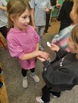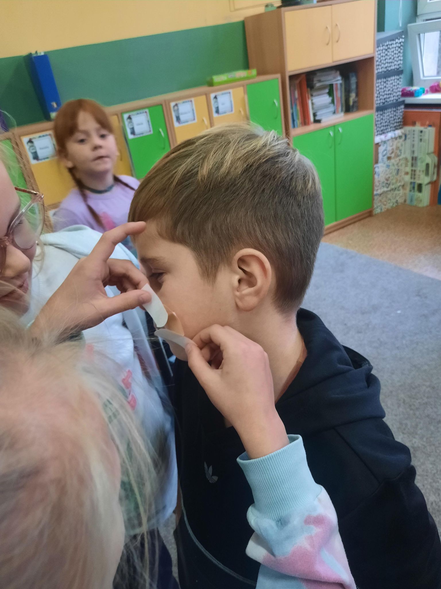 Uczniowie klasy pierwszej wykonali kolejne zadanie w ramach projektu edukacyjnego „Szlachetnie i zdrowo z małpką Iwoną". Przeprowadzone zostały zajęcia poświęcone udzielaniu pierwszej pomocy, mające na celu edukację uczniów na temat podstawowych zasad ratowania życia. Dzieci miały okazję nauczyć się, jak reagować w sytuacjach awaryjnych oraz jak prawidłowo opatrywać rany. Podczas zajęć omówiliśmy kluczowe kroki, jakie należy podjąć w przypadku zagrożenia zdrowia, takie jak zachowanie spokoju, ocenienie sytuacji i wezwanie pomocy. Uczniowie poznali także podstawową technikę ułożenia ciała w pozycji bocznej bezpiecznej osobie przytomnej samodzielnie oddychającej oraz metody opatrywania ran, udzielania pomocy podczas krwawienia z nosa czy omdlenia. Dzięki praktycznym ćwiczeniom dzieci mogły lepiej zrozumieć, jak ważna jest umiejętność udzielania pierwszej pomocy. Uczestnicy byli bardzo zaangażowani i wykazali się dużą wiedzą, co napawa nas optymizmem na przyszłość. Mam nadzieję, że zdobyta wiedza pomoże uczniom w sytuacjach kryzysowych, a także wpłynie na ich odpowiedzialność za siebie i innych.