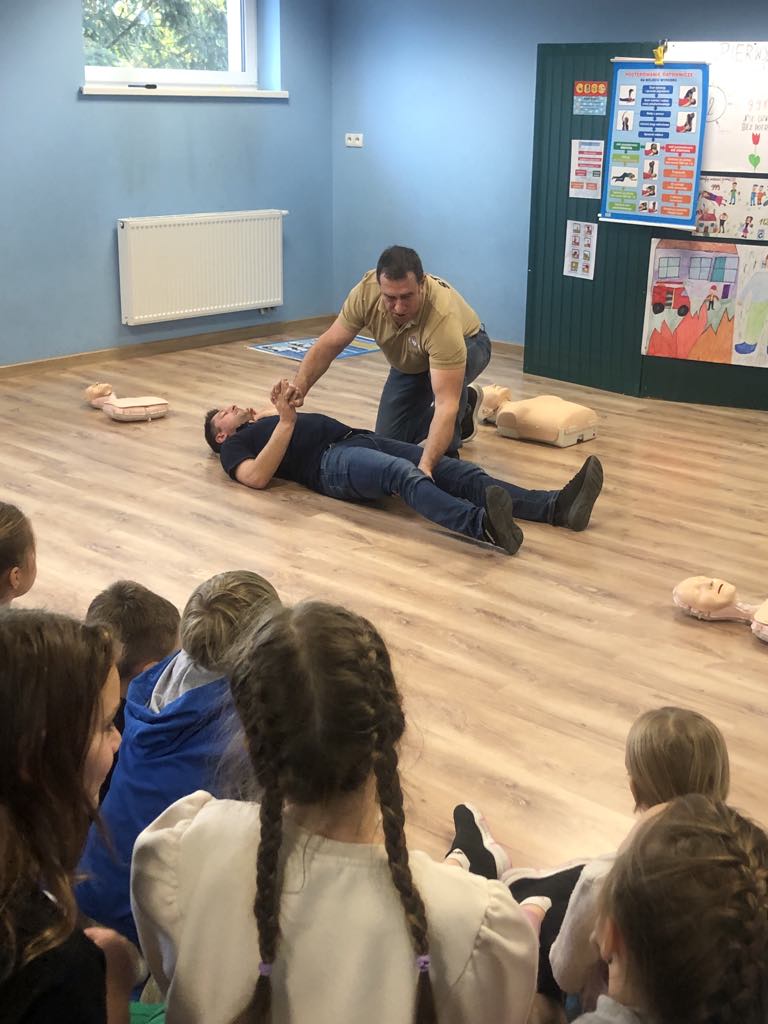 W piątek, 15 listopada br., nasi uczniowie z klas 1-3 uczestniczyli w zajęciach z udzielania pierwszej pomocy. Dzięki wizycie strażaków panów Ryszarda Kantorskiego i Michała Barteczki , dzieci uzyskały fachową wiedzę i umiejętności. Bardzo dziękujemy za wizytę.