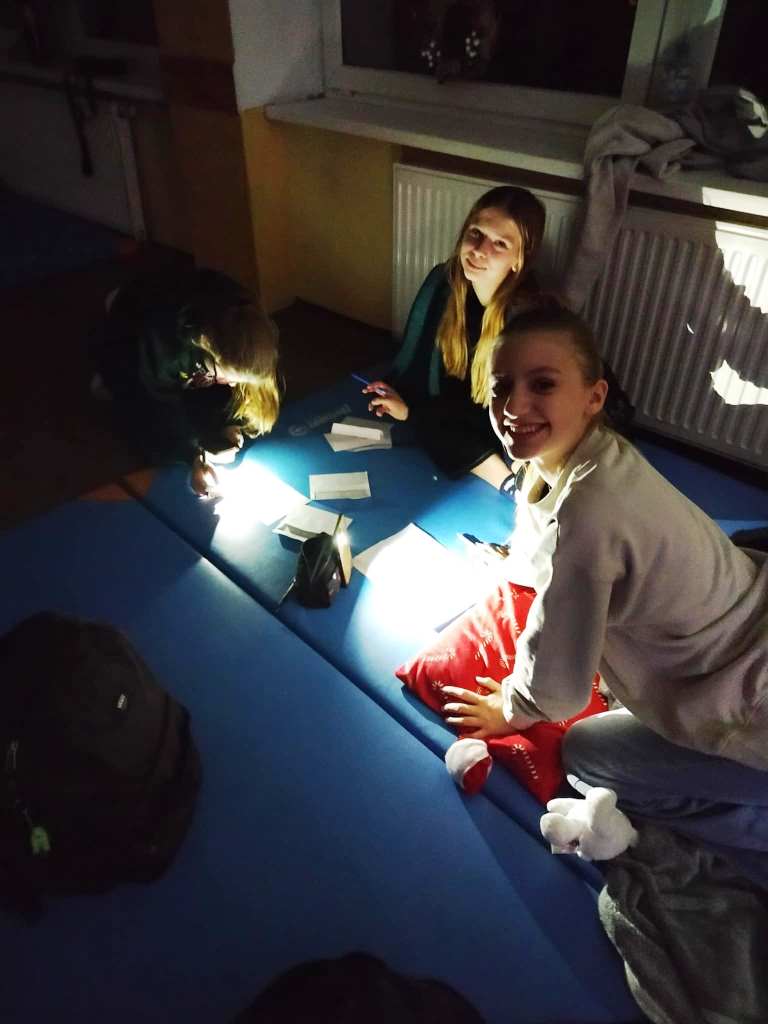 6 grudnia w naszej szkole odbył się niezapomniany Wieczór Mikołajkowy dla uczniów klas szóstych. Wieczór rozpoczął się od niezwykle emocjonującej gry – w ciemności, przy blasku latarek, uczniowie poszukiwali ukrytych kopert z zadaniami. Każda grupa musiała wykonać wyznaczone zadania, a rywalizacja była zacięta! Najszybsi i najbardziej kreatywni zdobyli nagrody, co wywołało ogromne emocje i radość. Po wysiłku umysłowym nadszedł czas na zasłużony odpoczynek i poczęstunek. Wspólnie zjedliśmy pyszną pizzę, która dodała wszystkim energii. Resztę wieczoru spędziliśmy na grach i zabawach integracyjnych, które jeszcze bardziej zacieśniły relacje między uczniami.