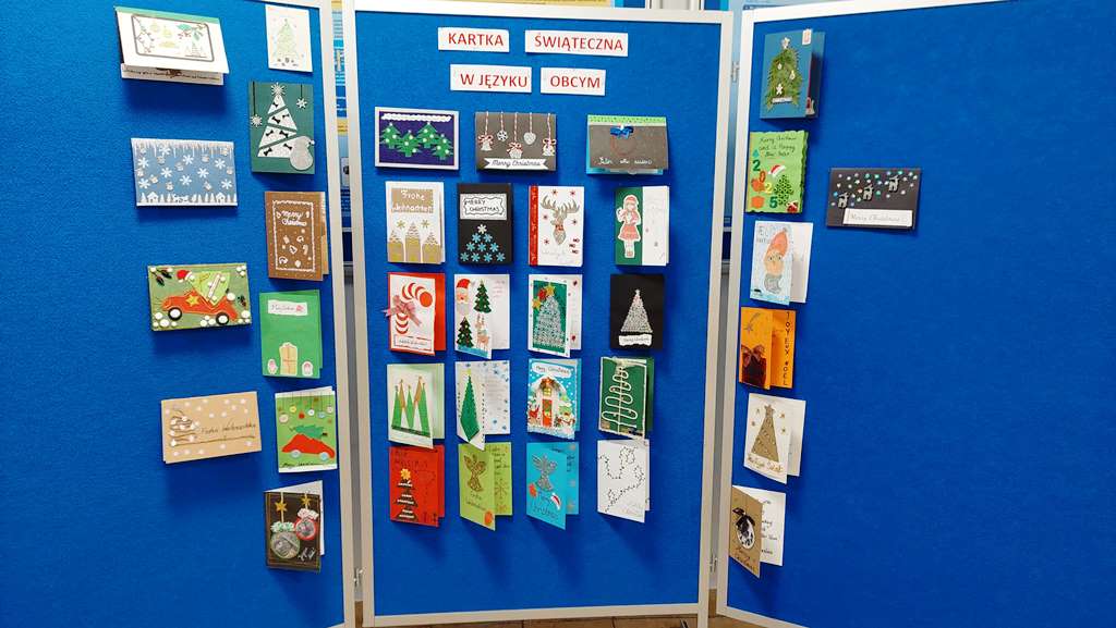 W naszej szkole odbył się konkurs na kartkę świąteczną w języku obcym. Wpłynęło ponad 40 kartek, co sprawiło, że jury miało ciężki wybór, gdyż wszystkie prace były pięknie wykonane.