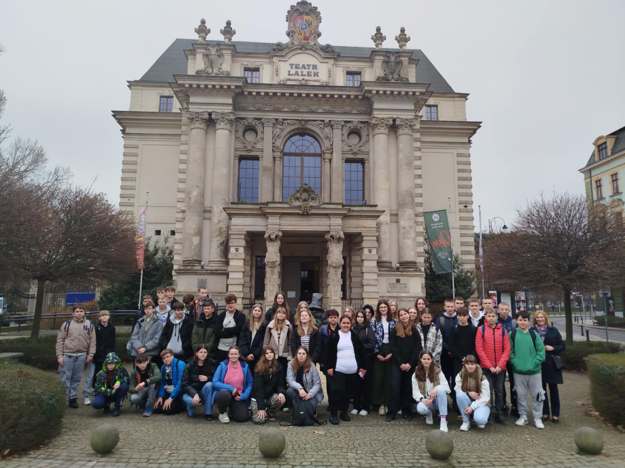 24 marca uczniowie klas 7 i 8 wybrali się na wyjątkową wycieczkę do Wrocławskiego Teatru Lalek, aby obejrzeć spektakl "Zemsta" na podstawie komedii Aleksandra Fredry. Sztuka, mimo że napisana niemal 200 lat temu, okazała się niezwykle aktualna i zabawna. Uczniowie z zaciekawieniem śledzili perypetie bohaterów, a humorystyczne dialogi i dynamiczna gra aktorów sprawiły, że spektakl dostarczył wszystkim wielu emocji. Po spektaklu uczniowie mieli okazję zwiedzić malownicze centrum Wrocławia i spędzić wspólnie czas. Wycieczka była nie tylko świetną lekcją literatury, ale także okazją do integracji i kulturalnego doświadczenia na najwyższym poziomie. Z niecierpliwością czekamy na kolejne teatralne wyprawy!