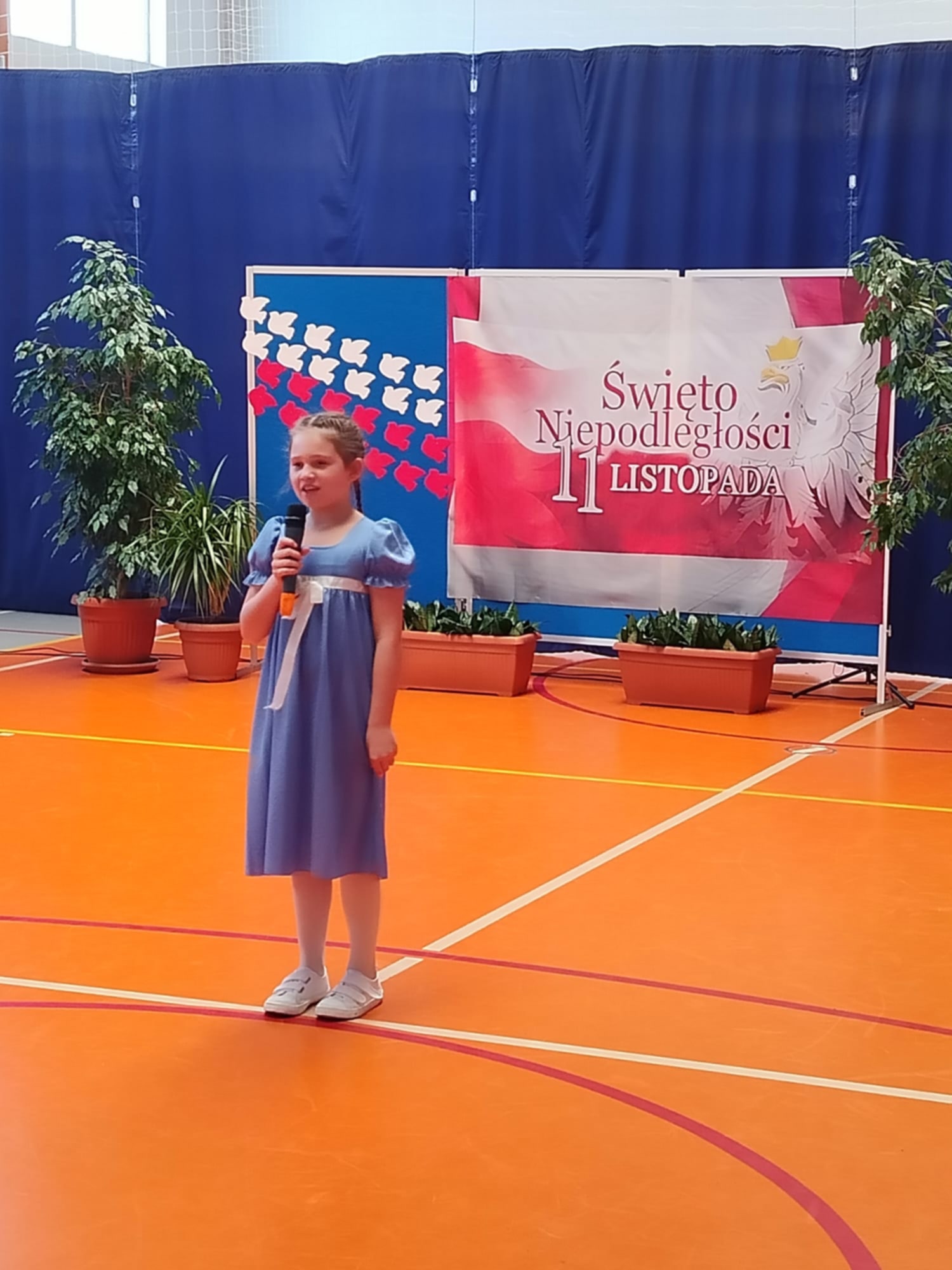 Z okazji Narodowego Święta Niepodległości uczniowie klas I, II i III wraz ze swoimi wychowawczyniami oraz Samorządem Uczniowskim przygotowali uroczystą akademię upamiętniającą to ważne wydarzenie w historii naszego kraju. Podczas uroczystości o symbolicznej godzinie 11:11 cała społeczność szkolna zaśpiewała Mazurek Dąbrowskiego, włączając się tym samym do ogólnopolskiej akcji „Szkoła do hymnu”. Następnie uczniowie przypomnieli drogę Polaków do wolności, recytowali wiersze patriotyczne i śpiewali pieśni narodowe oraz wykonali układy taneczne, tworząc podniosłą i wzruszającą atmosferę. Podczas akademii ogłoszony został werdykt Patriotycznego Konkursu Recytatorskiego, w którym udział wzięły uczennice z klas I, II i III. Przewodnicząca Rady Rodziców, pani Marta Rajkiewicz wraz z panią dyrektor wręczyły nagrody ufundowane przez Radę Rodziców oraz pamiątkowe dyplomy. Z okazji święta przedstawiciele społeczności szkolnej udali się również na grób patrona szkoły, gdzie zapalili znicz jako wyraz pamięci i wdzięczności za jego zasługi dla ojczyzny.