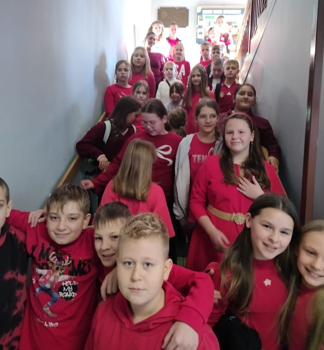 19 listopada uczniowie i nauczyciele Szkoły Podstawowej w Szkaradowie aktywnie włączyli się w finałową akcję ogólnopolskiej Kampanii Dzieciństwo bez przemocy. Tego dnia cała społeczność szkolna założyła czerwony element stroju, symbol solidarności z dziećmi doświadczającymi przemocy oraz wyraz wsparcia dla działań profilaktycznych.