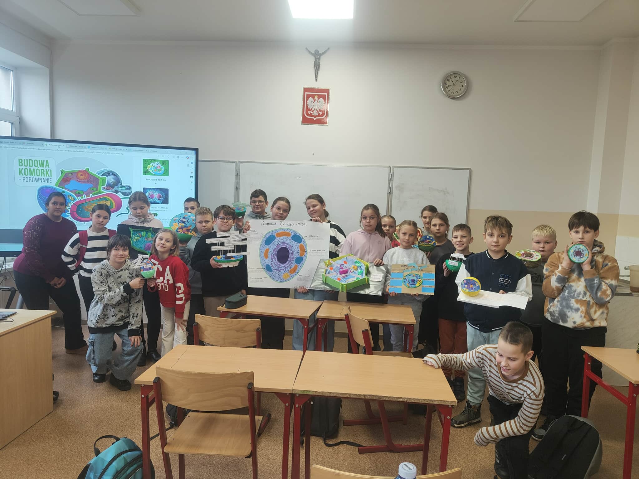 Chętni uczniowie klasy V podjęli się dodatkowego zadania i w domu wykonali modele komórek roślinnych i zwierzęcych. Pracy było naprawdę wiele, a efekty okazały się imponujące! Wszystkie wykonane modele zostały zaprezentowane podczas lekcji biologii w szkole. Uczniowie wykazali się ogromną starannością i pomysłowością, wykorzystując różnorodne materiały, aby jak najwierniej odwzorować budowę komórki. Dzięki temu mogli utrwalić wiedzę w twórczy i praktyczny sposób. Brawo dla wszystkich, którzy podjęli wyzwanie i włożyli tyle wysiłku w swoje projekty!
