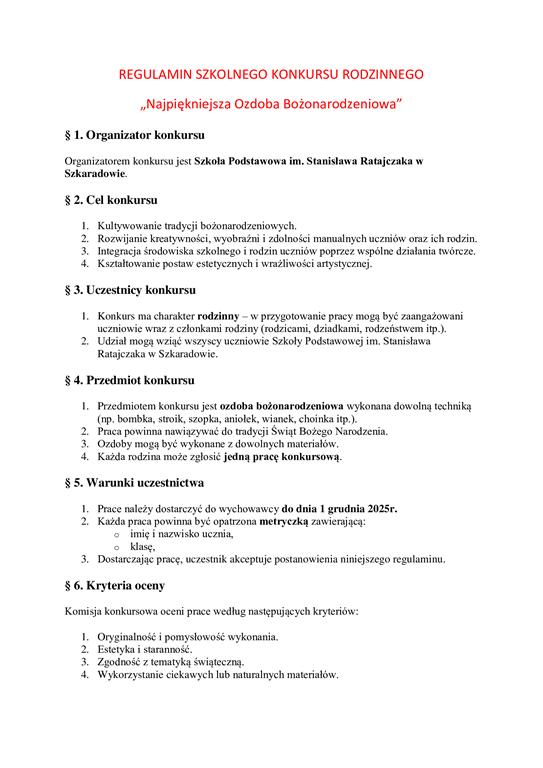 Szkolny Konkurs Rodzinny "Najpiękniejsza Ozdoba Bożonarodzeniowa".