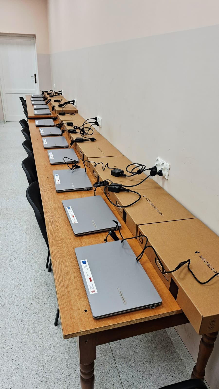 W ostatnim czasie do naszej szkoły dotarło 16 laptopów, 9 tabletów oraz 5 laptopów przeglądarkowych wyposażonych w niezbędne oprogramowanie. Sprzęt został pozyskany w ramach projektów realizowanych z Krajowego Planu Odbudowy.