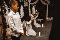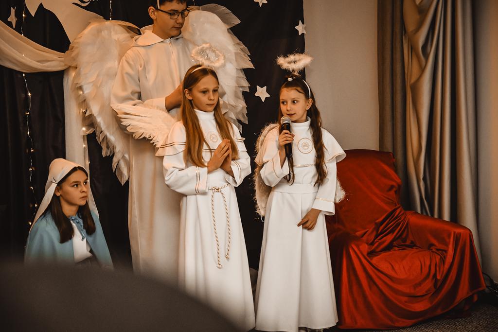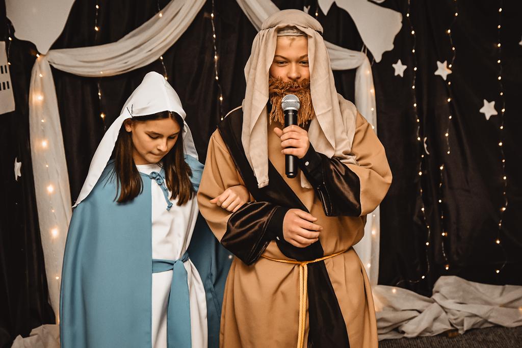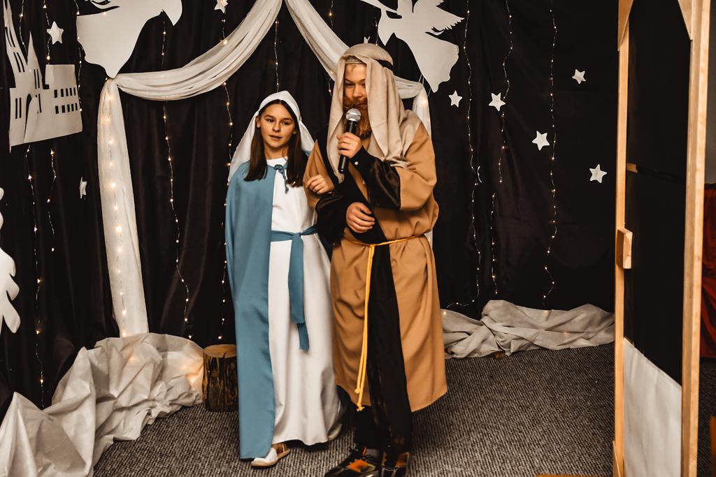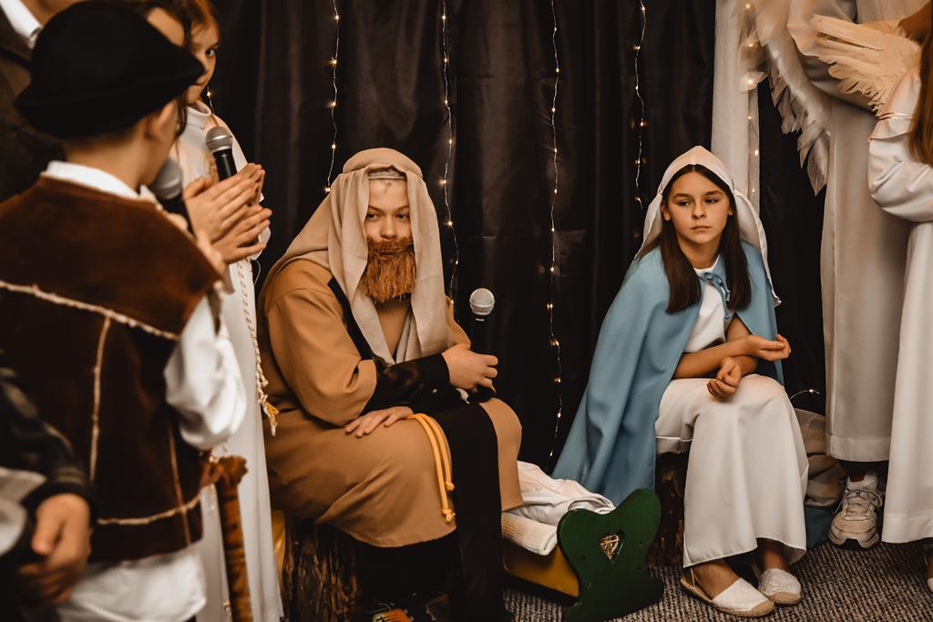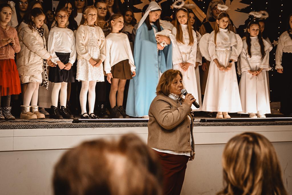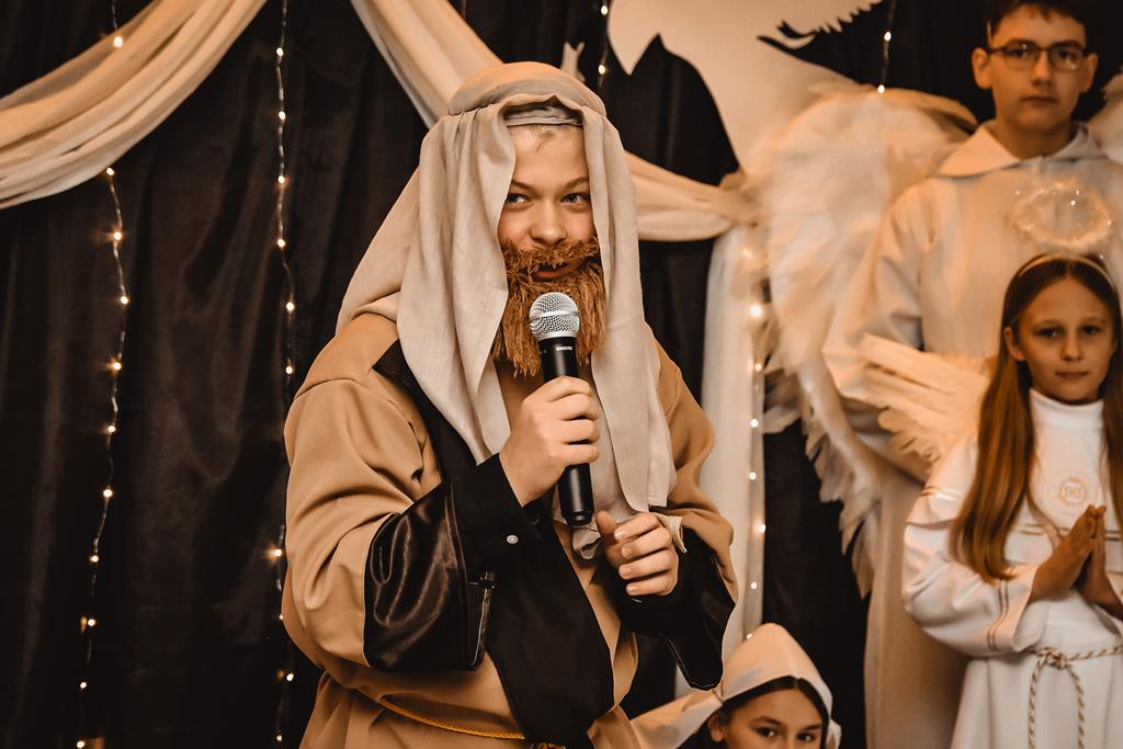 W niedzielne popołudnie, 25 stycznia, na sali w Szkaradowie odbyło się wyjątkowe przedstawienie jasełkowe przygotowane przez uczniów i nauczycieli naszej szkoły. W wydarzeniu wzięło udział blisko 100 uczniów, którzy z ogromnym zaangażowaniem zaprezentowali historię narodzin Jezusa. Barwne stroje, piękne dekoracje oraz wzruszające występy młodych aktorów stworzyły niezwykłą i podniosłą atmosferę. Przedstawienie zgromadziło liczną publiczność – mieszkańców Szkaradowa i okolic, dla których wydarzenie było okazją do wspólnego przeżywania bożonarodzeniowej tradycji. Po zakończeniu jasełek wszyscy zebrani wspólnie śpiewali kolędy, co jeszcze bardziej zintegrowało lokalną społeczność i podkreśliło rodzinny charakter spotkania. Fotorelacja wykonana została przez Panią Jowitę Maryniak. Rodzice przygotowali pyszne ciasta, które z apetytem zostały zjedzone przez przybyłych widzów. Serdecznie dziękujemy Wszystkim za zaangażowanie.