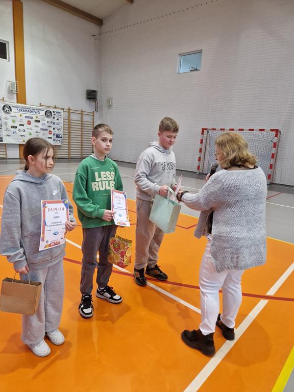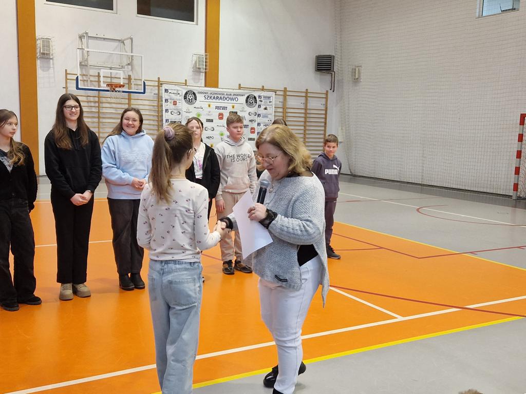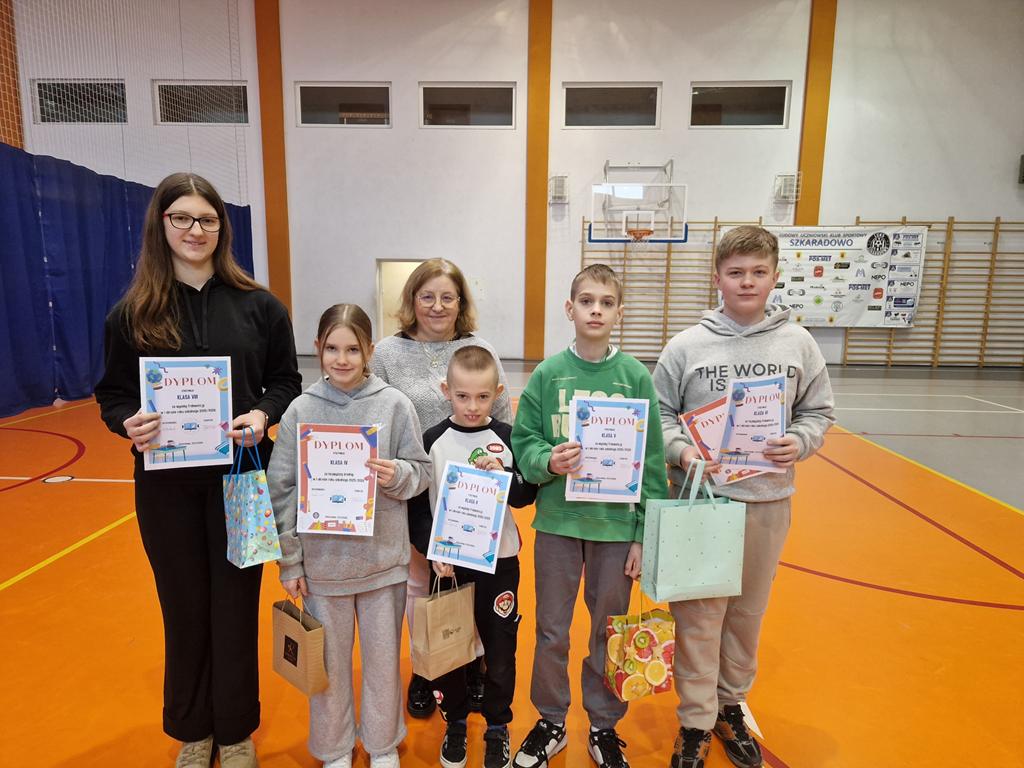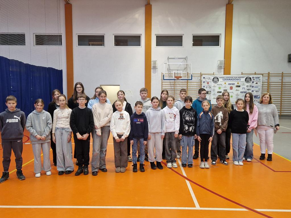 Dnia 23 stycznia, odbył się apel podsumowujący pierwszy okres roku szkolnego 2025/2026. Podczas spotkania pani dyrektor przedstawiła wyniki nauczania, osiągnięcia uczniów oraz podsumowała frekwencję. Szczególne gratulacje skierowała do 28 uczniów, którzy uzyskali średnią ocen powyżej 4,75 i zostali wyróżnieni za systematyczną pracę oraz bardzo dobre wyniki w nauce. Wyróżniono także 17 uczniów z 100% frekwencją, doceniając ich regularną obecność na zajęciach. Najwyższą frekwencję wśród klas osiągnęły klasa VI, na drugim miejscu uplasowała się klasa VIII, natomiast trzecie miejsce zajęły klasy II oraz V. Podczas apelu nagrodzono również klasy z najwyższą średnią ocen. Pierwsze miejsce zajęła klasa IV, drugie miejsce klasa V, a trzecie miejsce klasa VI. Apel był okazją do podsumowania dotychczasowych sukcesów oraz zmotywowania całej społeczności szkolnej do dalszej pracy w kolejnym okresie nauki.