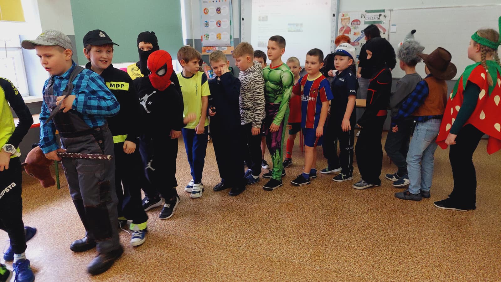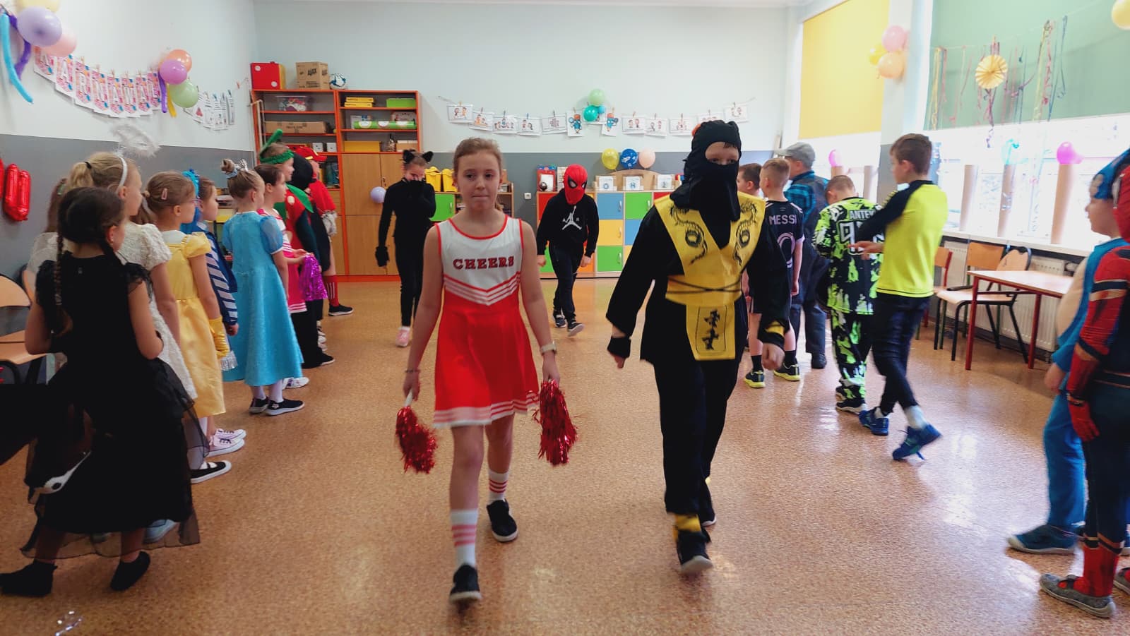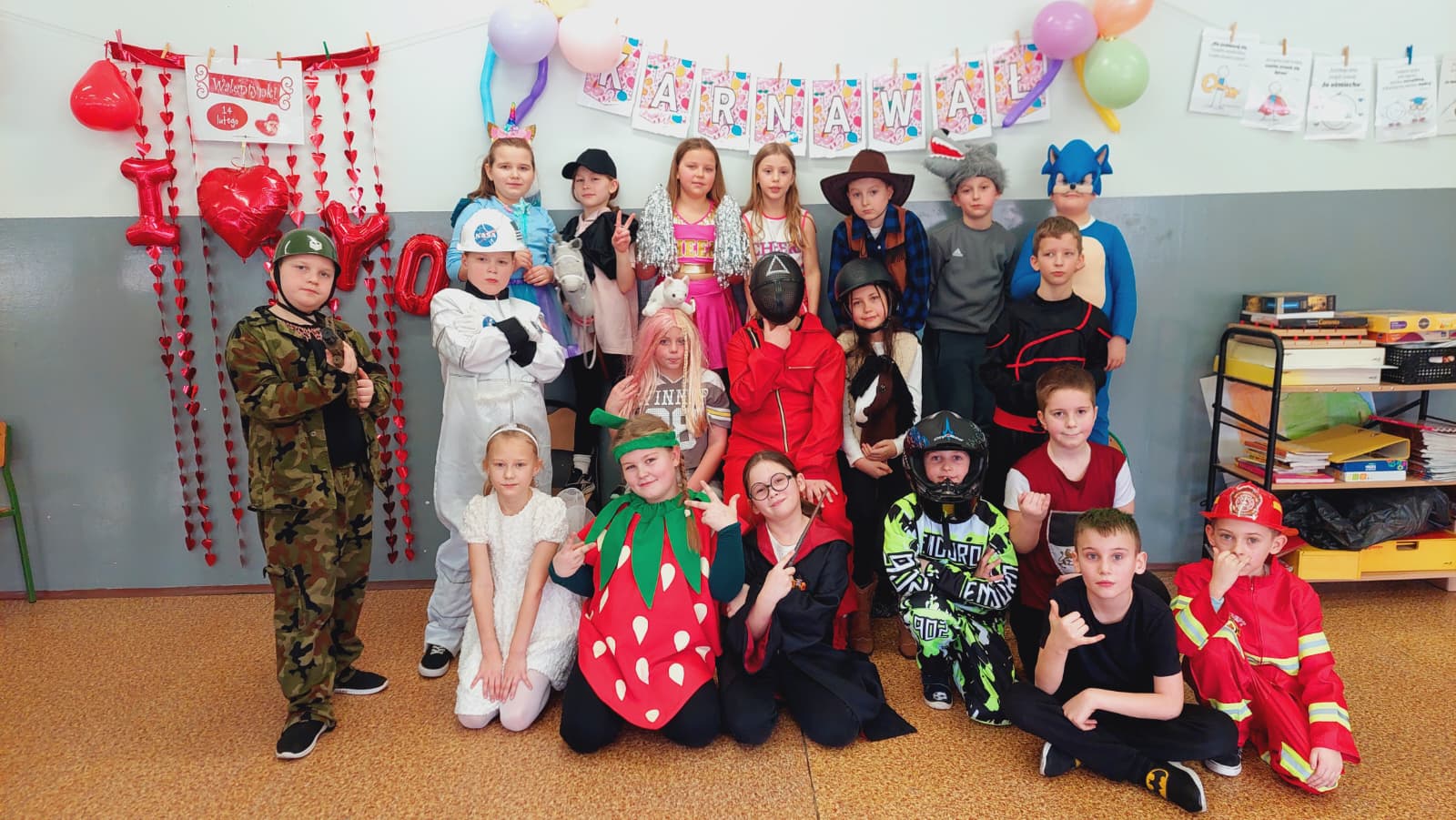 Dnia 12 lutego w klasach 1–3 odbył się bal przebierańców. Uczniowie przyszli w pięknych i pomysłowych strojach, a sala była pełna muzyki, tańca i radosnej atmosfery. Dzieci chętnie brały udział w zabawach i konkursach, a wspólne świętowanie sprawiło wszystkim wiele radości. To był wyjątkowy dzień pełen uśmiechu i dobrej zabawy.