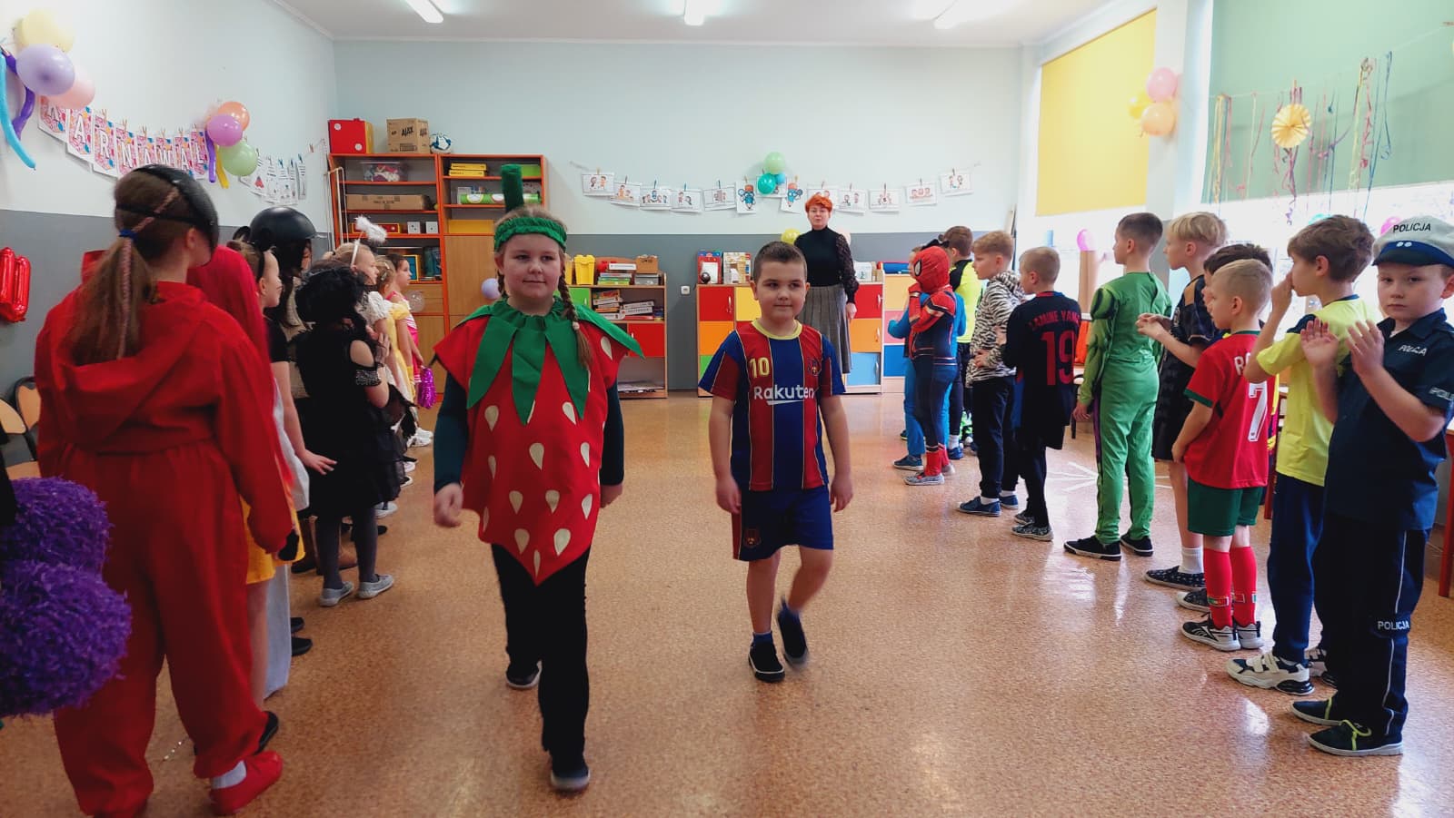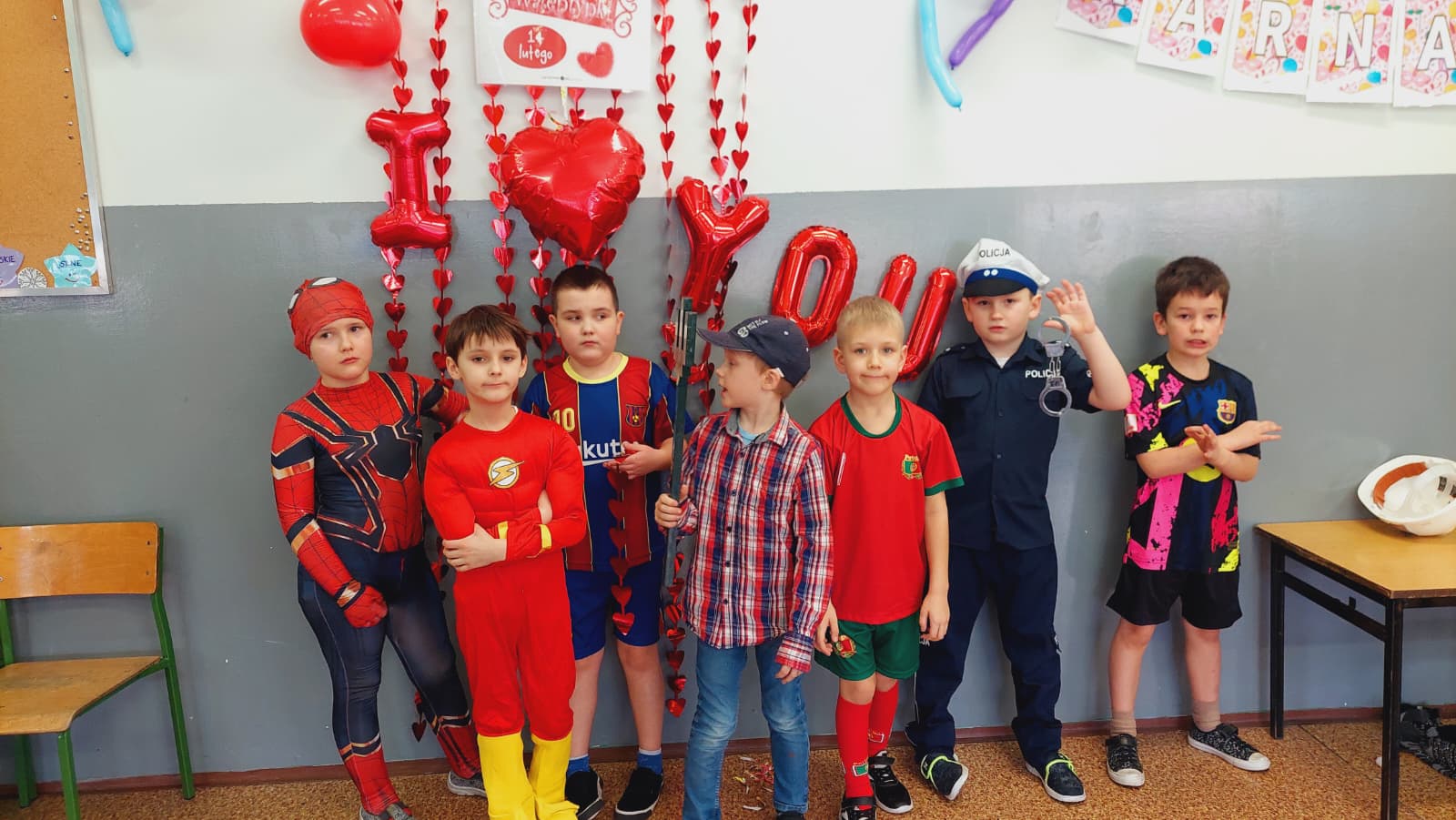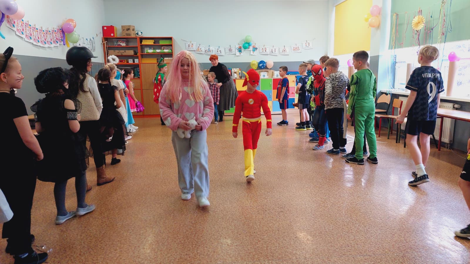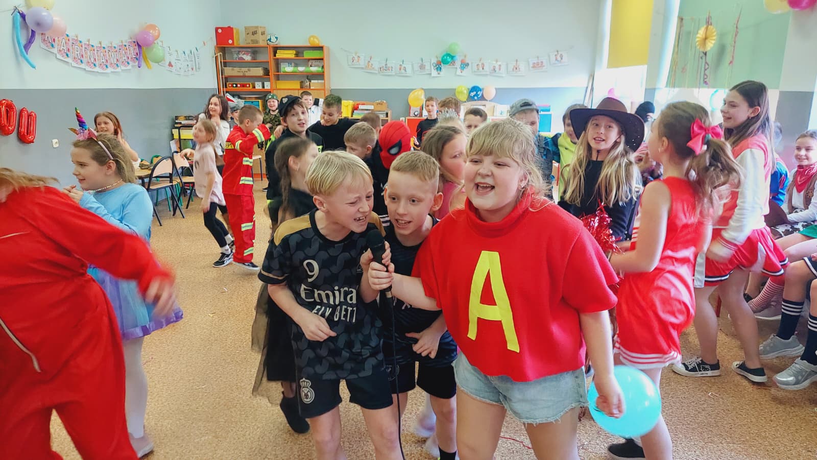 Dnia 12 lutego w klasach 1–3 odbył się bal przebierańców. Uczniowie przyszli w pięknych i pomysłowych strojach, a sala była pełna muzyki, tańca i radosnej atmosfery. Dzieci chętnie brały udział w zabawach i konkursach, a wspólne świętowanie sprawiło wszystkim wiele radości. To był wyjątkowy dzień pełen uśmiechu i dobrej zabawy.