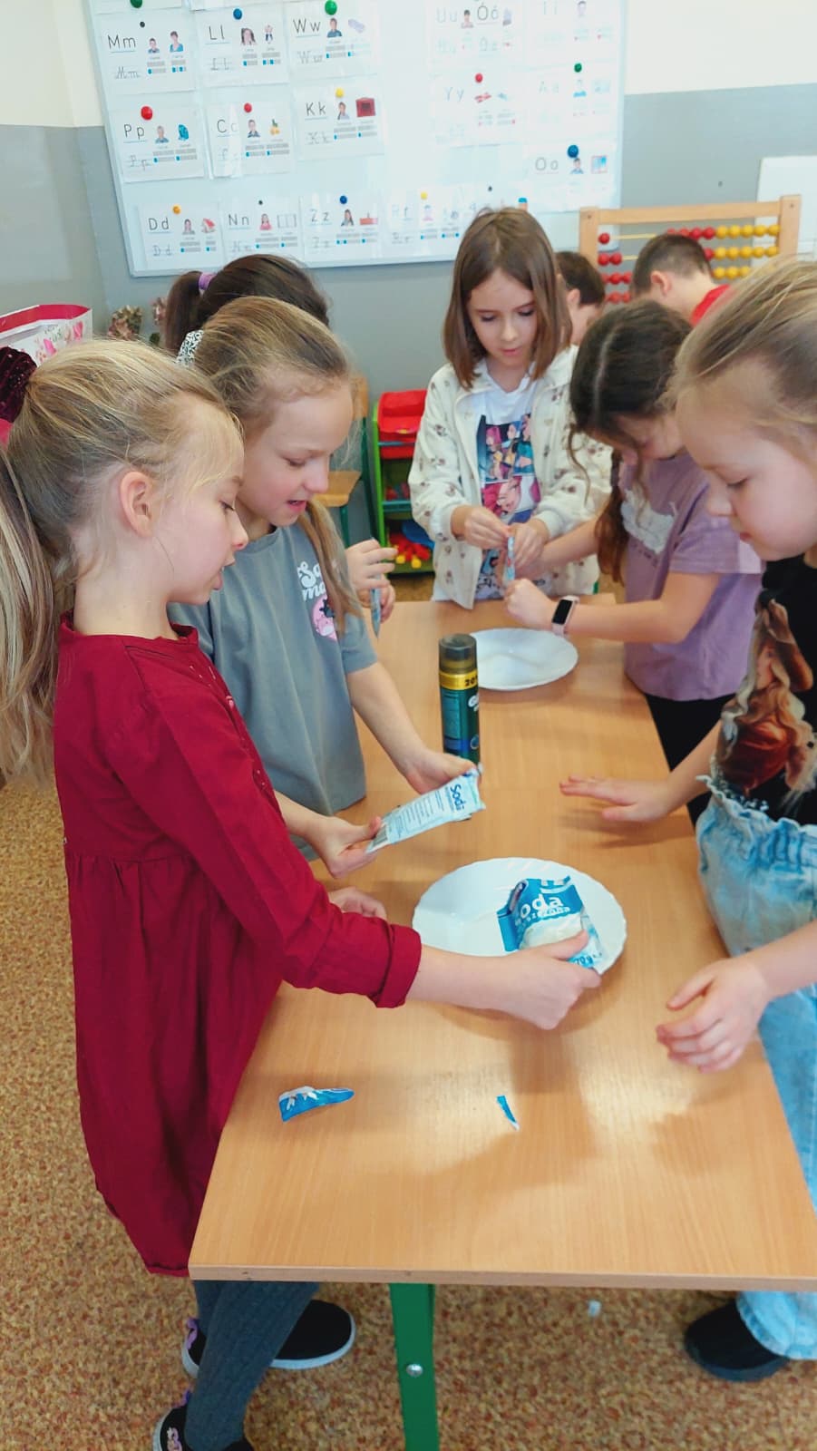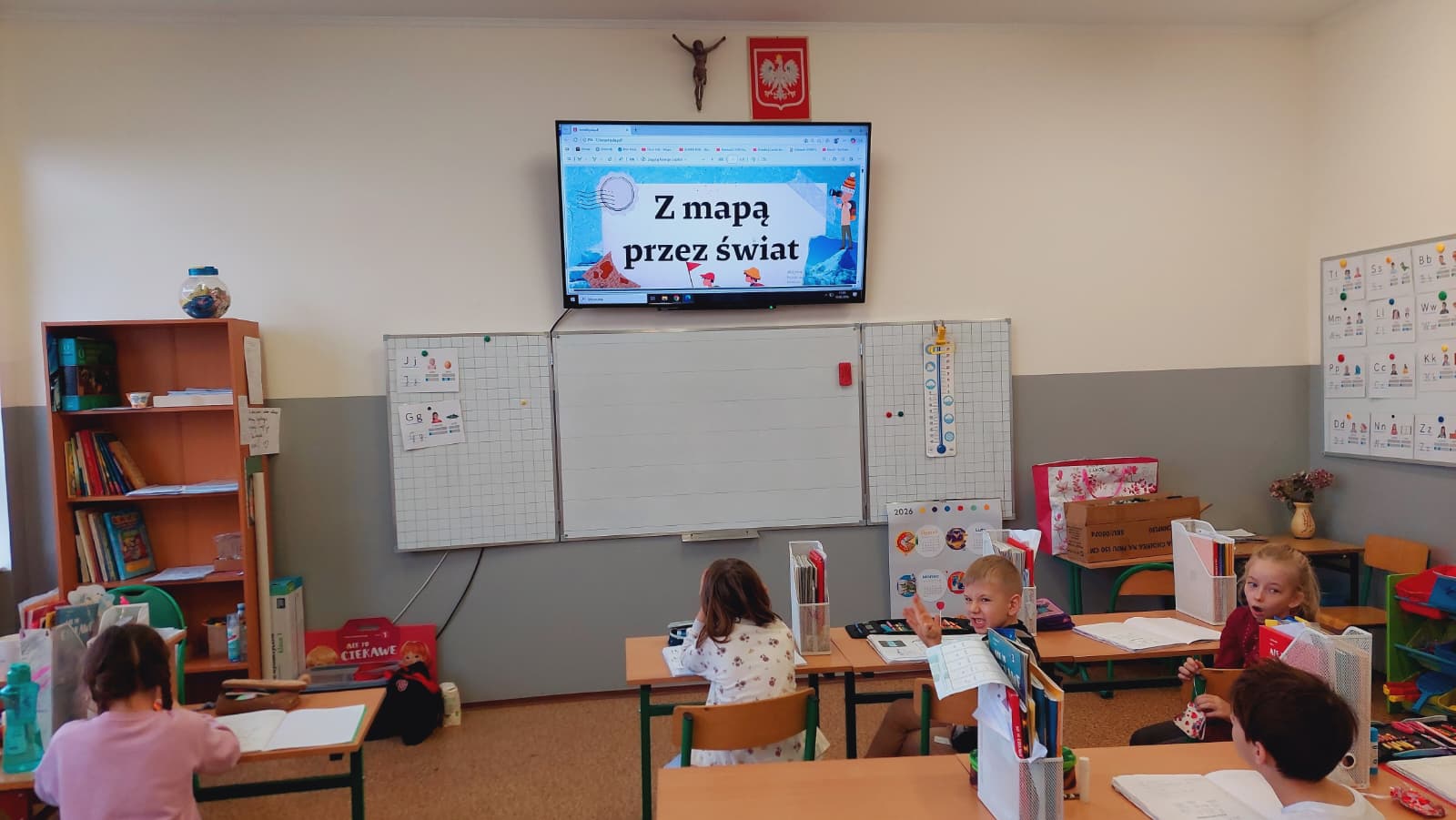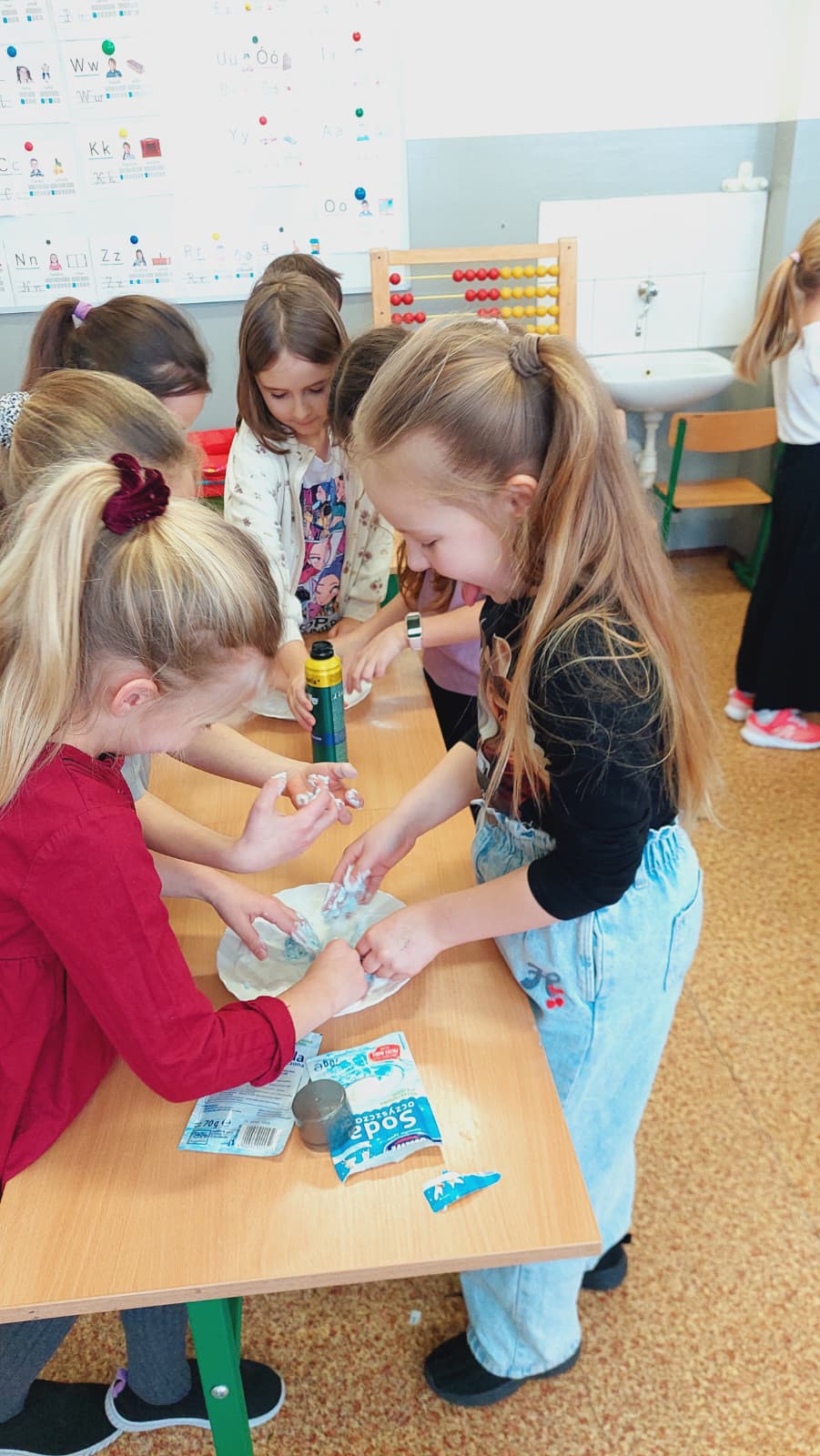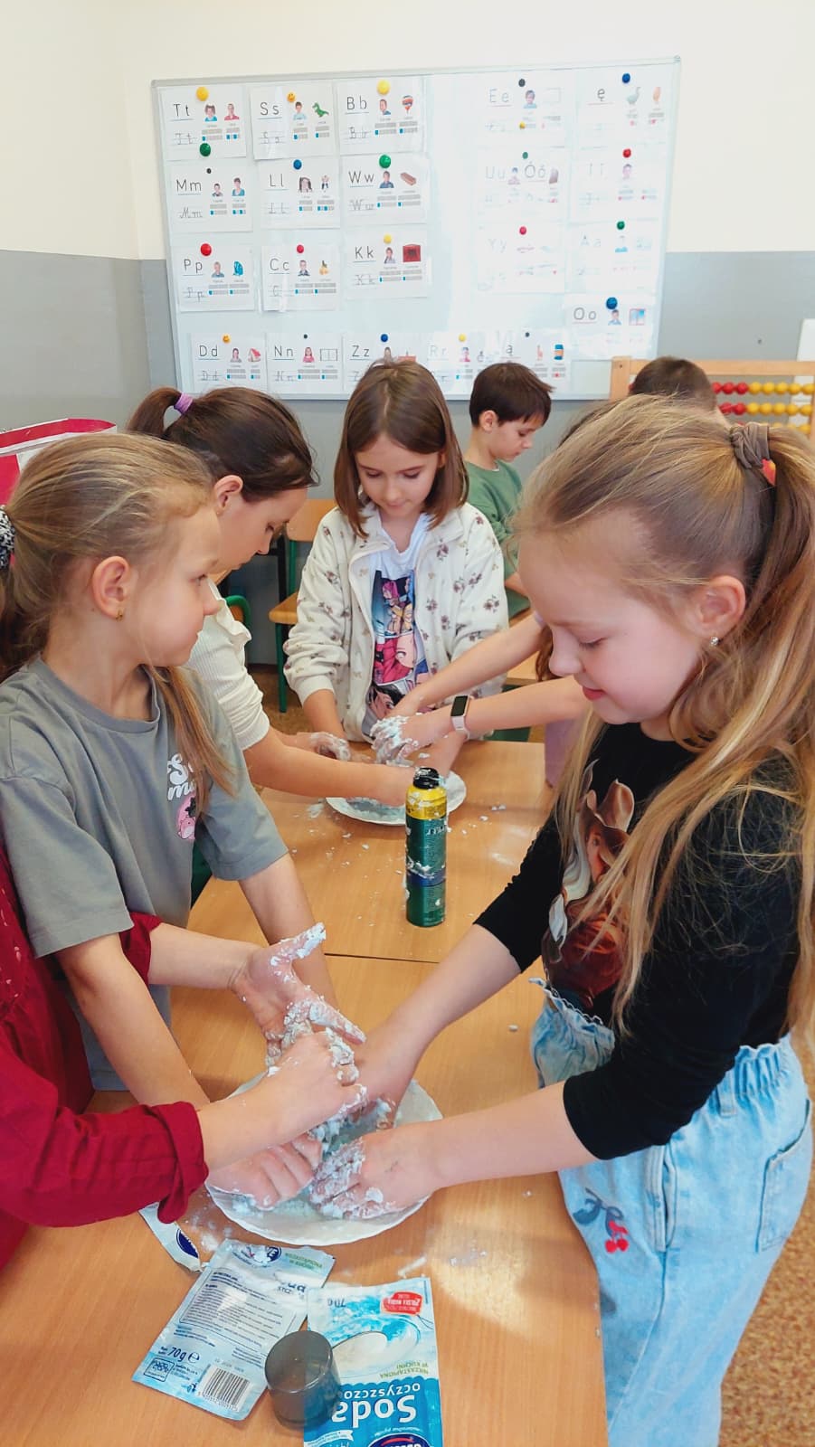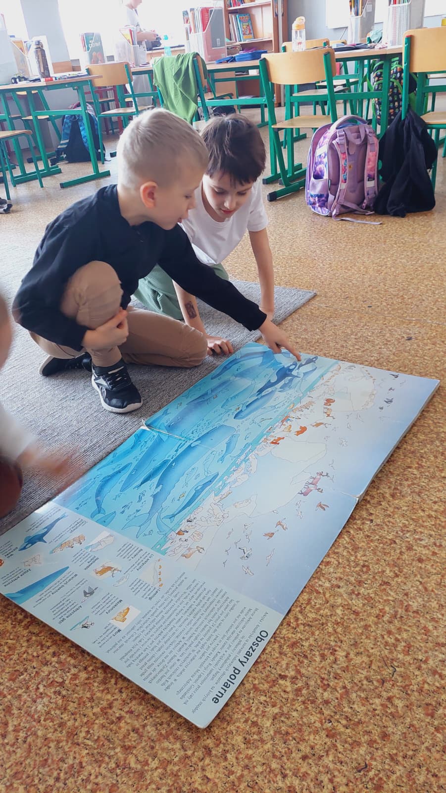 Klasa 1 wraz z wychowawczynią panią Martyną Barteczką przystąpiła do ogólnopolskiego projektu edukacyjnego "Z mapą przez świat ". W ramach projektu uczniowie poznali dzisiaj Antarktydę. Obejrzeli prezentację multimedialną, film edukacyjny, poznali ciekawostki o Antarktydzie, a największą frajdą było robienie sztucznego śniegu.