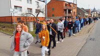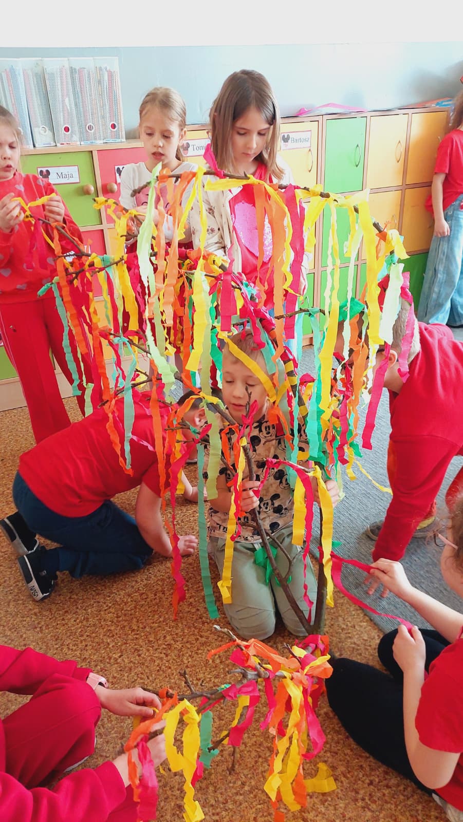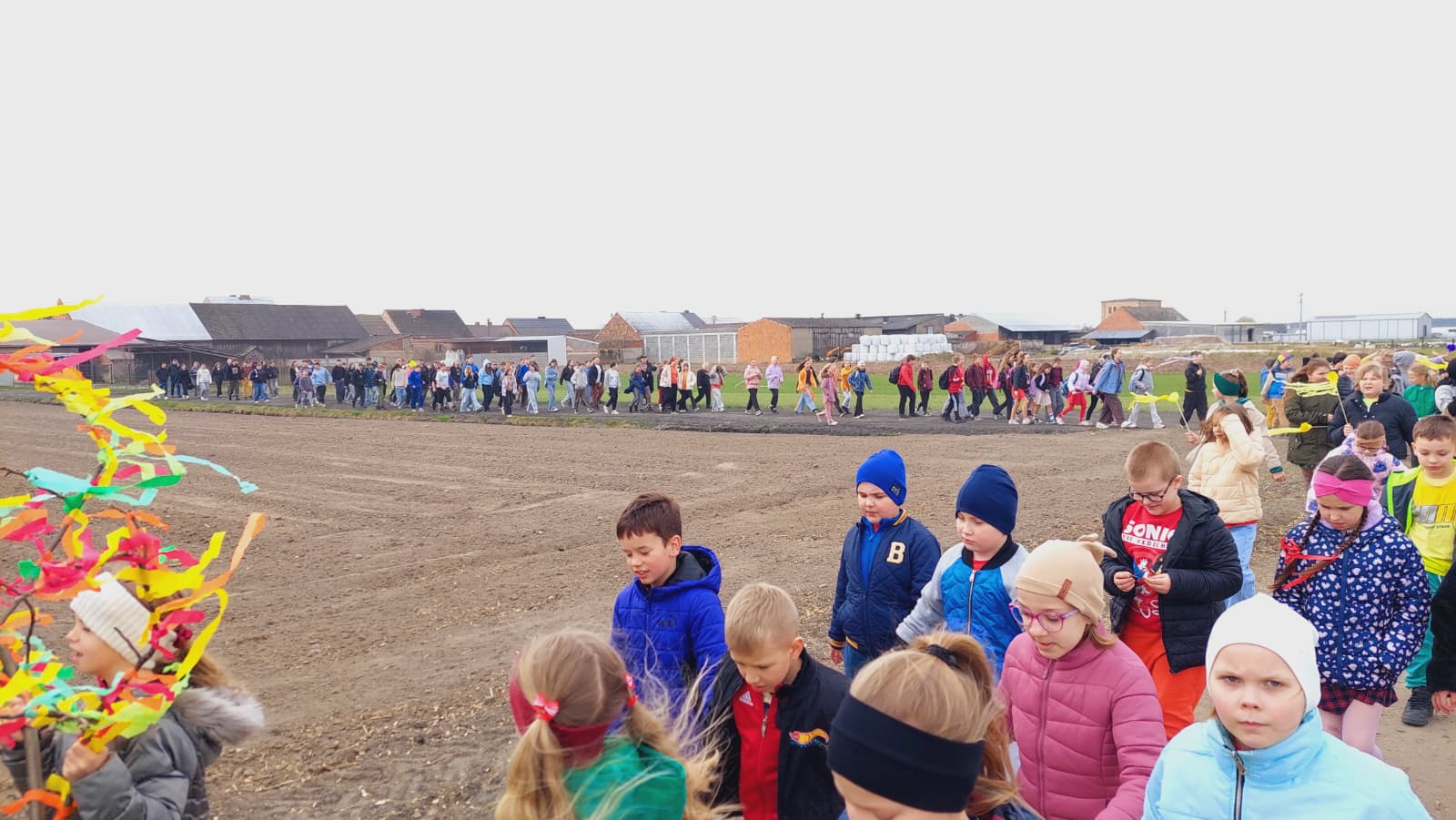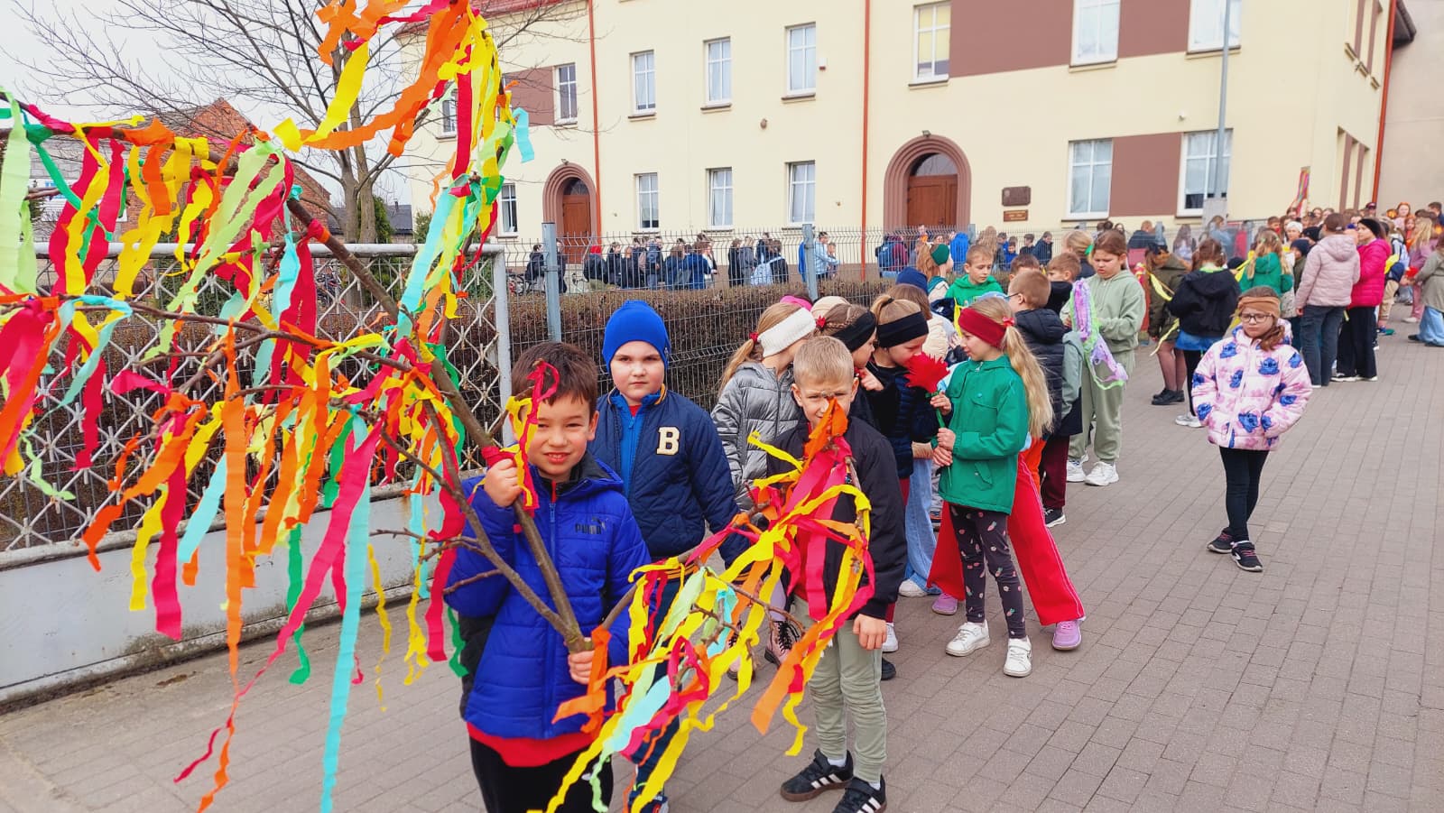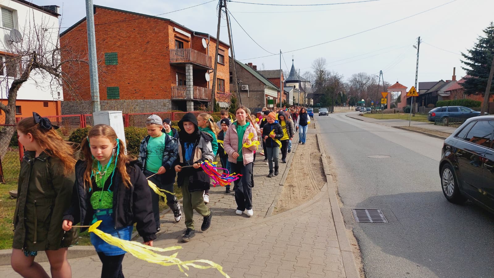 Najważniejszym punktem dnia był barwny pochód ulicami Szkaradowa. Uczniowie, wyposażeni w kolorowe gałązki, z uśmiechami na twarzach wyruszyli na spacer, symbolicznie żegnając zimę i witając wiosnę. Kolorowe dekoracje powiewały na wietrze, a radosna atmosfera udzielała się wszystkim napotkanym mieszkańcom.